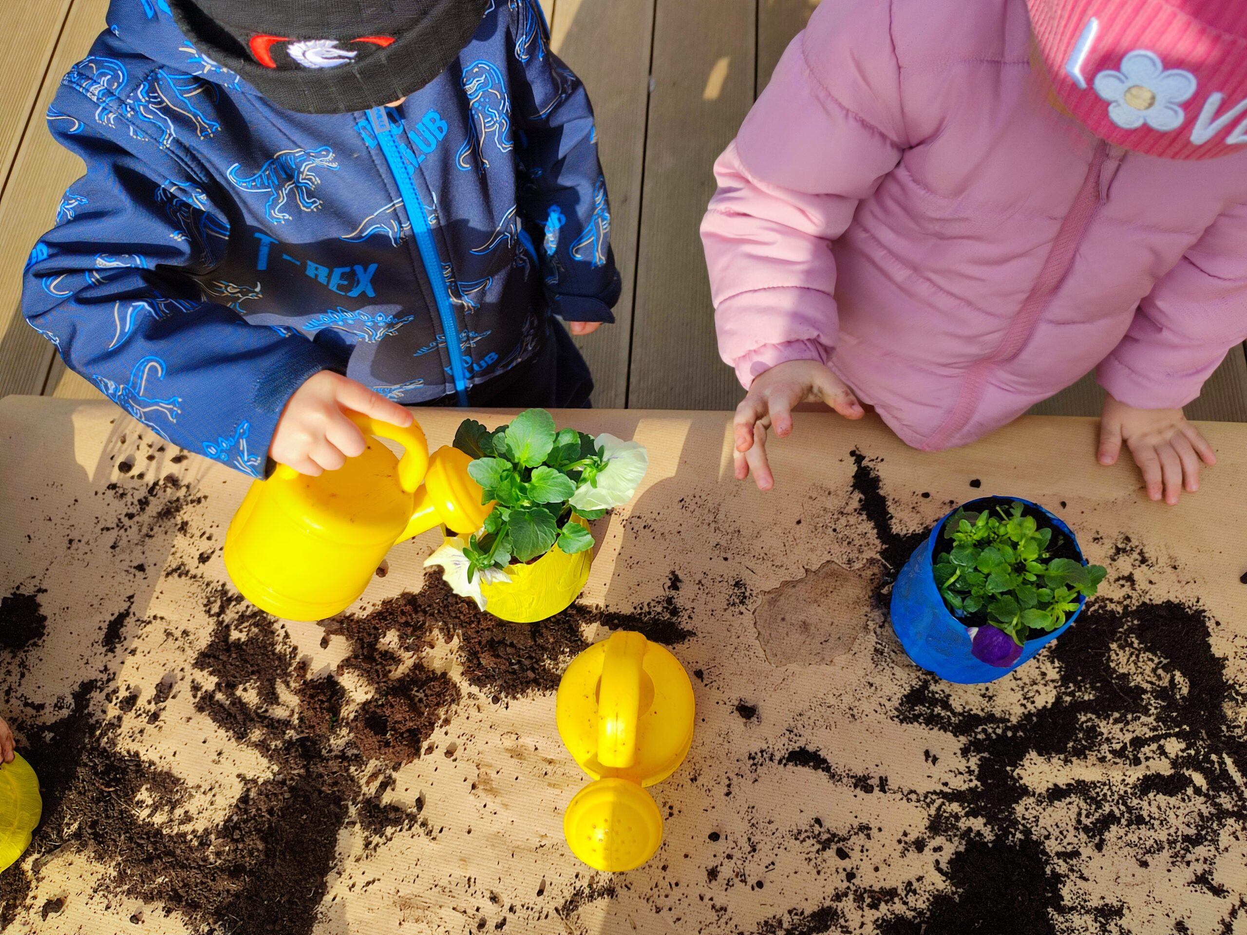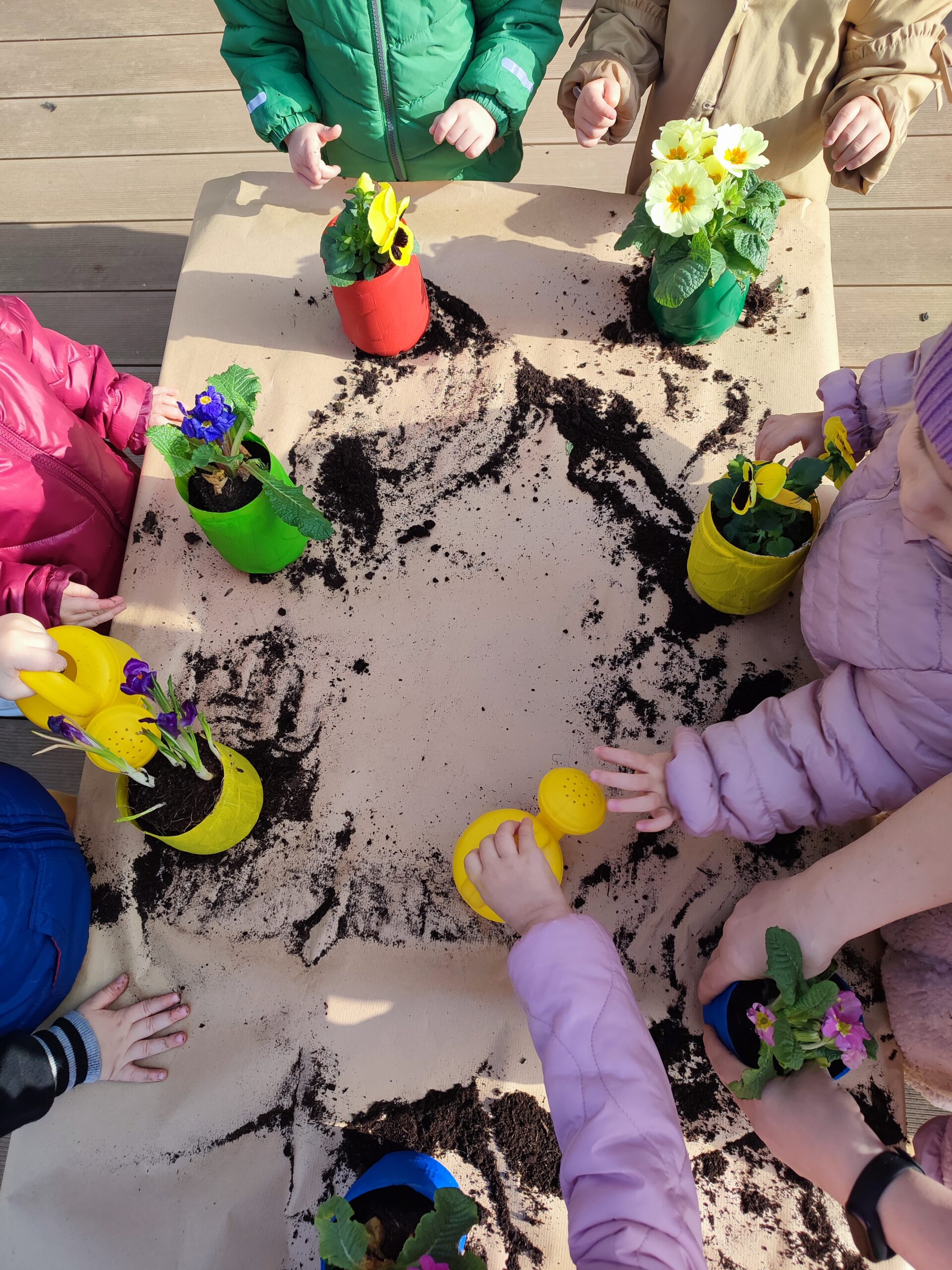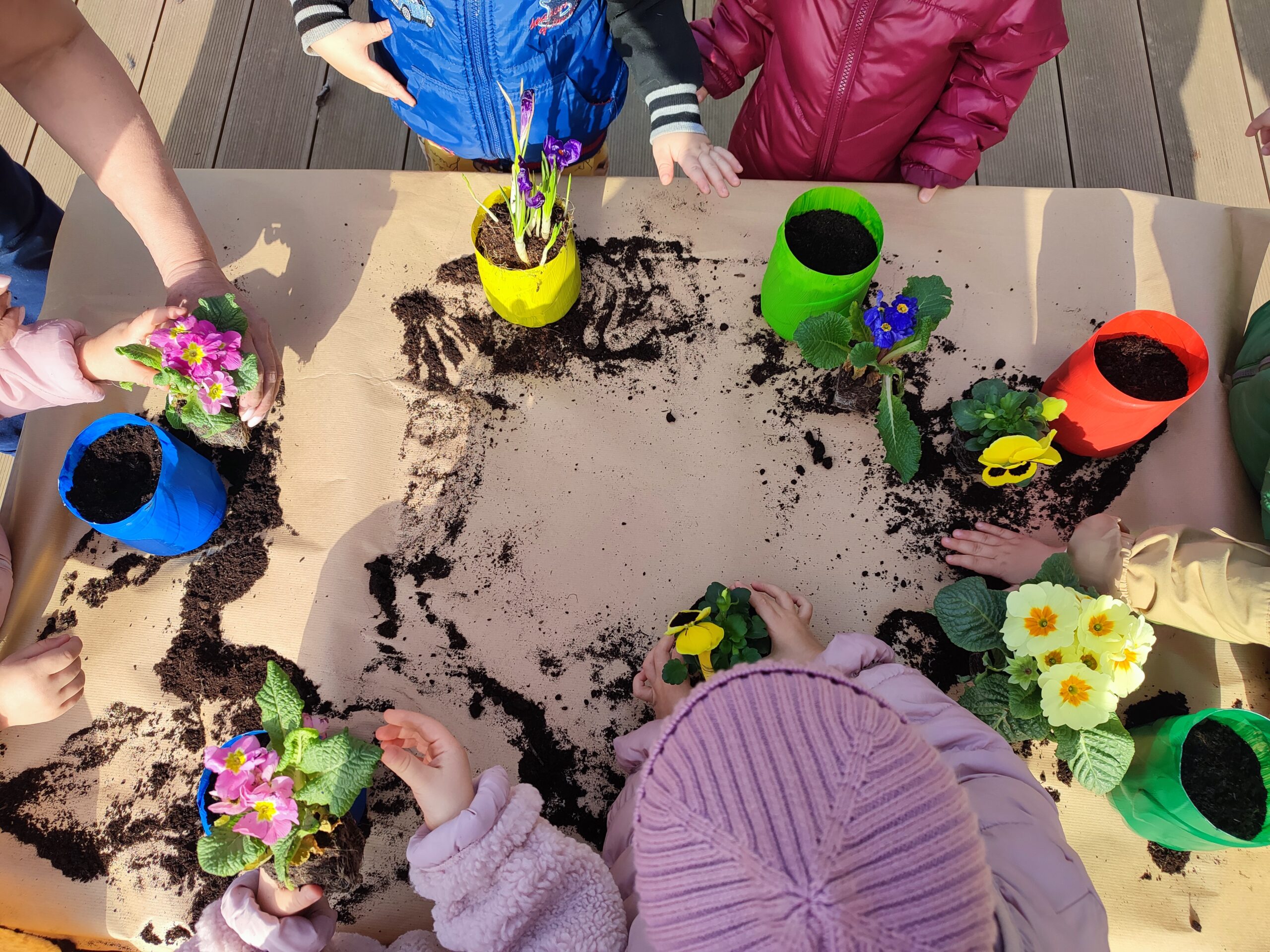 W marcu nie zabrakło również zajęć edukacyjnych i przyrodniczych. Podczas wspólnych aktywności dzieci poznawały pierwsze wiosenne kwiaty, takie jak krokusy, bratki oraz inne rośliny budzące się do życia po zimie. Mali ogrodnicy mieli okazję samodzielnie sadzić kwiatki, które dziś zdobią nasze sale, wprowadzając do nich kolor i wiosenną atmosferę.
