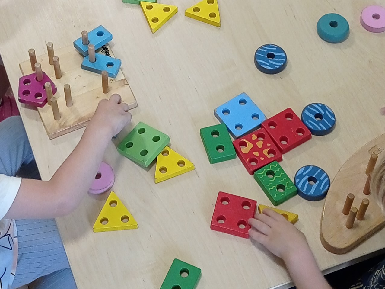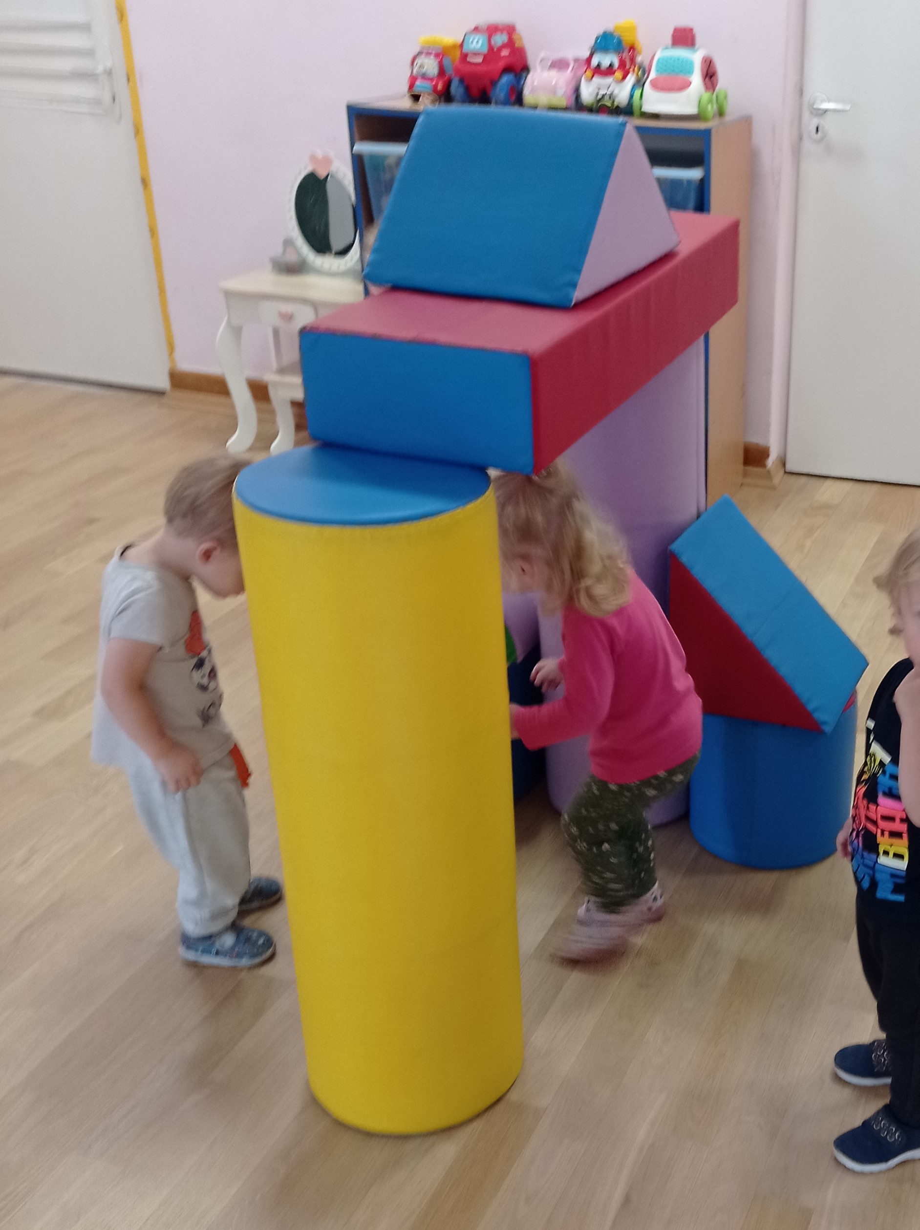 Ćwiczyliśmy nasze buzie podczas zajęć muzycznych wspólnie śpiewając piosenki i bawiąc się w zabawy dźwiękonaśladowcze. Rozwijaliśmy koordynację podczas spacerów po ścieżce zdrowia z przeszkodami oraz wspólnych zabaw w kole z wykorzystaniem barwnej chusty animacyjnej.