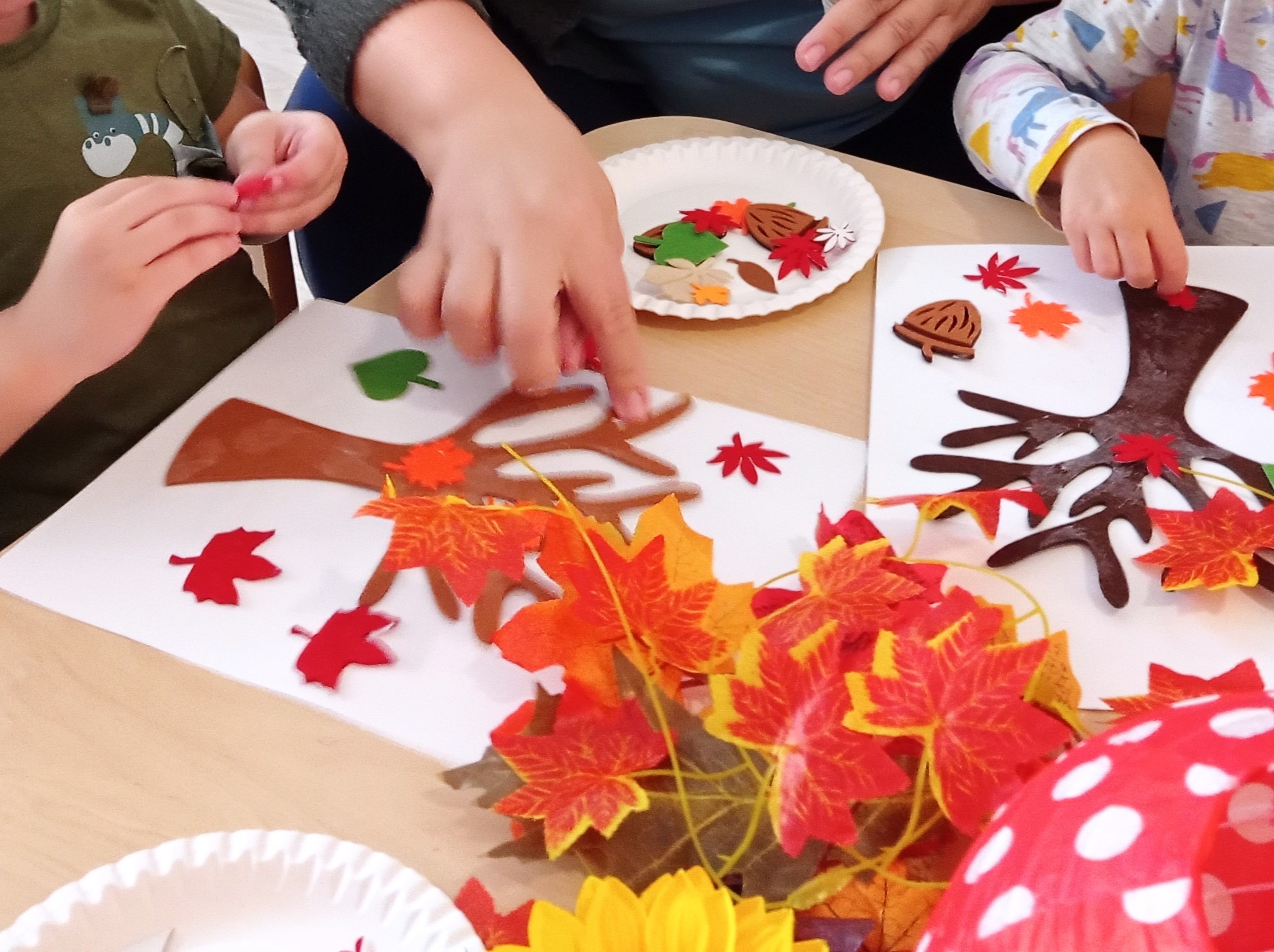 Podczas zajęć dydaktycznych rozmawialiśmy o zmianach, które zachodzą w przyrodzie wraz z nadejściem jesieni, poznawaliśmy jesienne skarby,”robiliśmy” przetwory na zimę, „zbieraliśmy” grzyby i oglądaliśmy kolorowe liście.