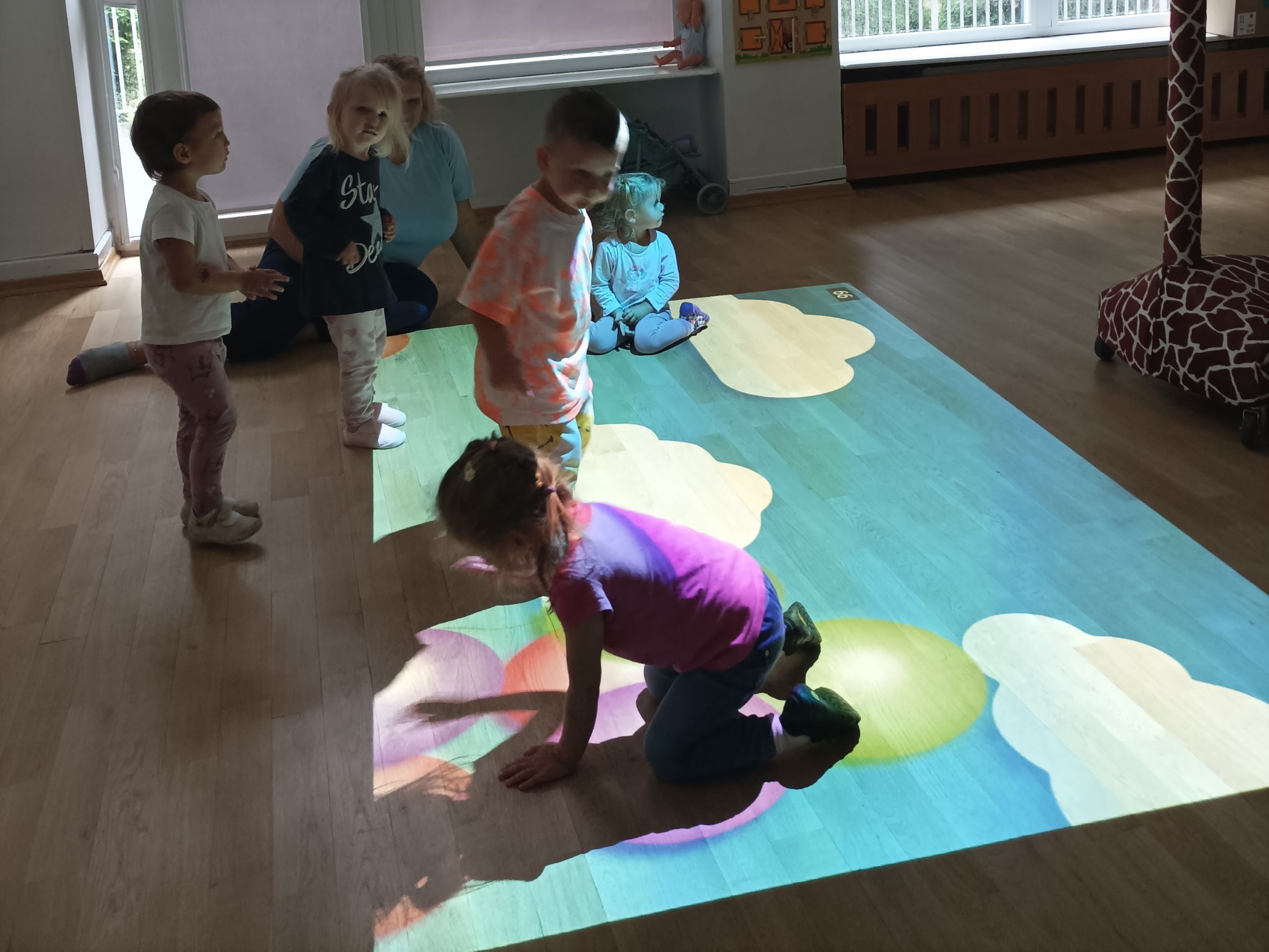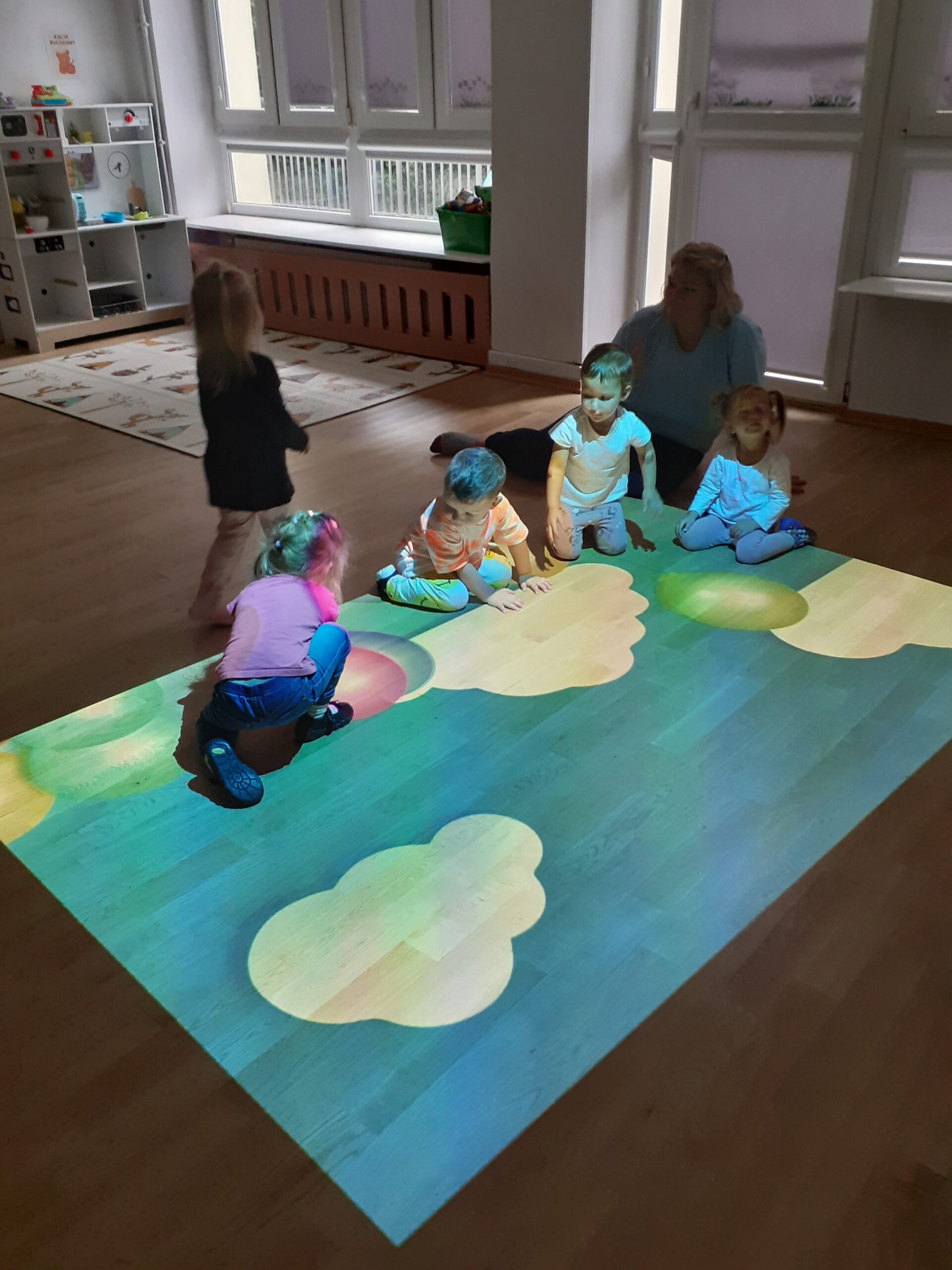 Magiczny Dywan pobudza i angażuje wszystkie zmysły: coś świeci, coś mówi, coś trzeba dotknąć albo nadepnąć. Dzieci biegają, skaczą, celują, a przy okazji rozwijają koordynację i refleks.