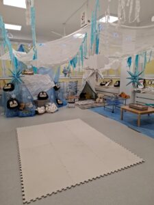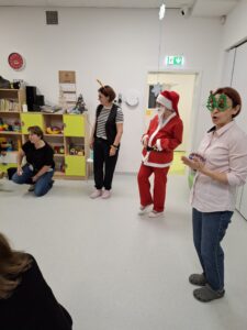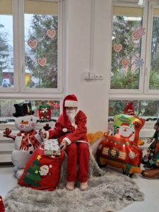 Tak też było i u nas. Już od samego wejścia do naszego żłobka, witał nas zaprzęg Świętego Mikołaja, a sam żłobek został „opanowany” przez skrzaty, które miło spoglądały na każdego odwiedzającego. Była oczywiście też choinka i mnóstwo różnorodnych światełek.