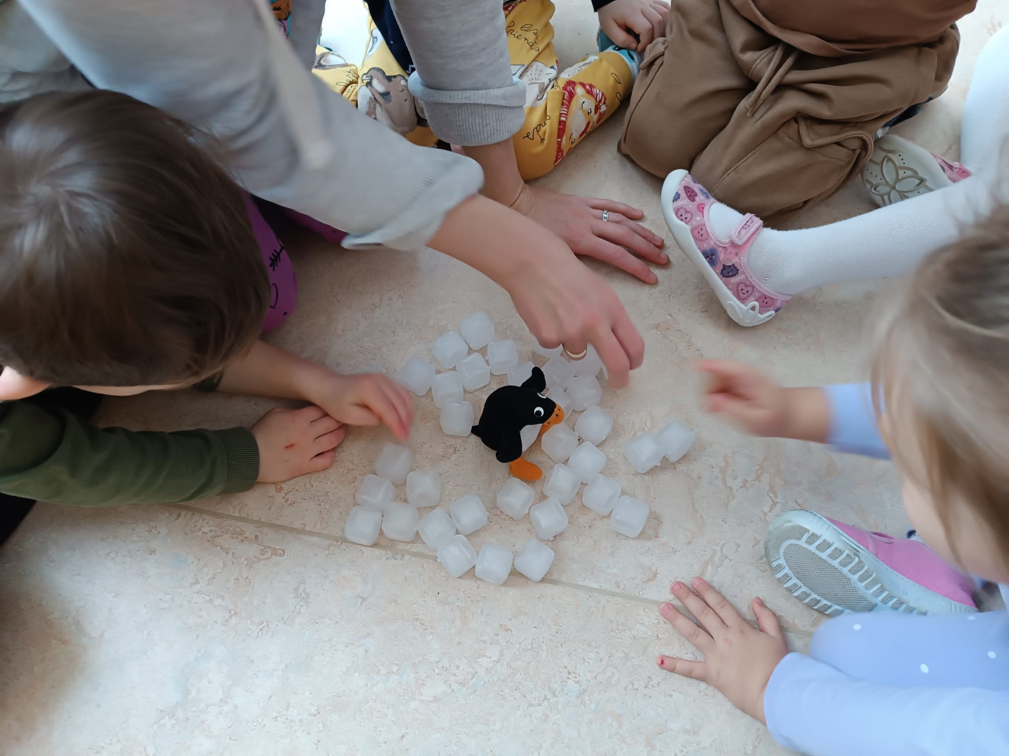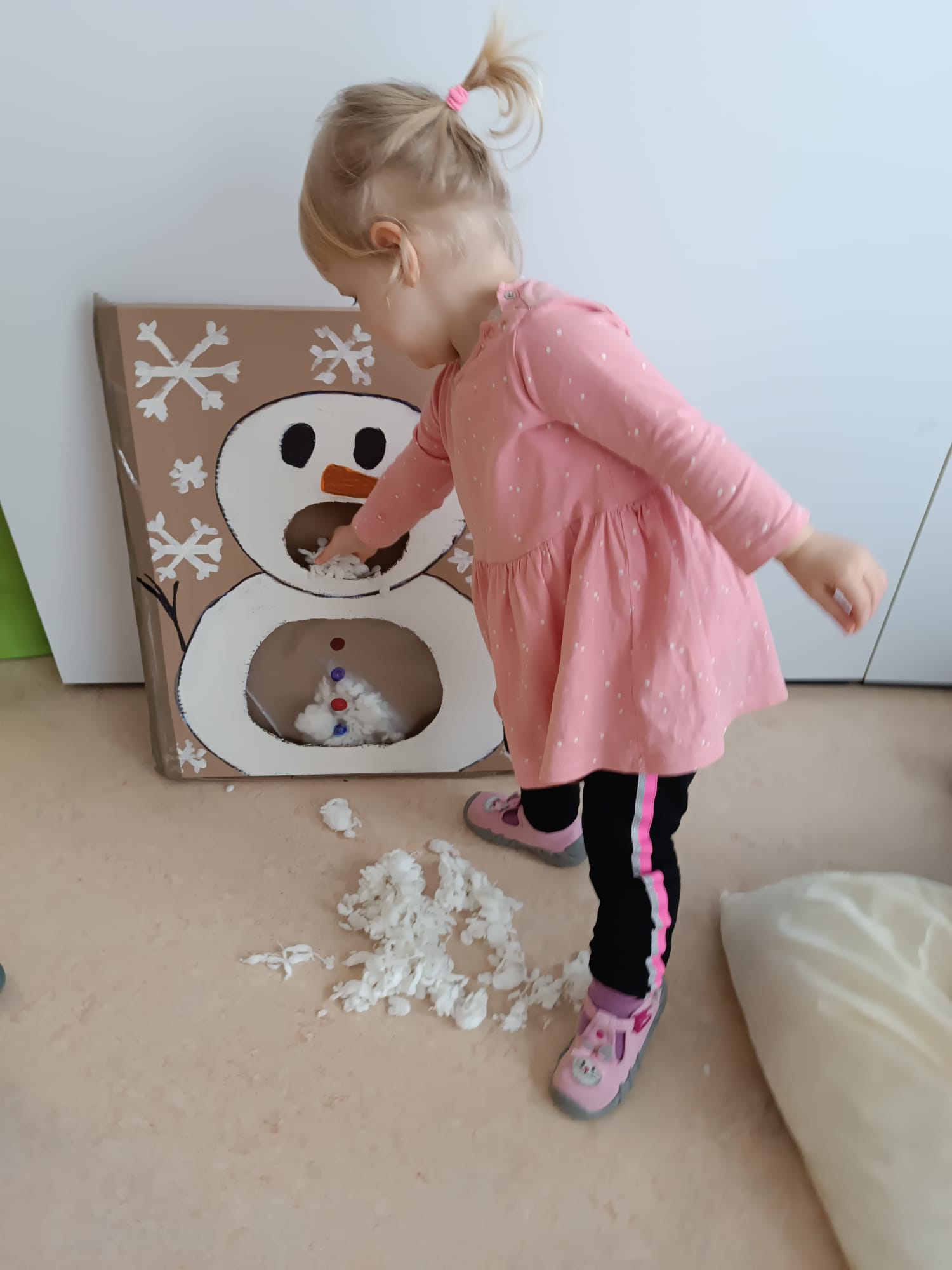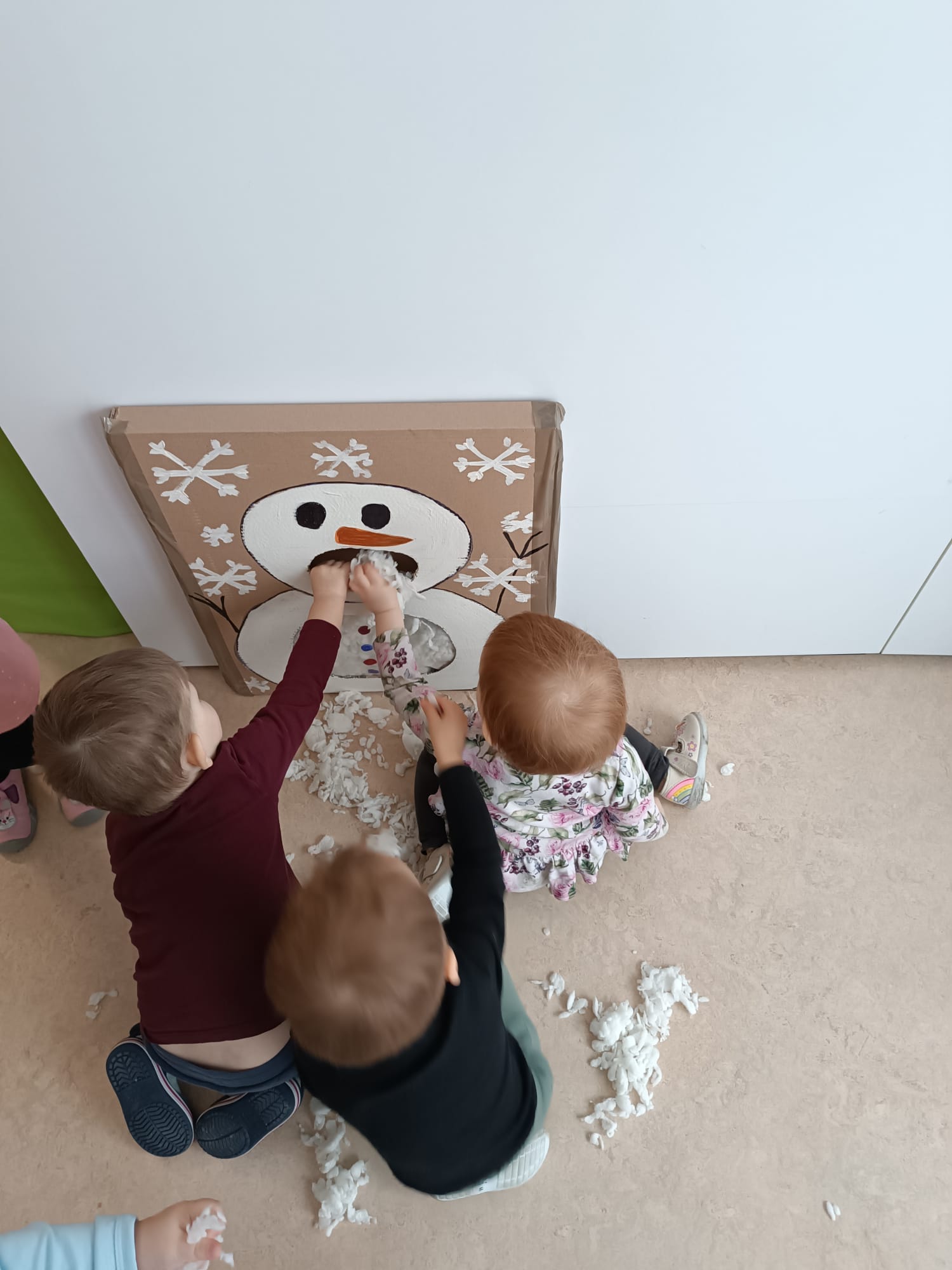 A tam, jak zawsze dużo zabawy przed nami! Robienie bałwanków z różnych materiałów, tworzenie karmników dla ptaszków oraz nauka o zwierzętach, które uwielbiają ten szczypiący w noski mrozek 🙂 A że czasem tęsknimy też za latem i zabawą w piasku, to nasze wychowawczynie i na to mają sposób 😉