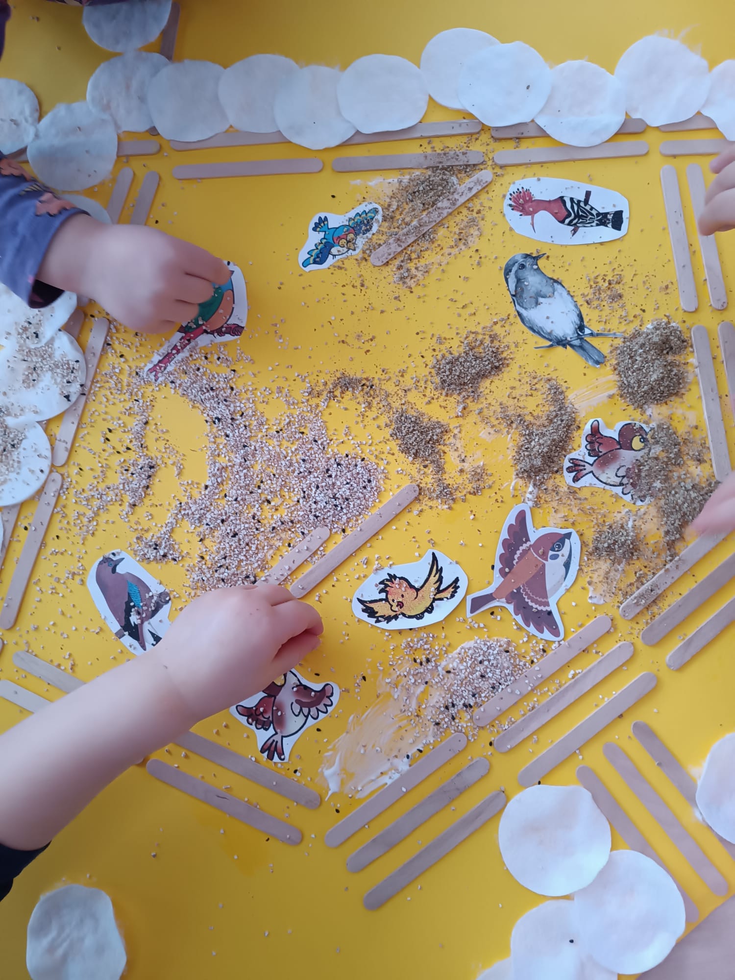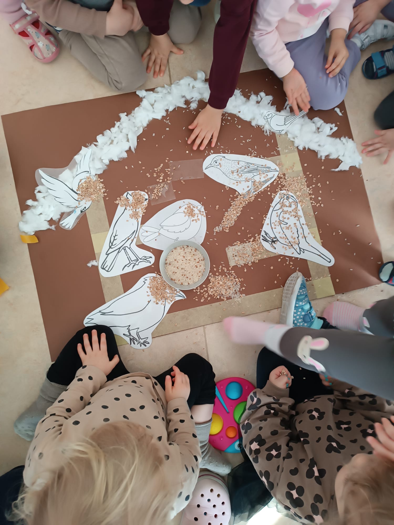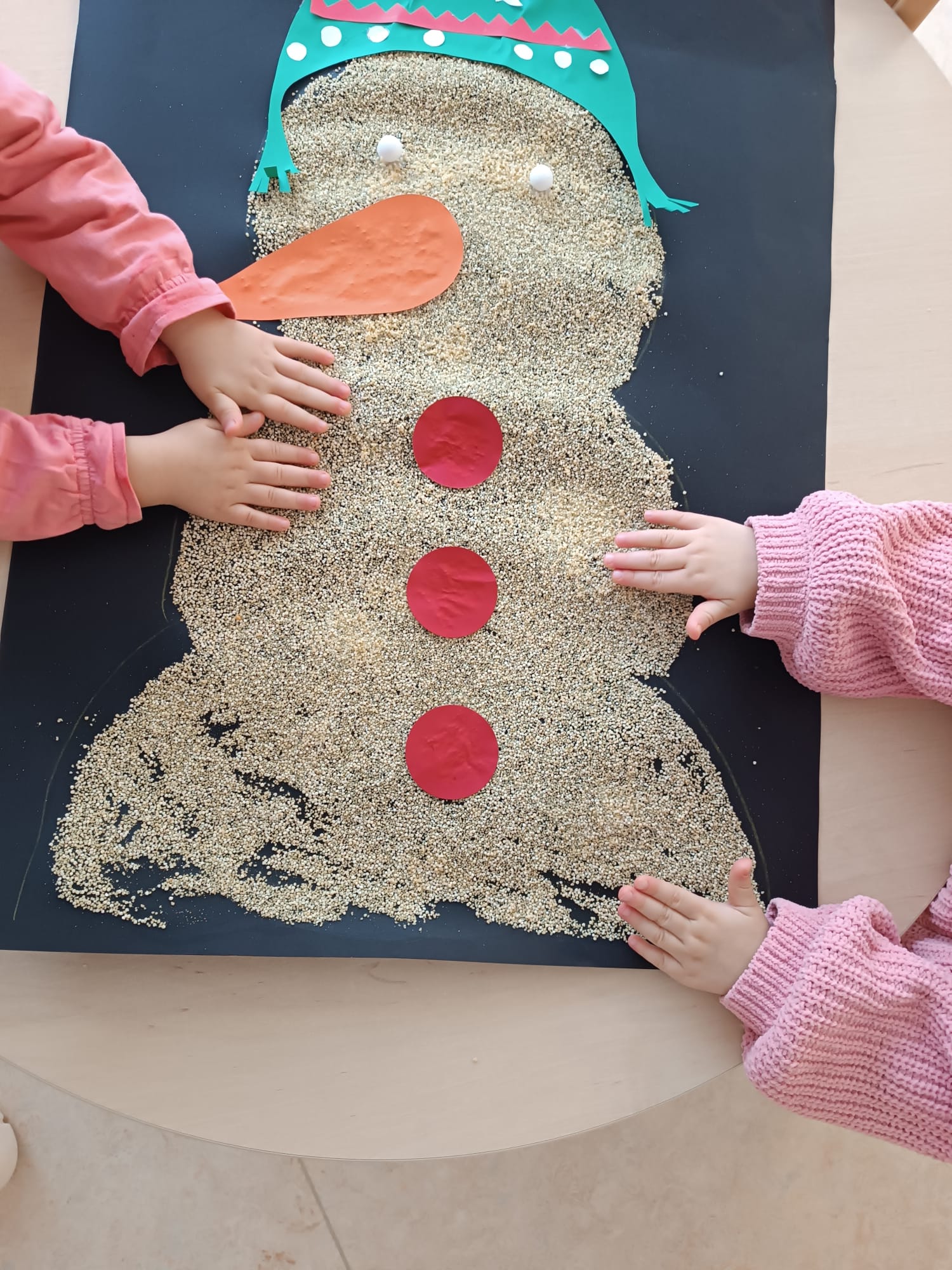 A tam, jak zawsze dużo zabawy przed nami! Robienie bałwanków z różnych materiałów, tworzenie karmników dla ptaszków oraz nauka o zwierzętach, które uwielbiają ten szczypiący w noski mrozek 🙂 A że czasem tęsknimy też za latem i zabawą w piasku, to nasze wychowawczynie i na to mają sposób 😉