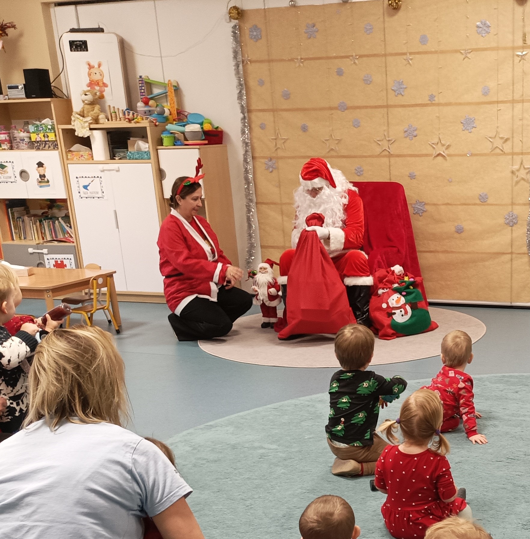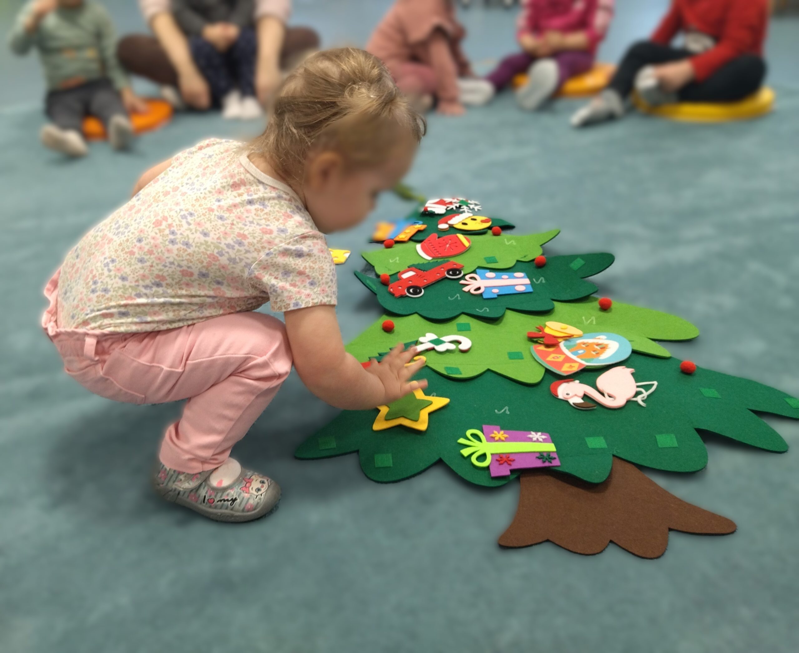Grudzień w Żłobku nr 74 był pod znakiem zimy i świąt. Ozdabialiśmy wspólnie nasze sale, ubieraliśmy choinkę i tworzyliśmy bałwana. Mieliśmy też tajemniczego gościa, który rozdał dzieciom prezenty. Dzieci bawiły się również podczas zajęć sensorycznych i ruchowych, prawie codziennie wychodziliśmy na dwór. Podczas warsztatów ozdabialiśmy z rodzicami pierniczki, tworzyliśmy stroiki i kolorowaliśmy bombki.