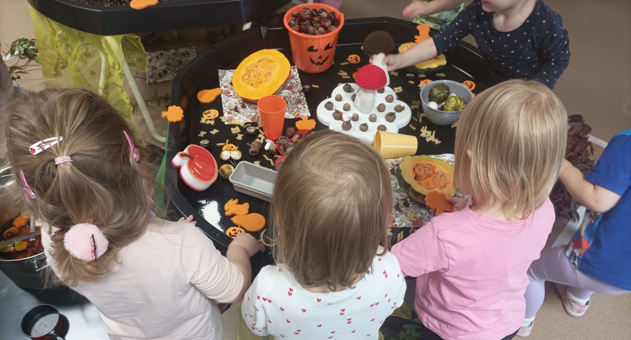 Październik już za nami, był on pełen atrakcji, wrażeń i zabawy. W naszym żłobku zorganizowaliśmy konkurs na najpiękniejszą dynię, dzieci wraz z rodzinami wzięły udział w aktywności i przygotowały niesamowite projekty, które zostały nagrodzone upominkiem i dyplomem. Był u nas również teatr La La Lena z bajecznym przedstawieniem. Poza tym świętowaliśmy dzień chleba, dzień dyni, sadziliśmy wrzosy i gościliśmy Policję, która uczyła nas jak zachować bezpieczeństwo w ruchu drogowym. Poznawaliśmy atrybuty jesieni, a do grupy rybek przyleciał nawet „Kosmita” 🙂