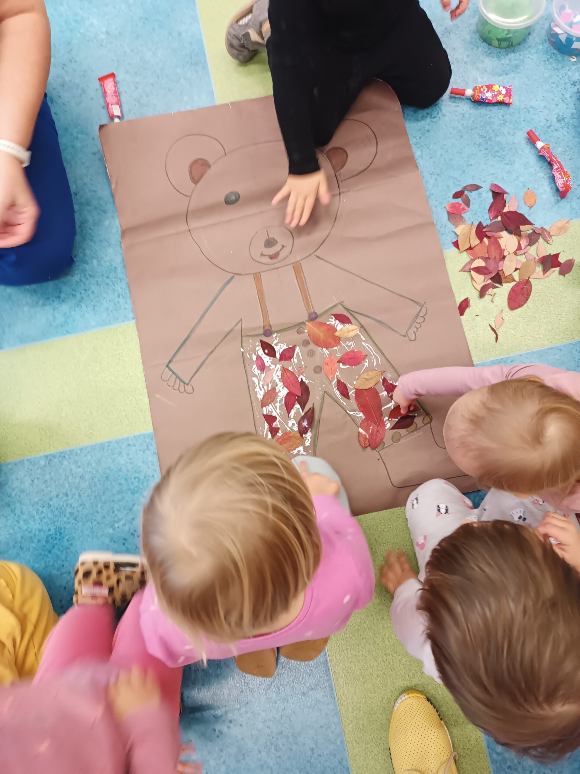 Podczas zajęć maluchy tworzyły kolorowe liściaste kompozycje, wyklejały obrazki z darów natury i eksperymentowały z różnymi fakturami. Takie aktywności to nie tylko świetna zabawa – mają ogromne znaczenie dla rozwoju dziecka. Prace plastyczne: