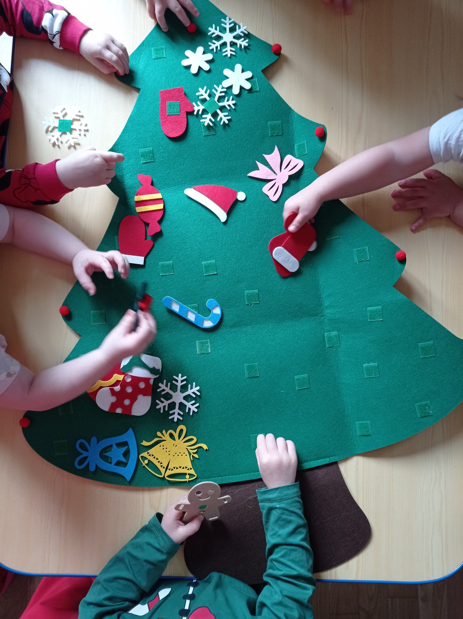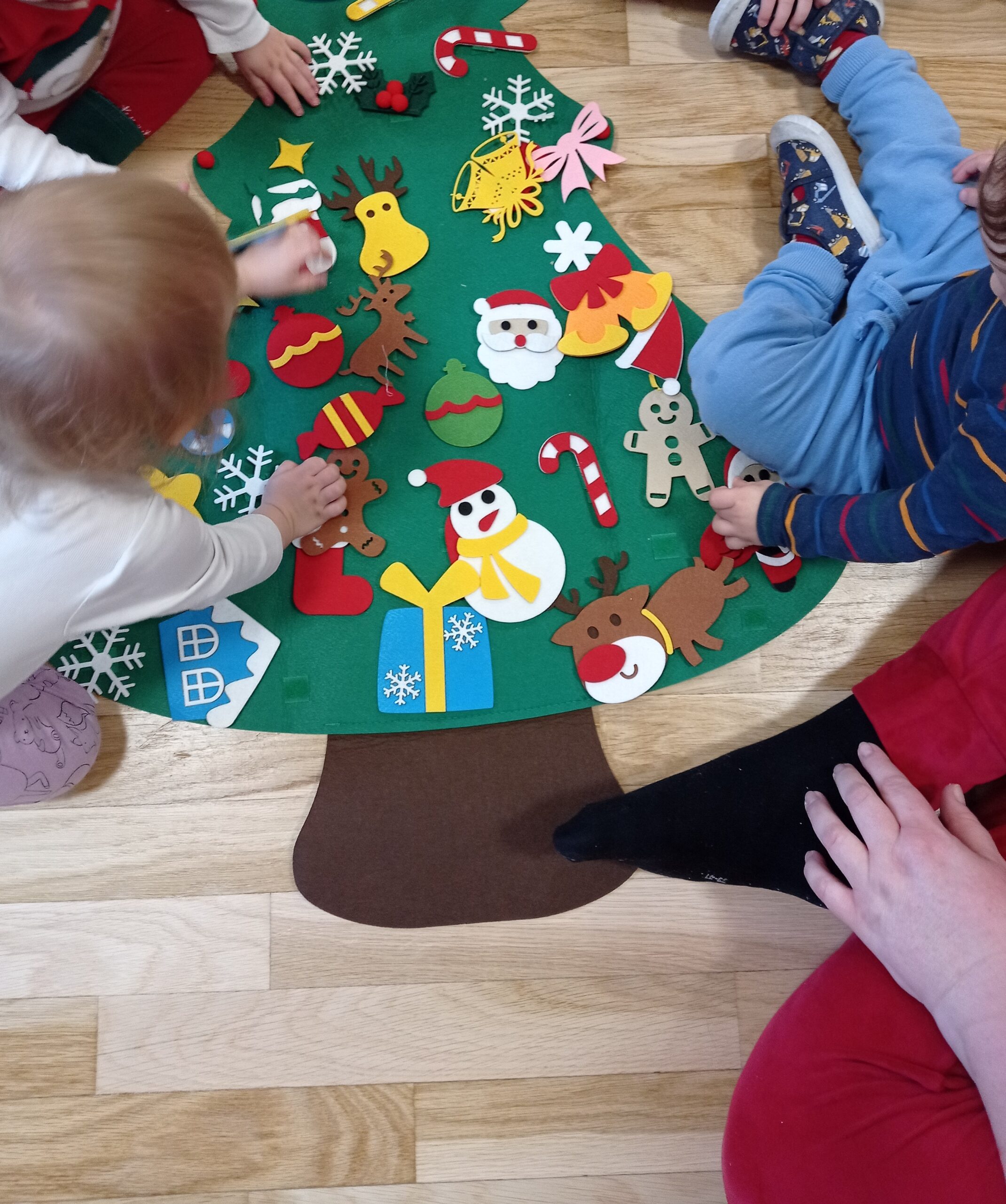 Grudzień w naszym żłobku, to czas wielu atrakcji między innymi wizyta Mikołaja, sesja świąteczna oraz spotkanie z rodzicami na warsztatach Bożonarodzeniowych. Rodzice wspólnie z dziećmi wykonywali piękne, pomysłowe ozdoby świąteczne. Zakończeniem wspólnie spędzonego czasu, było śpiewanie przez dzieci i rodziców kolęd oraz świątecznych piosenek.