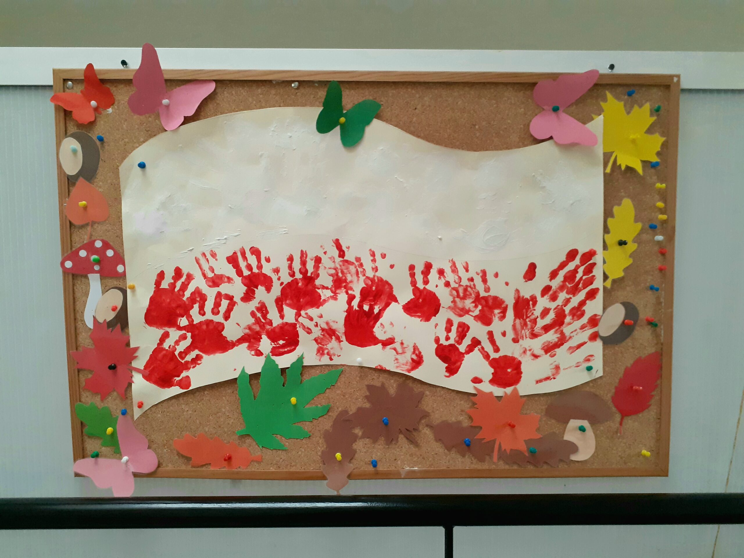 Listopad przyniósł nam pierwsze opady śniegu, sprawdzaliśmy więc, czy jest zimny i podziwialiśmy jak pięknie wygląda na choince. Poznaliśmy instrument muzyczny wiolonczelę, zobaczyliśmy, jak jest zbudowany, posłuchaliśmy, jak pięknie gra. Ciocie przygotowały specjalnie dla nas teatrzyk o żabce, z ogromną radością obejrzeliśmy przedstawienie. Obchodziliśmy dzień jeża, szukaliśmy, gdzie się jeże ukryły – znaleźliśmy wszystkie:) Wspólnie przygotowaliśmy flagę z okazji dnia odzyskania niepodległości. Codziennie ćwiczyliśmy nasze talenty muzyczne, graliśmy, śpiewaliśmy, tańczyliśmy. Mieliśmy także czas na nasze zabawy swobodne, więc gotowaliśmy, bawiliśmy się klockami lego, rysowaliśmy, czytaliśmy książeczki. Czas w żłobeczku szybko płynie