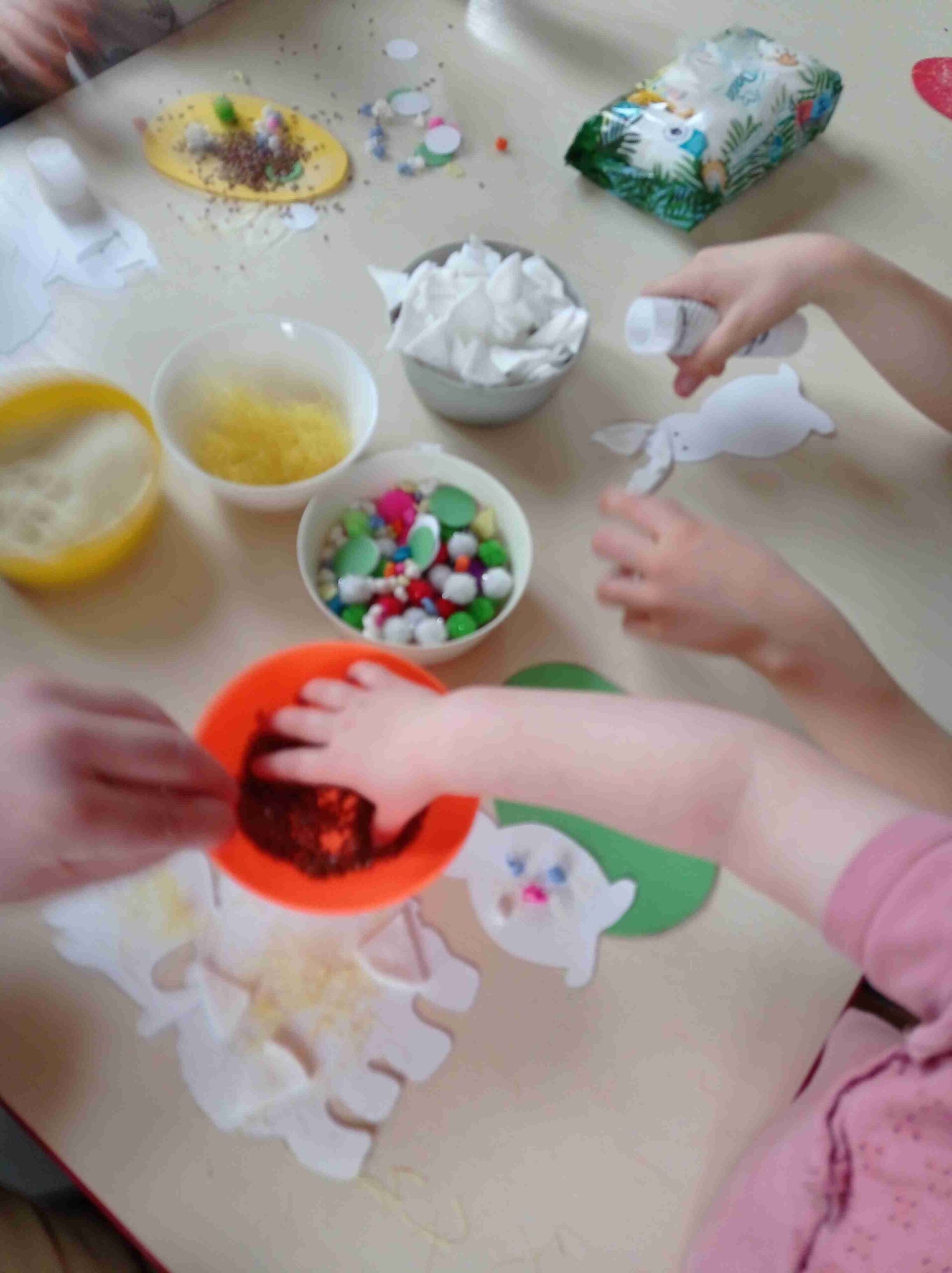 W marcu dużo się u nas działo. Przygotowywaliśmy się do powitania wiosny, malowaliśmy, wyklejaliśmy wiosenne obrazki, poszukiwaliśmy wiosny i w sali i na placu zabaw. Z radością mówimy – znaleźliśmy! Wiosna do nas przyszła! Przygotowywaliśmy się także do wielkanocnych świąt: wykonywaliśmy świąteczne ozdoby, malowaliśmy kwiaty, wyklejaliśmy wianuszki, kurczaczki, zające, co nam tylko wyobraźnia podpowiadała. Te zabawy sprawiły nam dużo radości. Doskonaliliśmy motorykę małą, przeprowadzaliśmy doświadczenia mieszając farby, piekliśmy gofry, na wspólnej zabawie szybko mijał czas. Z ogromną radością zaprosiliśmy do zabawy naszych Rodziców – bardzo dziękujemy za wspólnie spędzony czas. A 15 kwietnia w godz. 10:00 – 16:00 zapraszamy wszystkich Rodziców na dzień otwarty do naszego żłobeczka. Z przyjemnością opowiemy więcej o naszej placówce