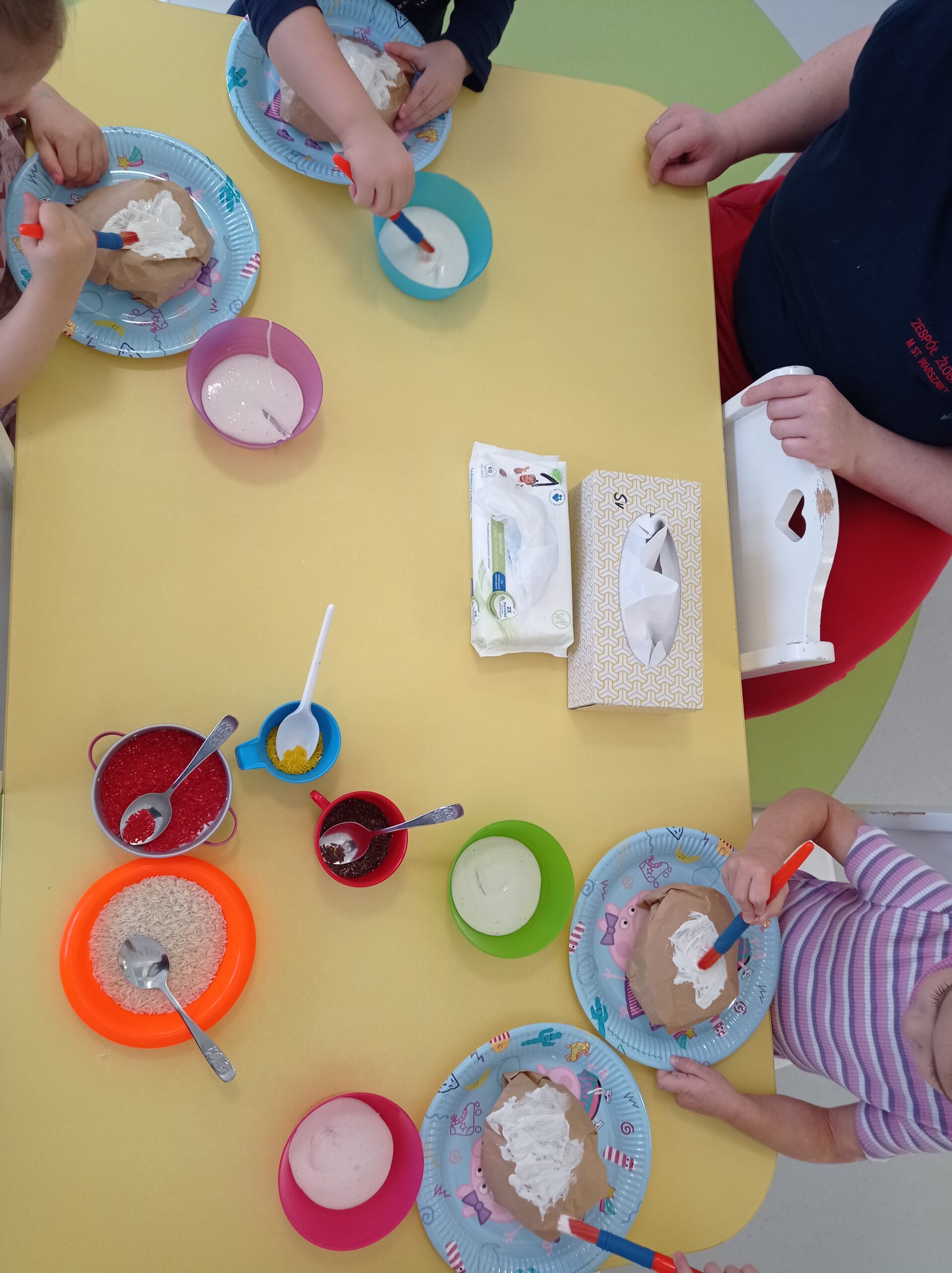 W lutym dużo się u nas działo. Dzieci chętnie brały udział w różnych interesujących zabawach. Dużo radości sprawiło im zabawa z wodą. Gdy tylko pogoda nam pozwoliła wychodziliśmy na spacery do naszego ogrodu. Obserwowaliśmy zmiany, które zachodziły w przyrodzie, jeździliśmy na rowerkach. Z okazji dnia pizzy przygotowaliśmy przepyszną pizzę, którą ze smakiem zjedliśmy.