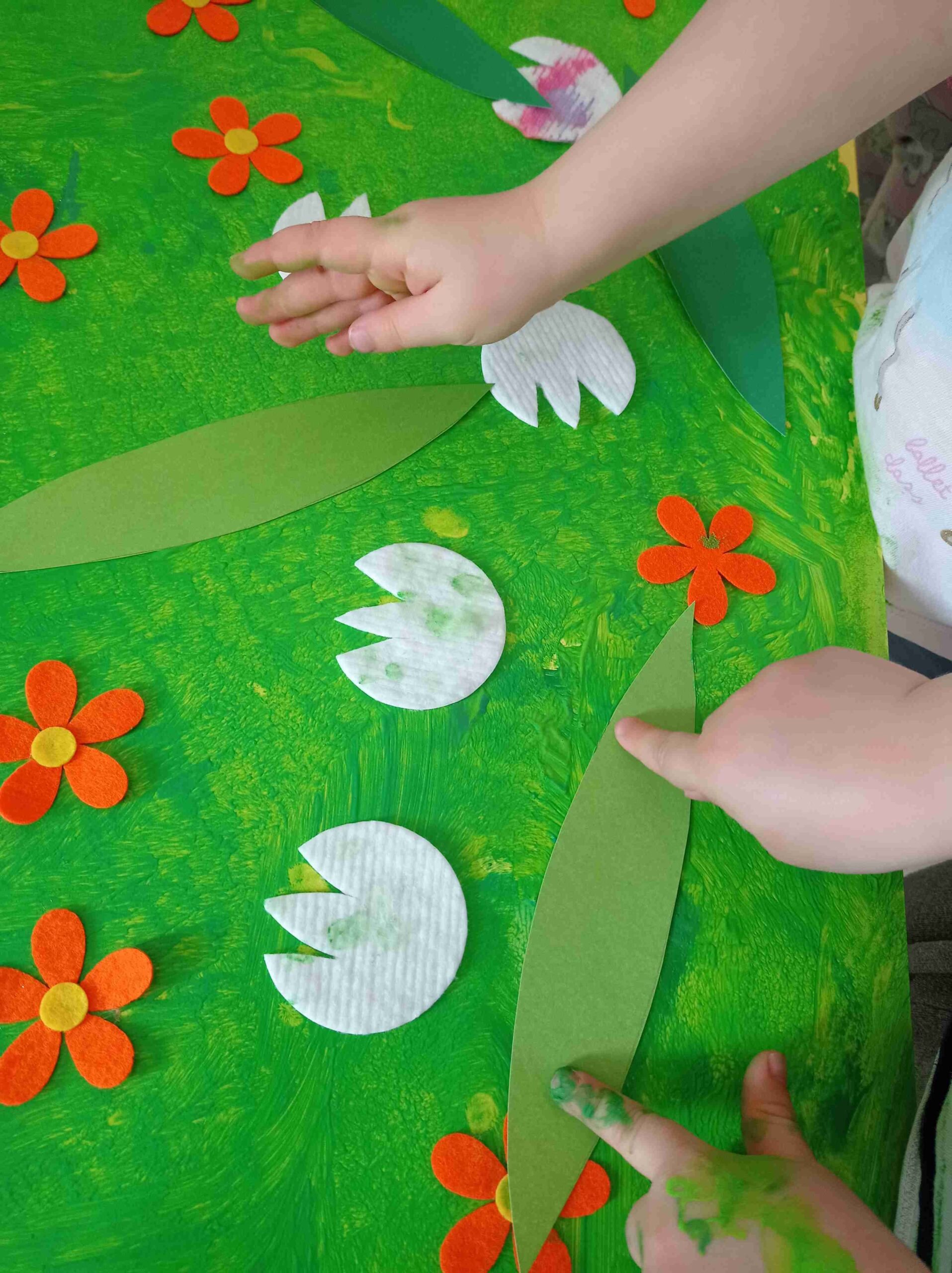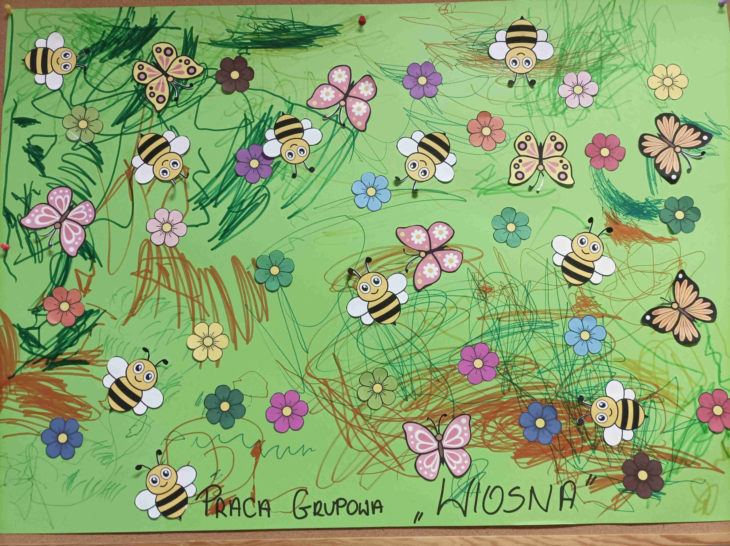 - Dzień Wiosny – dzieci wykonywały wspólna pracę plastyczną. Wprowadziło to nas w radosny, wiosenny nastrój.