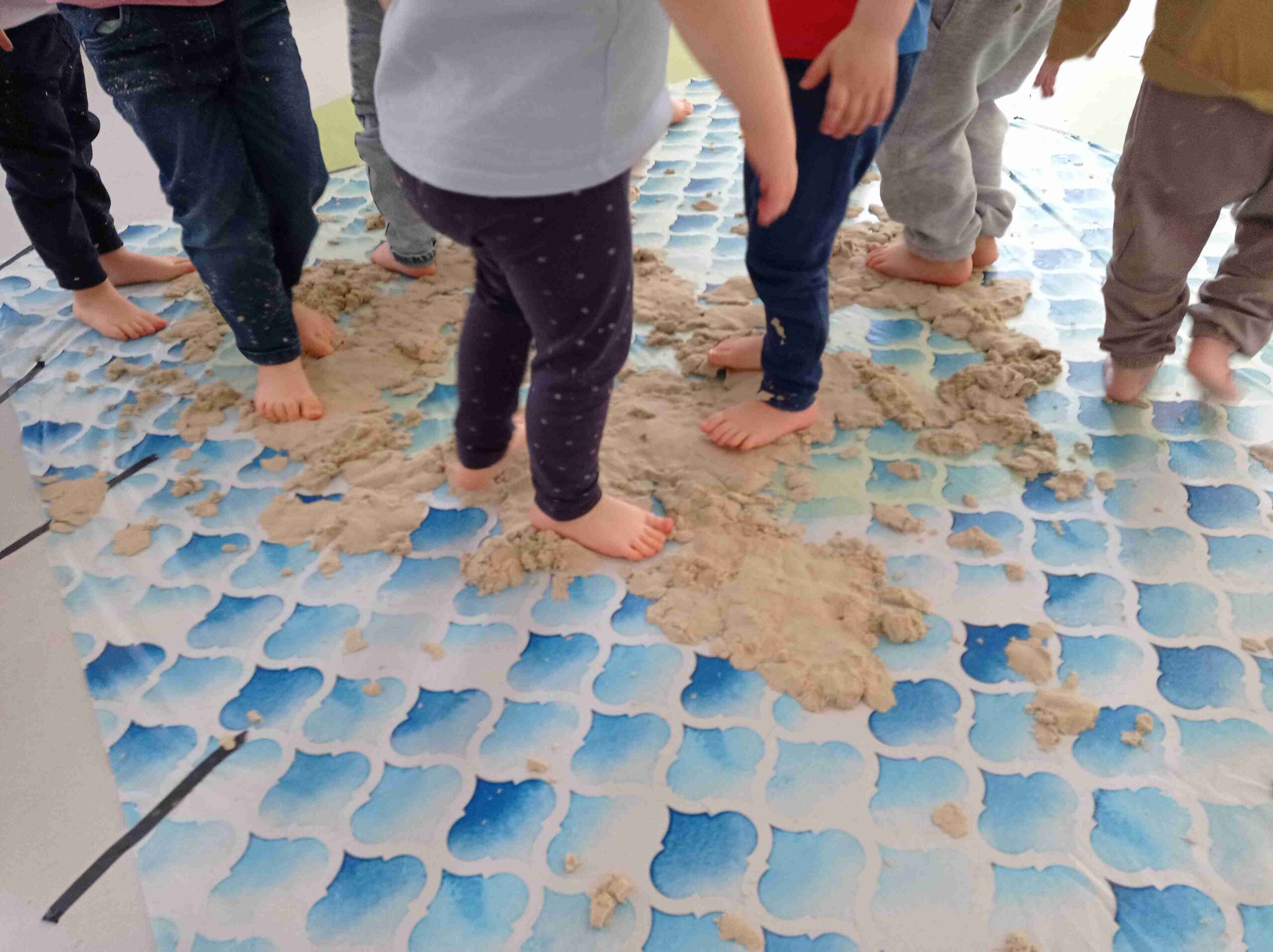 Dzieci uczestniczyły w zabawach sensoplastycznych, podczas których poznawały różne faktury, zapachy i kolory. Miały okazję swobodnie badać materiały oraz doświadczać ich poprzez dotyk i ruch co sprawiło im wiele radości. Ugniatały, wałkowały, wykorzystywały różnorodne foremki.