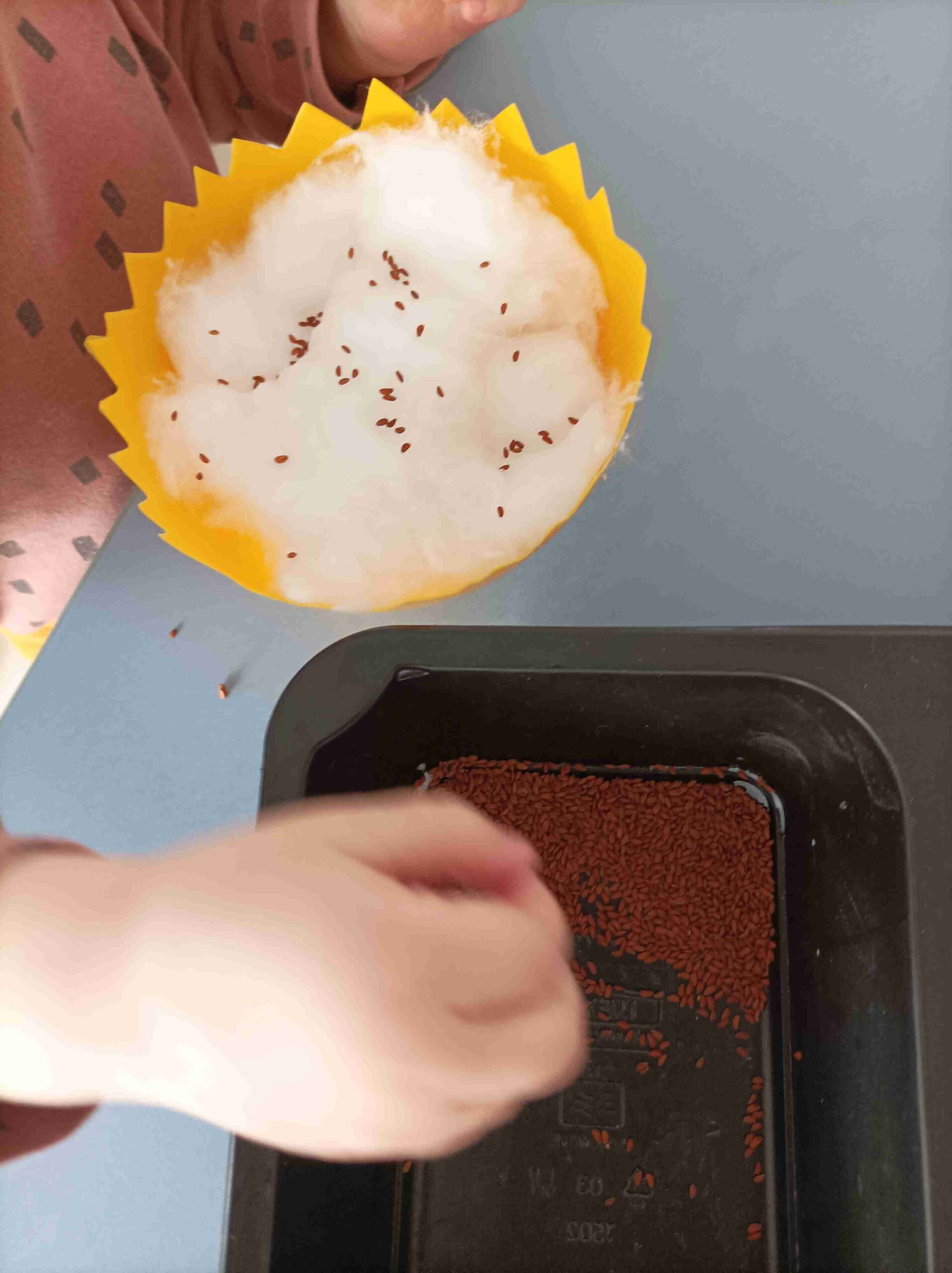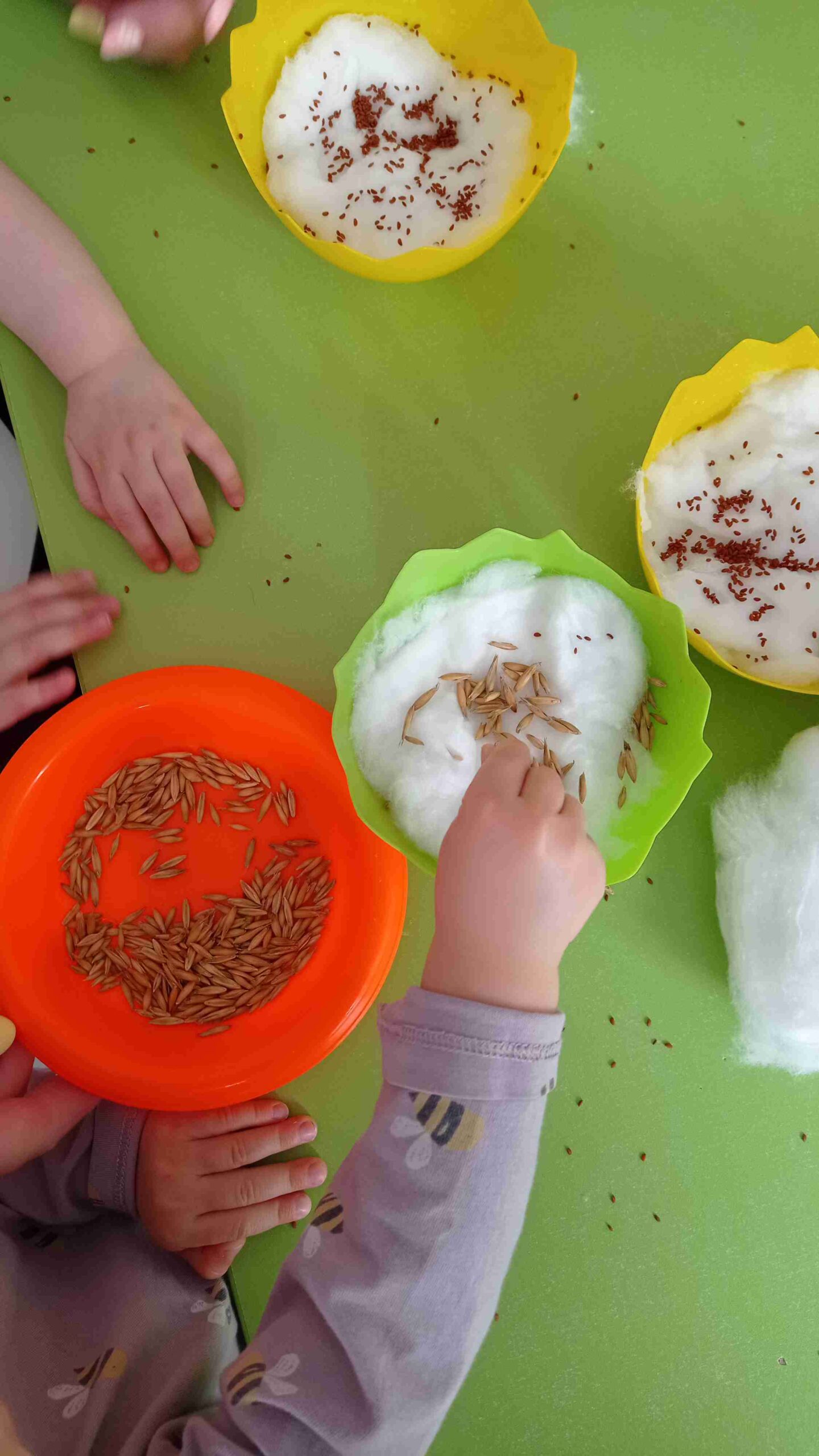 Rozpoczęliśmy również przygodę z wysiewaniem rzeżuchy i owsa. Dzieci obserwowały jak rośliny rosną, zmieniają się z dnia na dzień. Uczyły się, jak należy o nie dbać – podlewać, pielęgnować i obserwować ich rozwój.