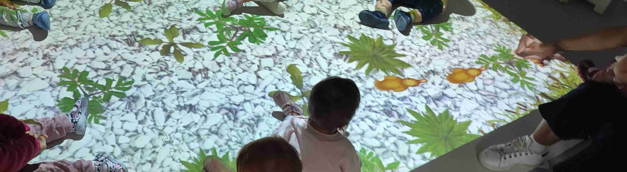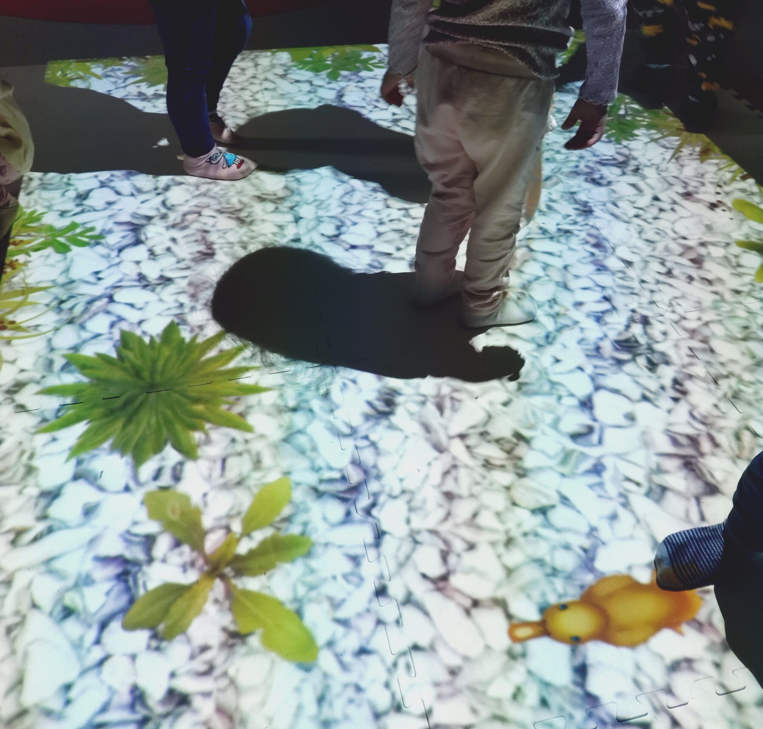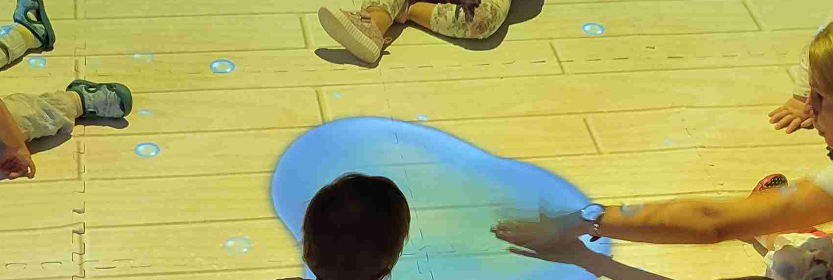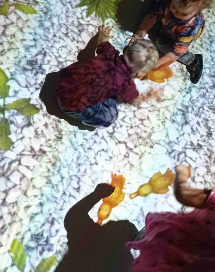 Obraz, który wyświetlany jest przy pomocy rzutnika daje efekt wirtualnego dywanu, na którym maluchy mogą się bawić, łapać rybki, spacerować po strumyku z wodą i milo spędzać czas przy innych ruchowych projekcjach. Jednym słowem –wspaniała wspólna zabawa:)