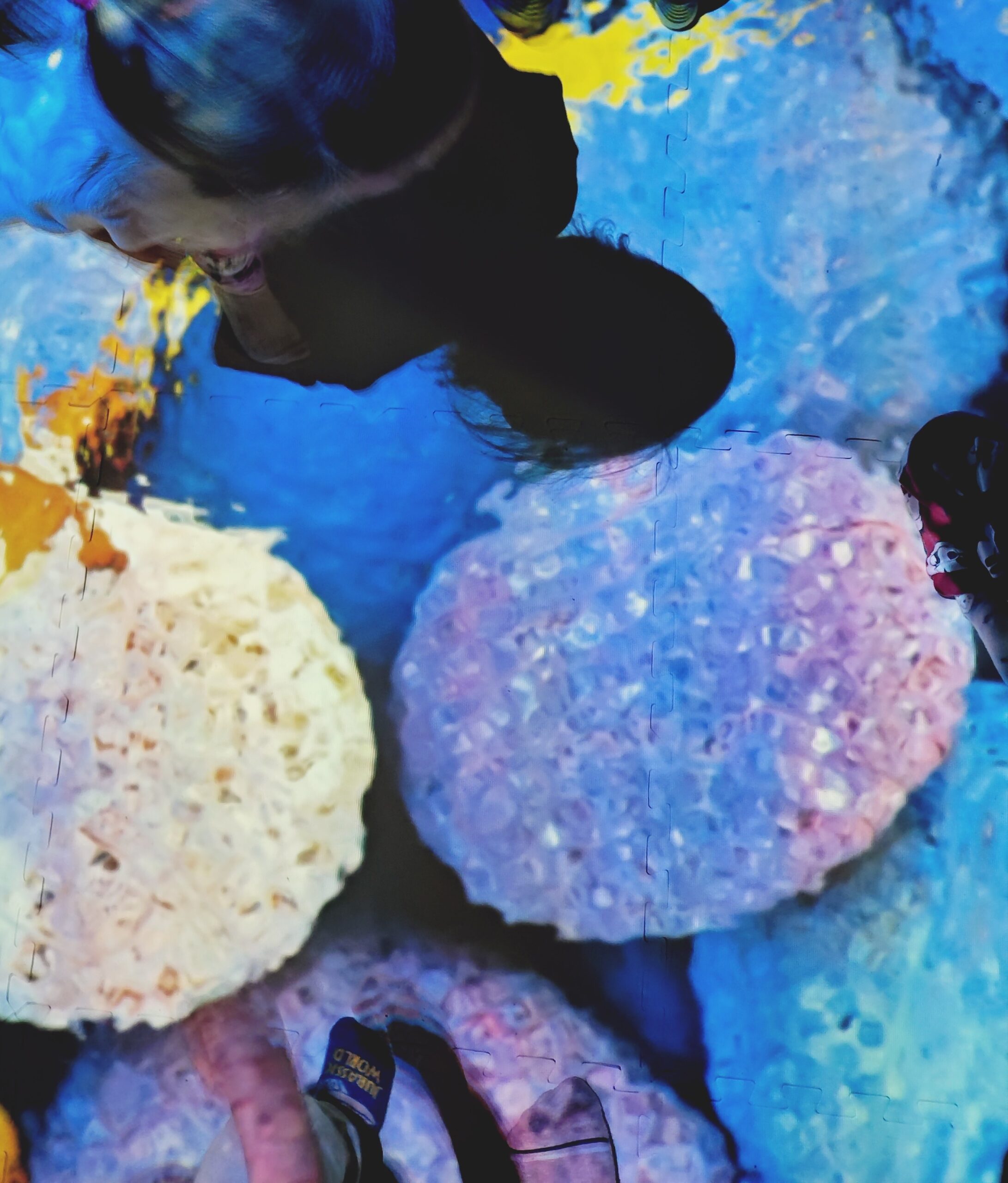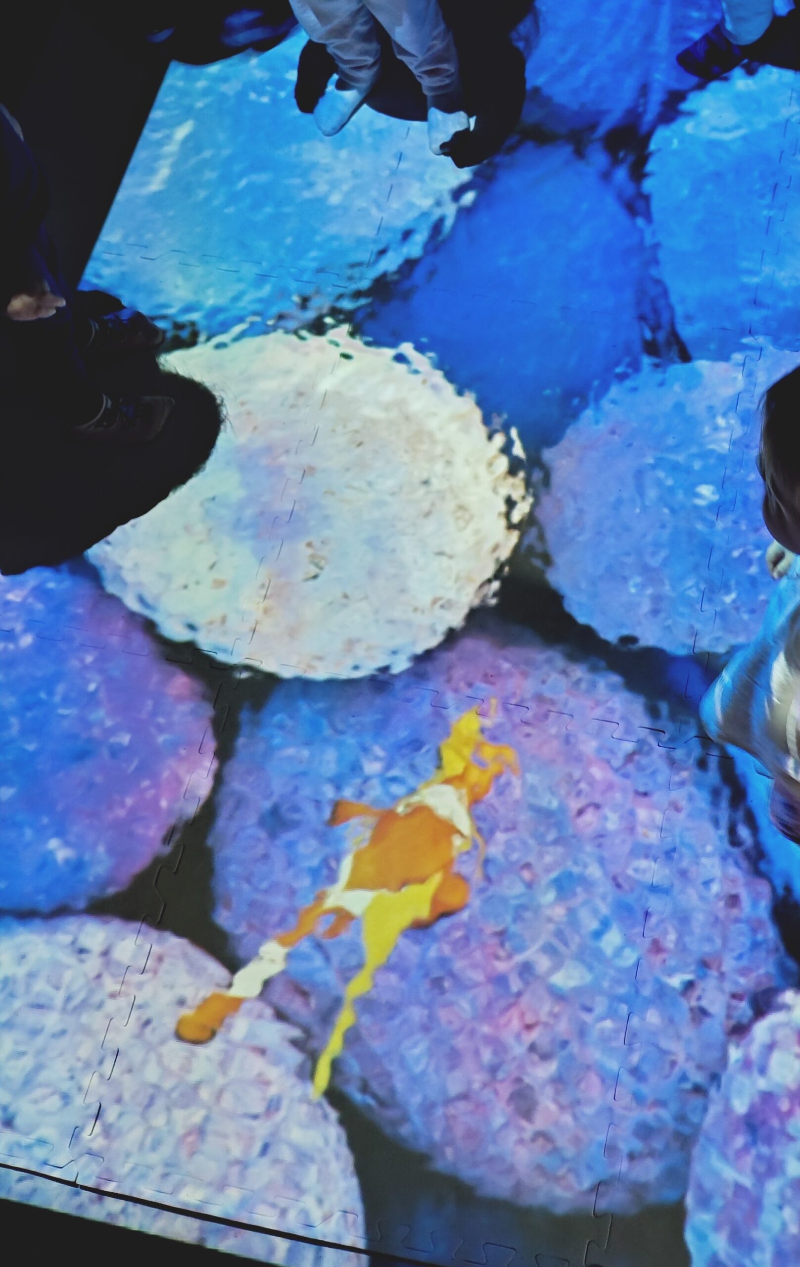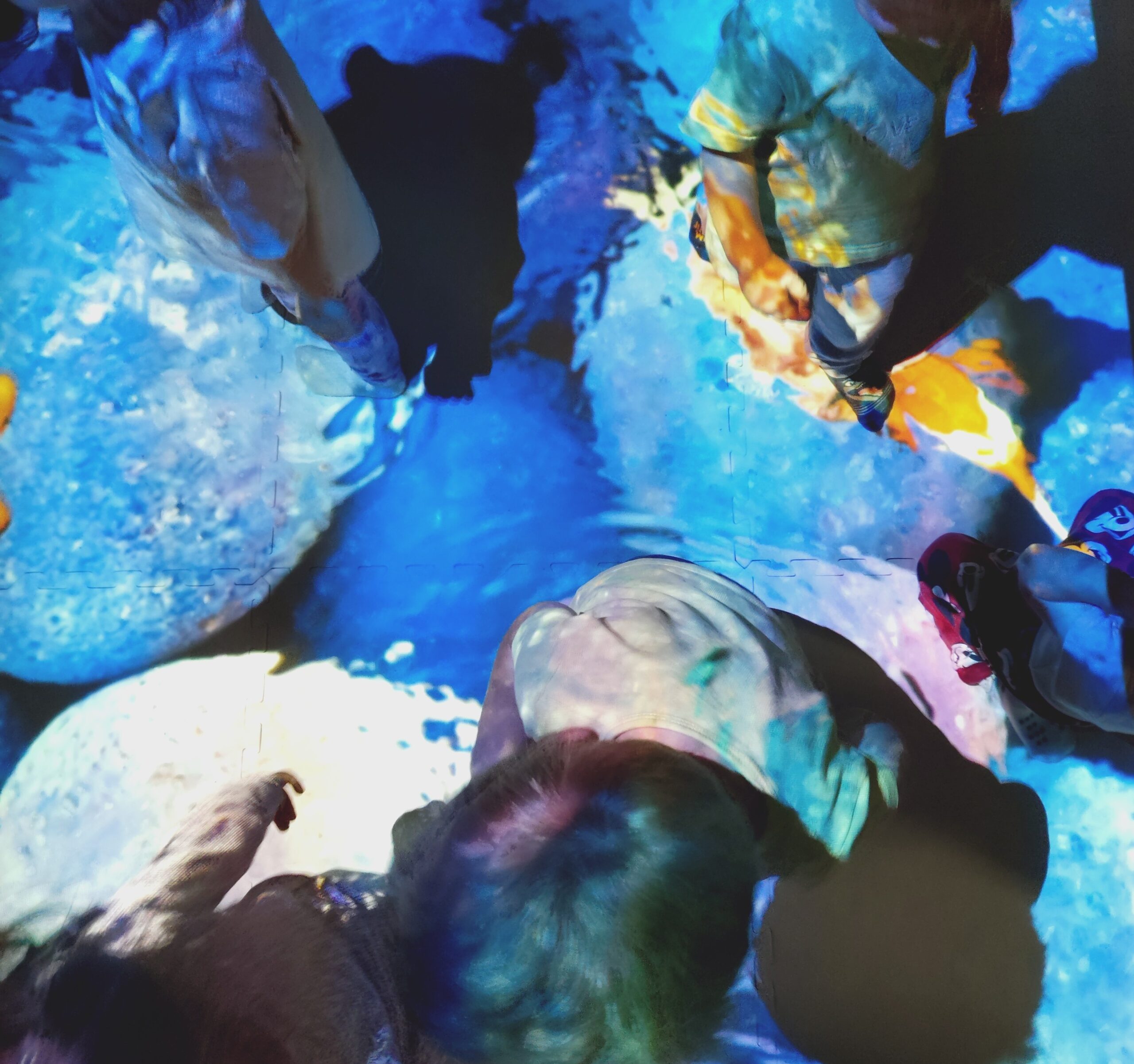 Obraz, który wyświetlany jest przy pomocy rzutnika daje efekt wirtualnego dywanu, na którym maluchy mogą się bawić, łapać rybki, spacerować po strumyku z wodą i milo spędzać czas przy innych ruchowych projekcjach. Jednym słowem –wspaniała wspólna zabawa:)