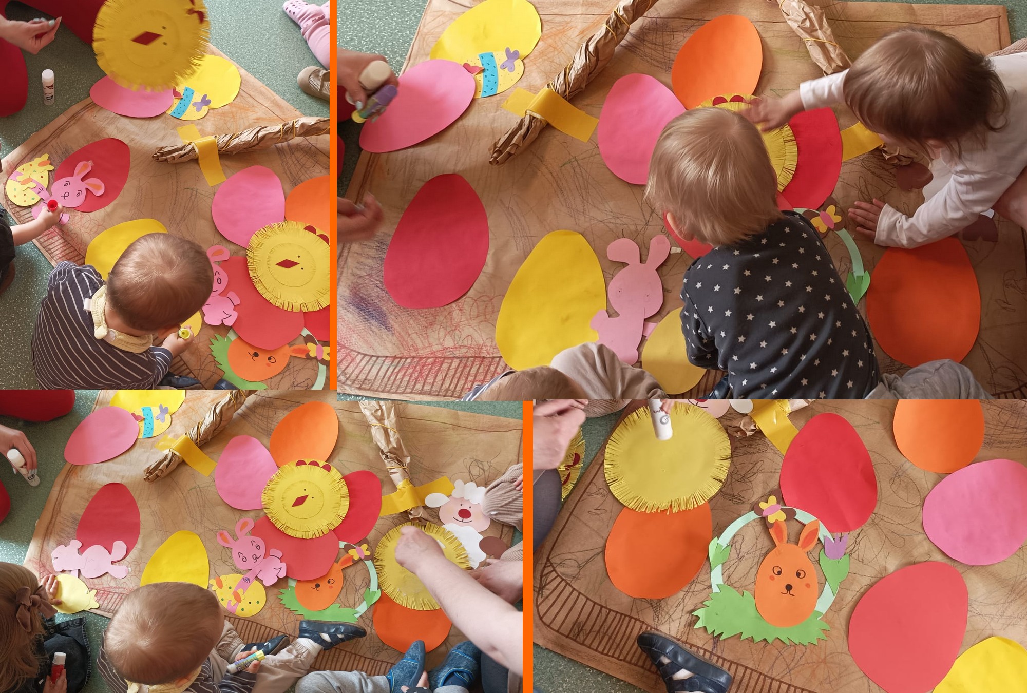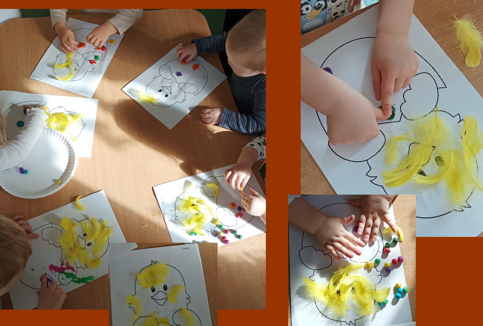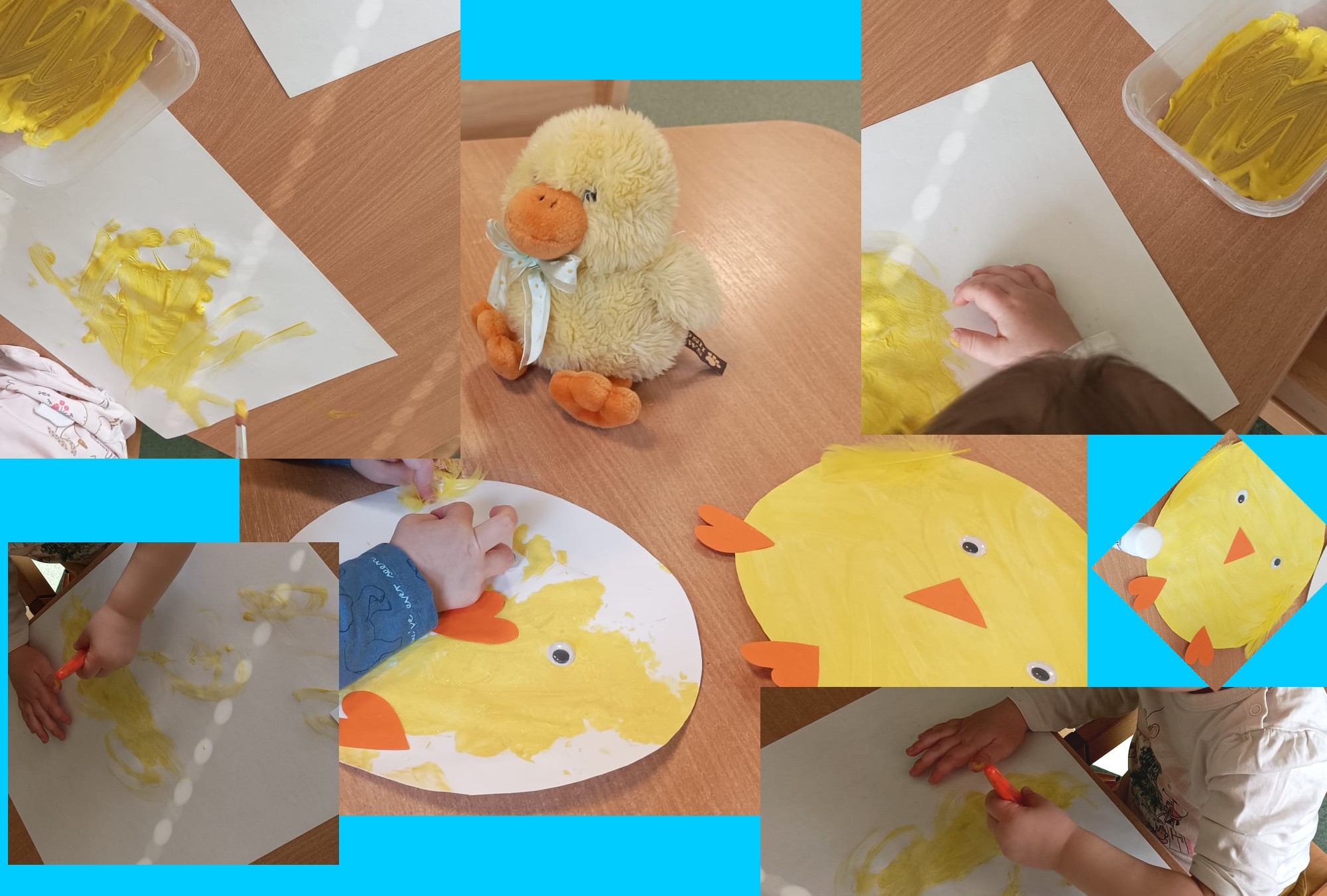 Dzieci z radością uczestniczyły w codziennych aktywnościach, rozwijając swoją kreatywność oraz sprawność manualną. Tworzyły wiosenne prace plastyczne, poznawały kolory i symbole związane z nową porą roku, a także chętnie brały udział w zabawach ruchowych.
