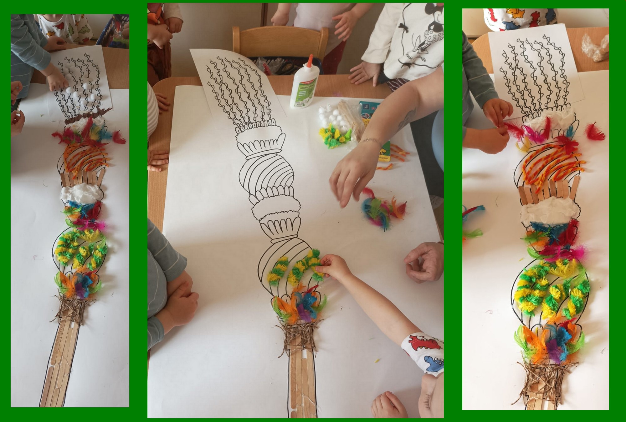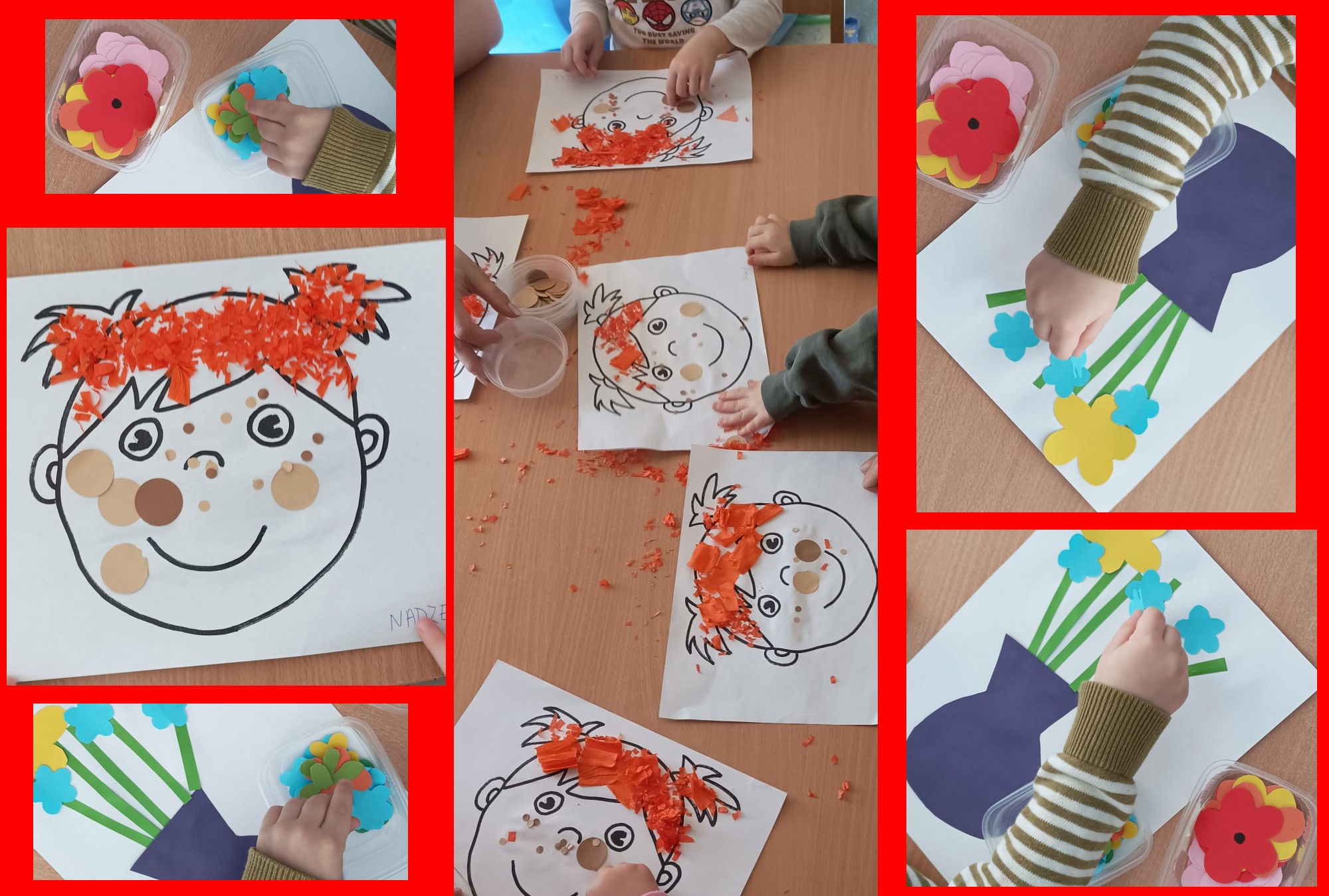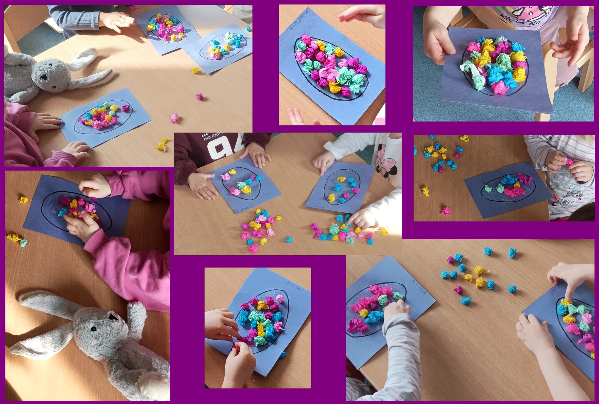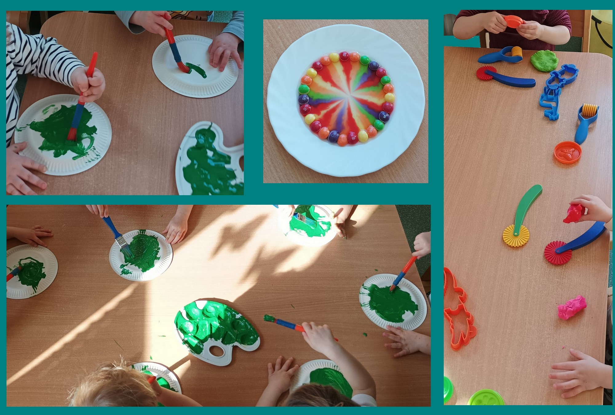 Dzieci z radością uczestniczyły w codziennych aktywnościach, rozwijając swoją kreatywność oraz sprawność manualną. Tworzyły wiosenne prace plastyczne, poznawały kolory i symbole związane z nową porą roku, a także chętnie brały udział w zabawach ruchowych.