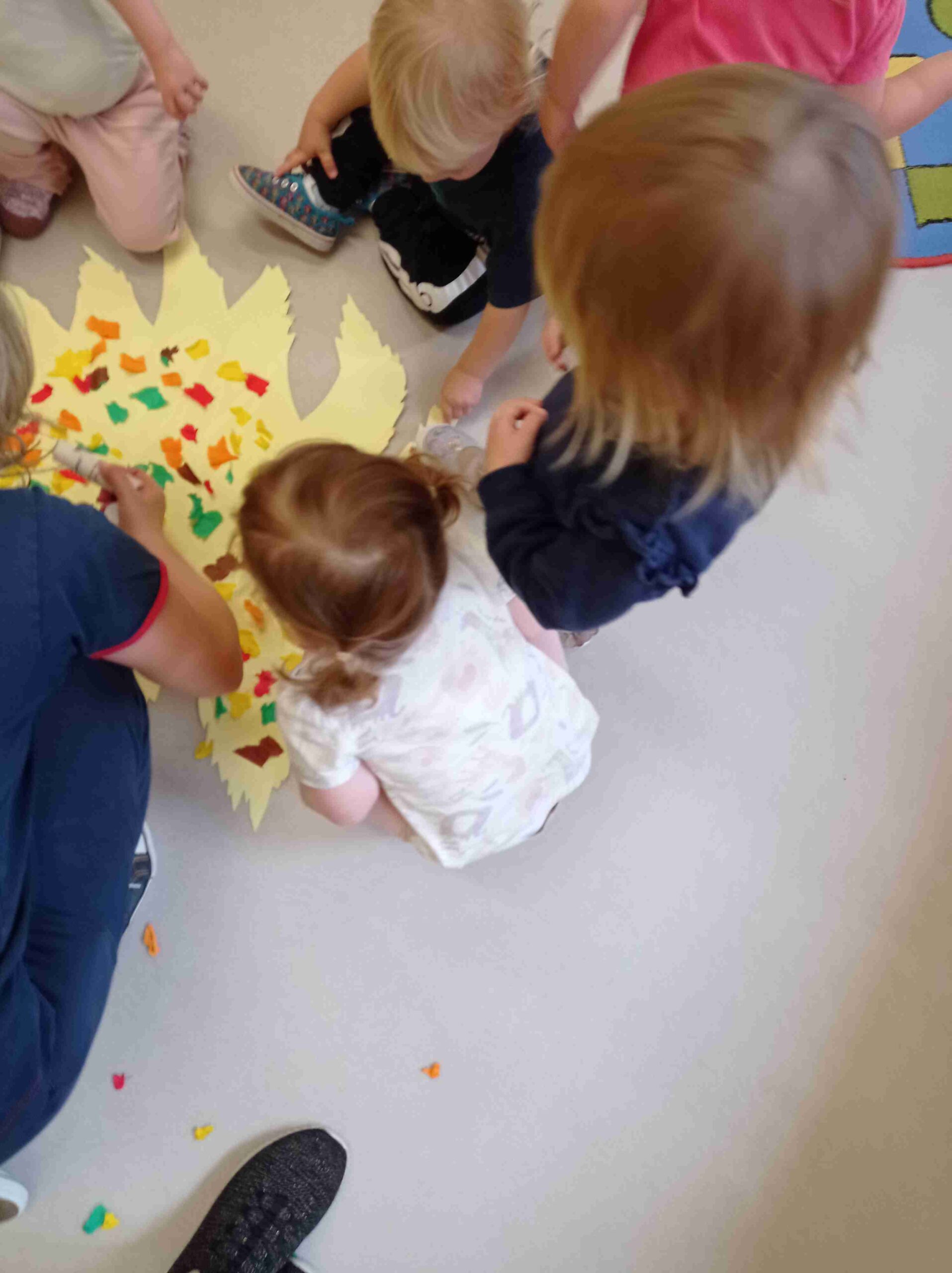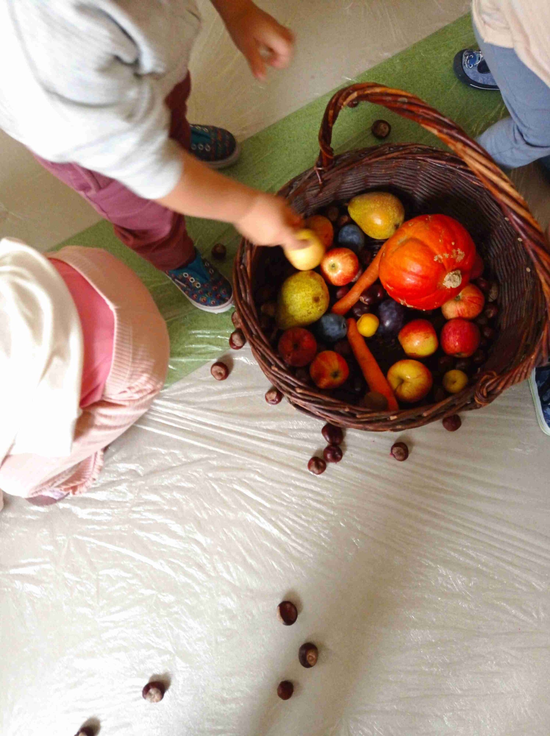 W październiku poznawaliśmy dary jesieni. Zbieraliśmy kolorowe liście, żołędzie, kasztany. Z zebranych darów wykonywaliśmy różne prace, raz samodzielnie, raz wspólnie z kolegami i koleżankami. Zawsze przy tym dobrze się bawiliśmy. Staraliśmy się spędzać jak najwięcej czasu w naszym żłobkowym ogrodzie, ale nie zawsze pogoda nam dopisywała. Korzystaliśmy wtedy z magicznego dywanu w naszej sali ruchowej – to jest super zabawa! Udało nam się także spotkać z Rodzicami podczas pikniku rodzinnego – na szczęście pogoda dopisała, po porannych opadach deszczu wyszło słoneczko i wszyscy dobrze się bawiliśmy. Dziękujemy za udział w zabawie:) Poznaliśmy także instrument muzyczny – obój. Z zaciekawieniem wysłuchaliśmy opowieści i posłuchaliśmy jak gra. Dużo się u nas działo. Czas szybko mija, za chwilę listopad – zobaczymy co nam przyniesie