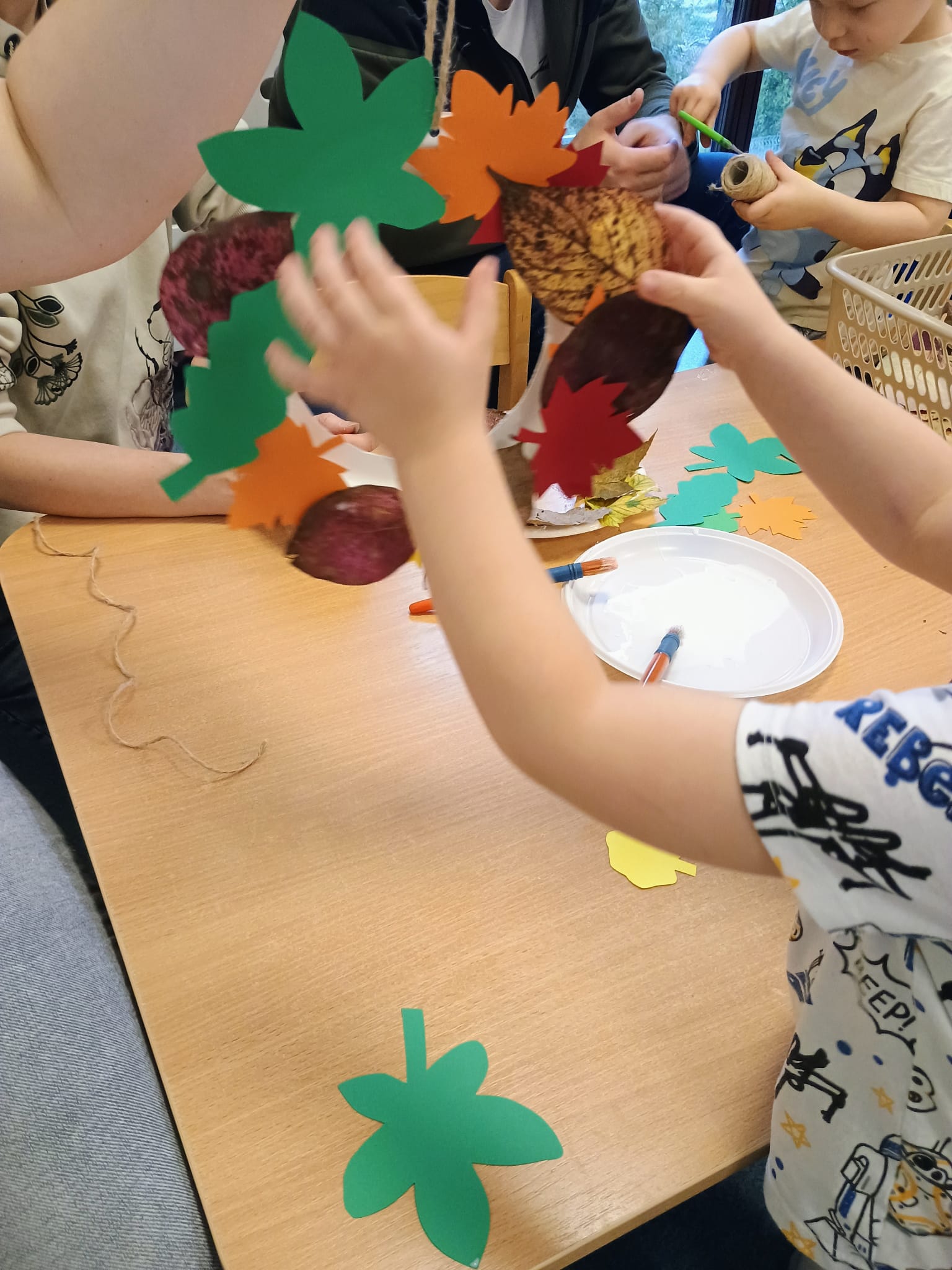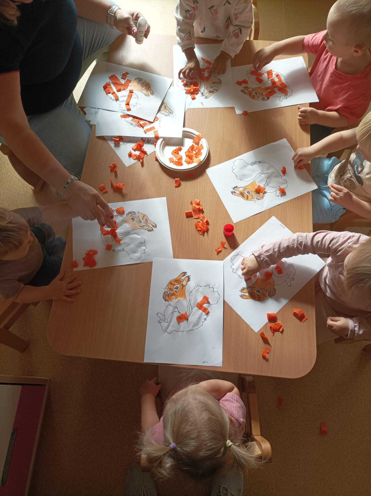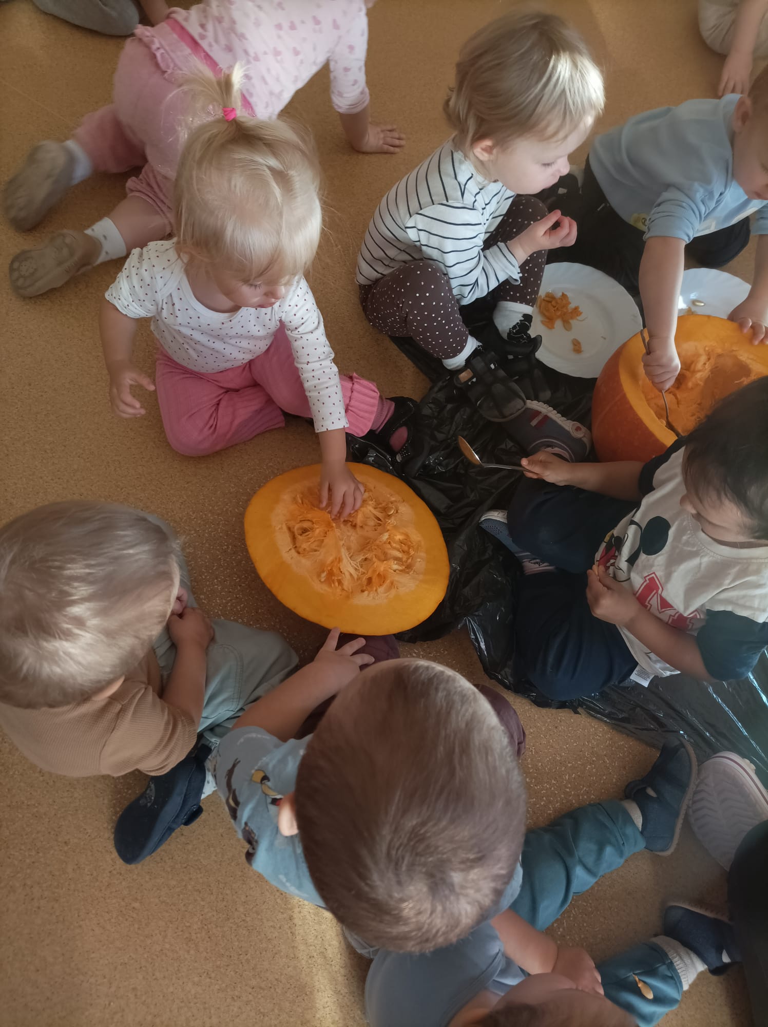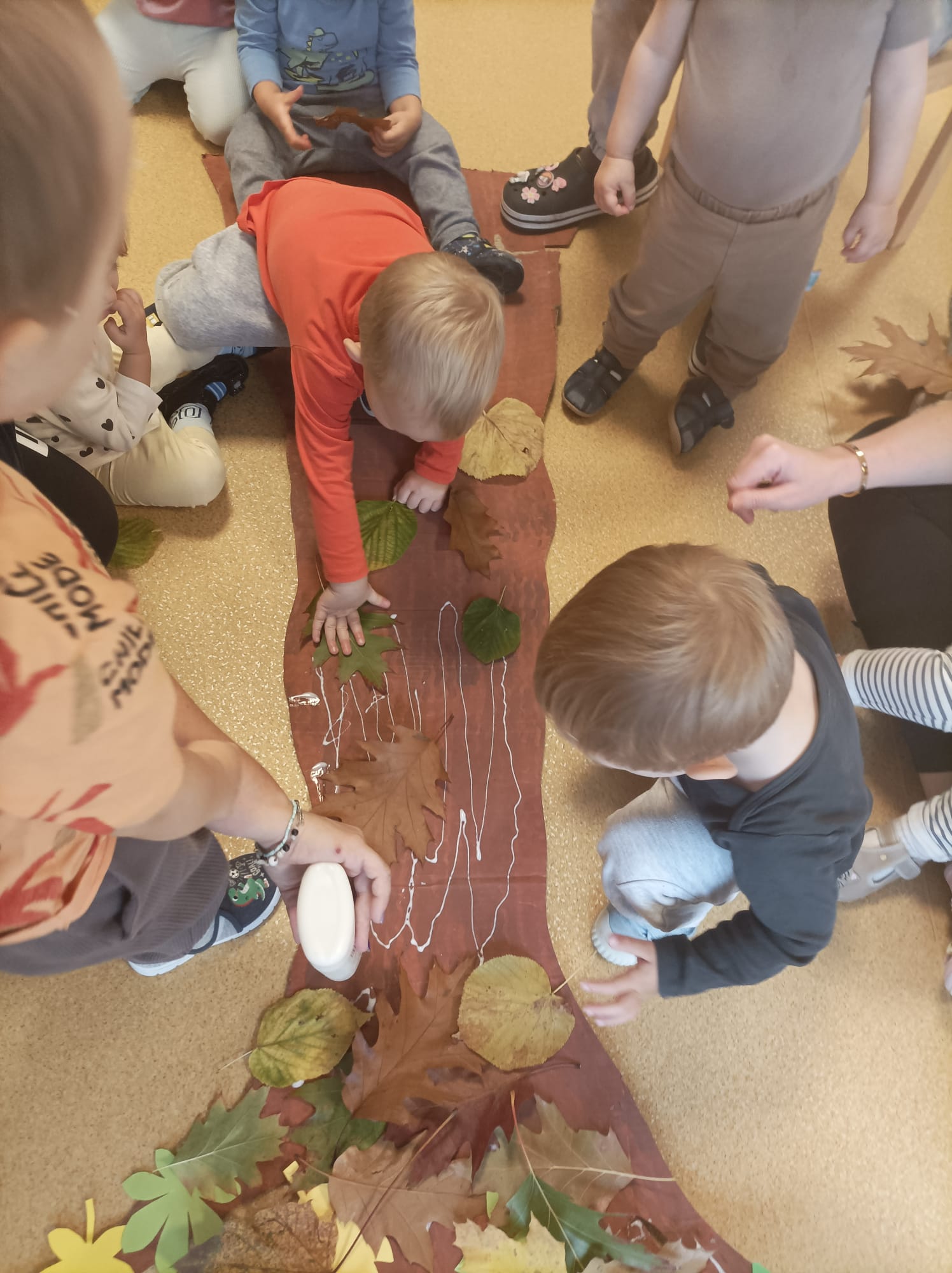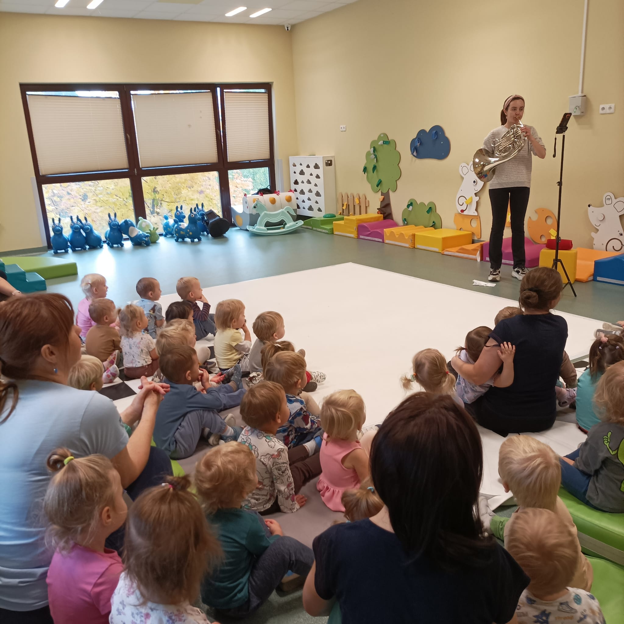 W październiku kończą się już adaptacje. Rozwineły się głebokie relacje. Pierwsze warsztaty z rodzicami się już odbyły. Dzieci z rodzicami wieńce jesienne robiły. Kontynuujemy jesienne zabawy. Na pogodę deszczową zawsze sposób mamy. Odwiedziła nas Pani, która na Walturi grała. Dzieci uważnie słuchały, inne do muzyki tańcowały.