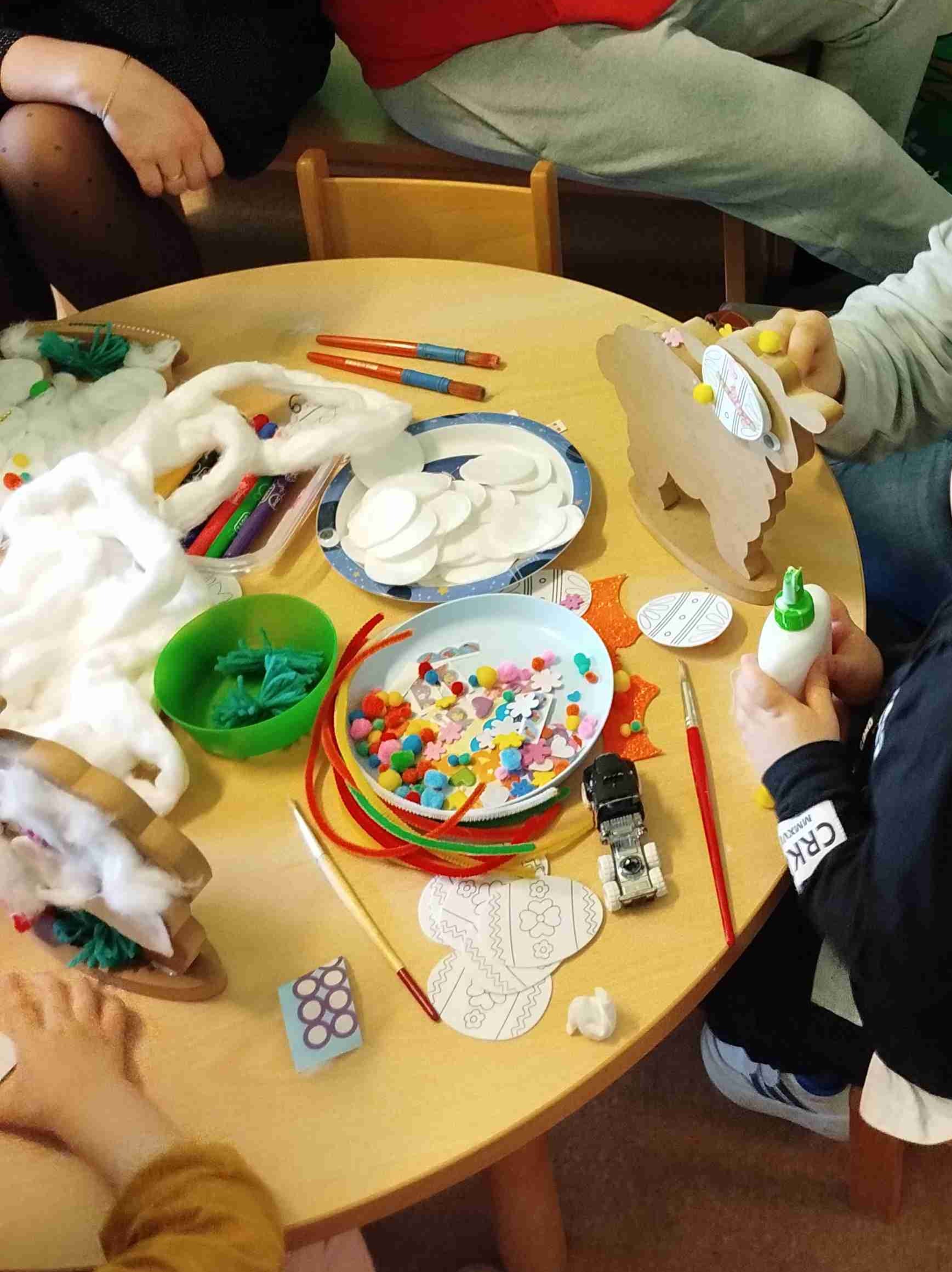 W związku ze zbliżającymi się Świętami Wielkanocnymi, wprowadziliśmy wiele aktywności o tematyce świątecznej. Dzieci malowały pisanki, wyklejały kurczaczki oraz brały udział w warsztatach wielkanocnych, które pobudzały ich wyobraźnię i pozwalały na wyrażanie twórczej ekspresji. Powstały piękne, kolorowe prace pełne dziecięcej radości.