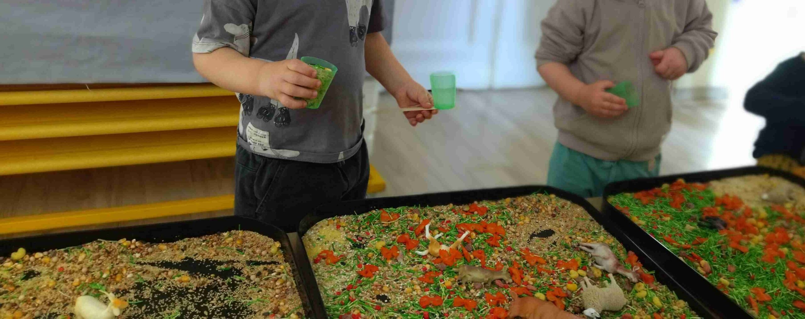 Marzec w naszym żłobku upłynął w radosnej, wiosennej atmosferze. Dzieci uczestniczyły w różnorodnych aktywnościach, które wspierały ich rozwój ruchowy oraz artystyczny. Nie zabrakło zabaw sensorycznych, podczas których dzieci mogły poznawać różne faktury, kolory i kształty, rozwijając swoje zmysły poprzez doświadczenie i swobodną eksplorację.