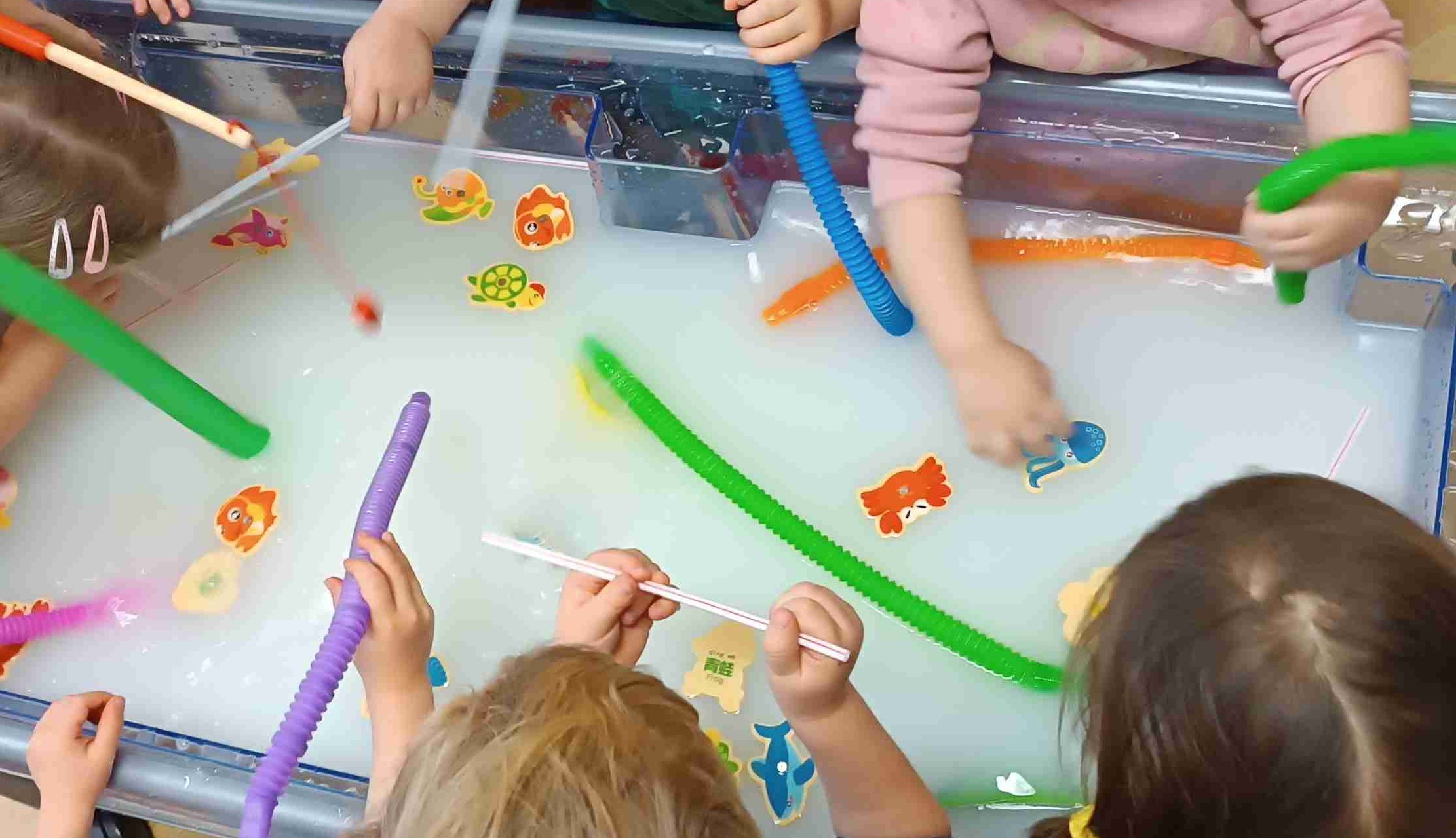 - Strefa sensoryczna – zabawa wodą i piaskiem – rozwijająca motorykę małą i zdolności poznawcze.