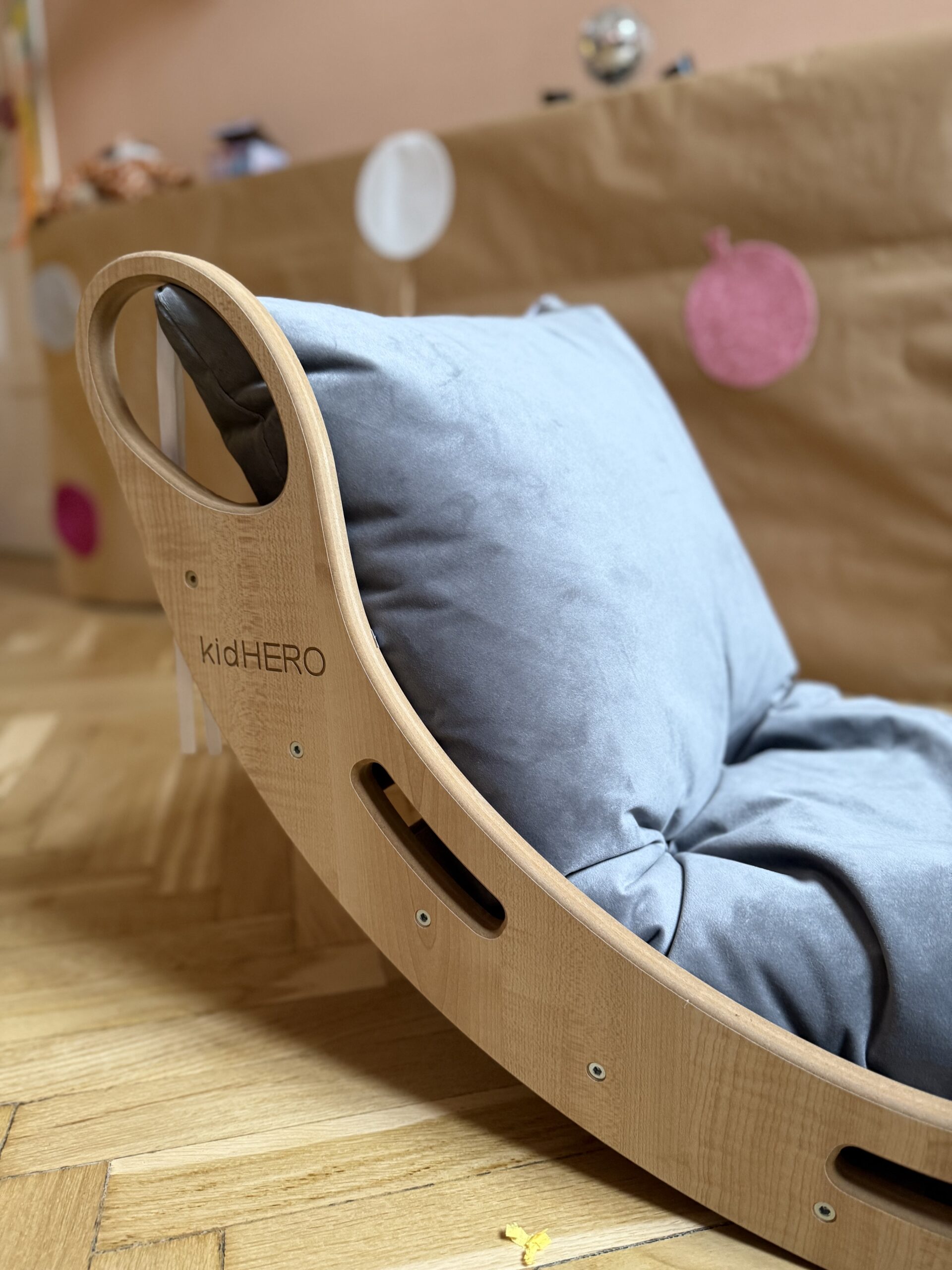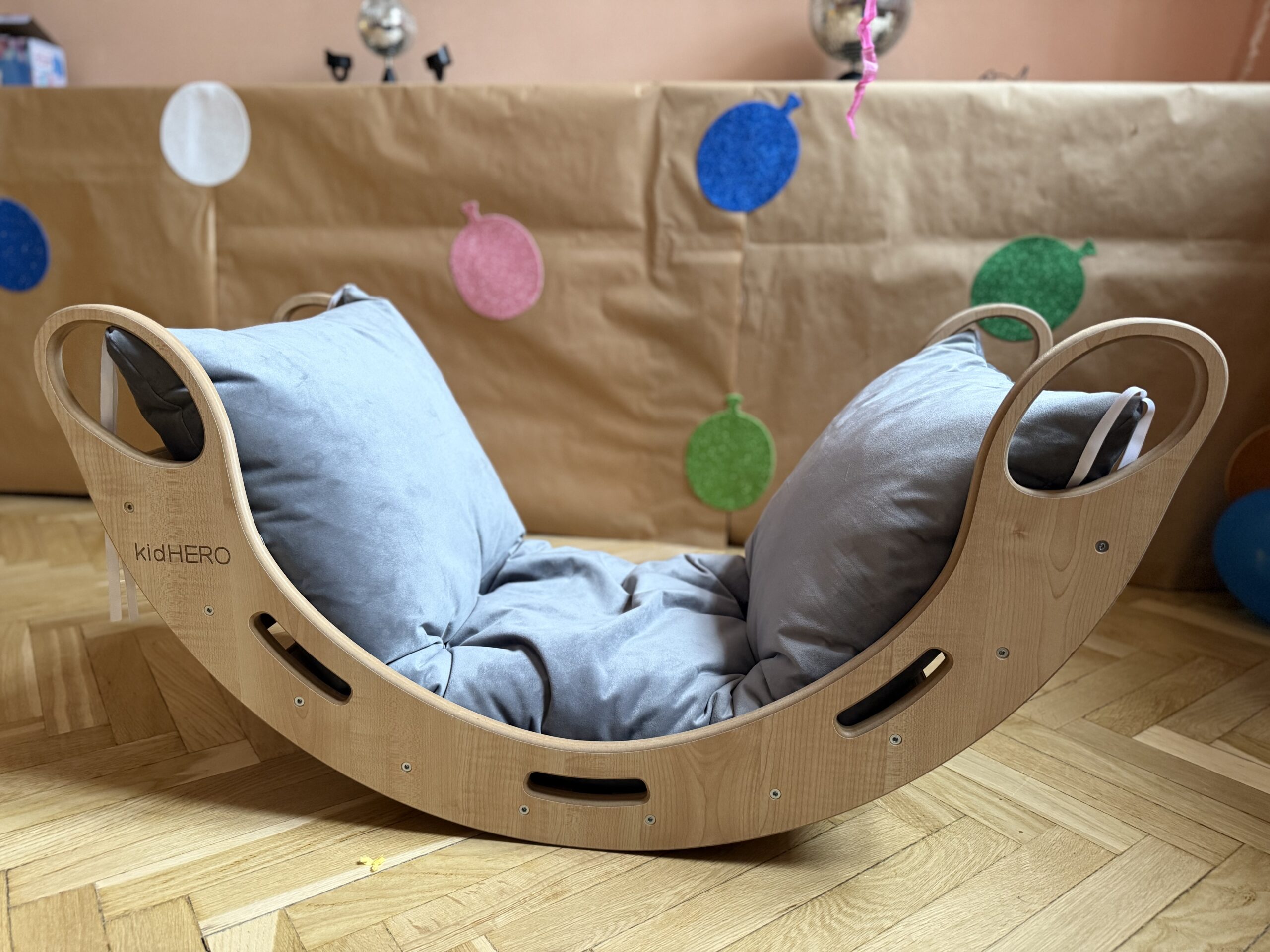- Zestawy Montessori i bujaki – rozwijające równowagę, koordynację i samodzielność.