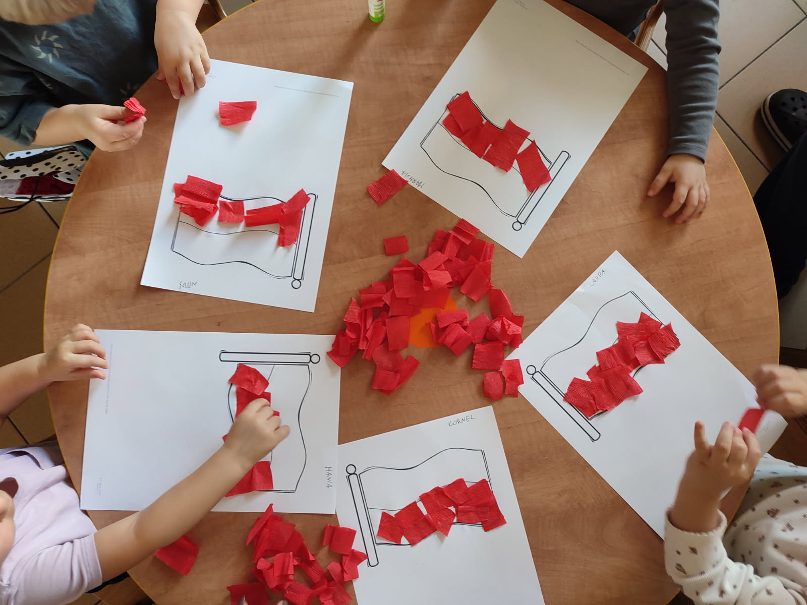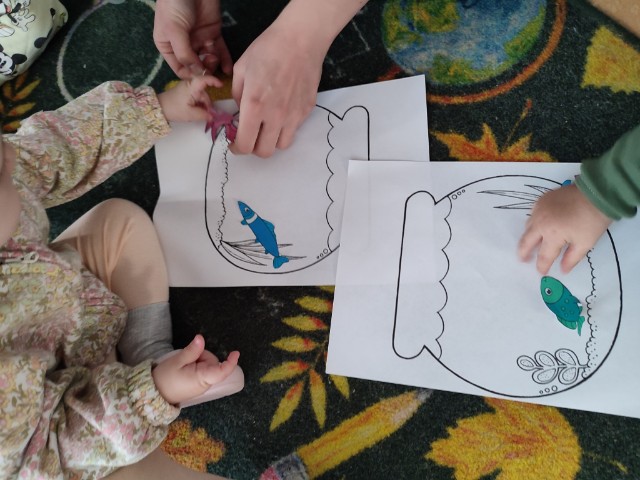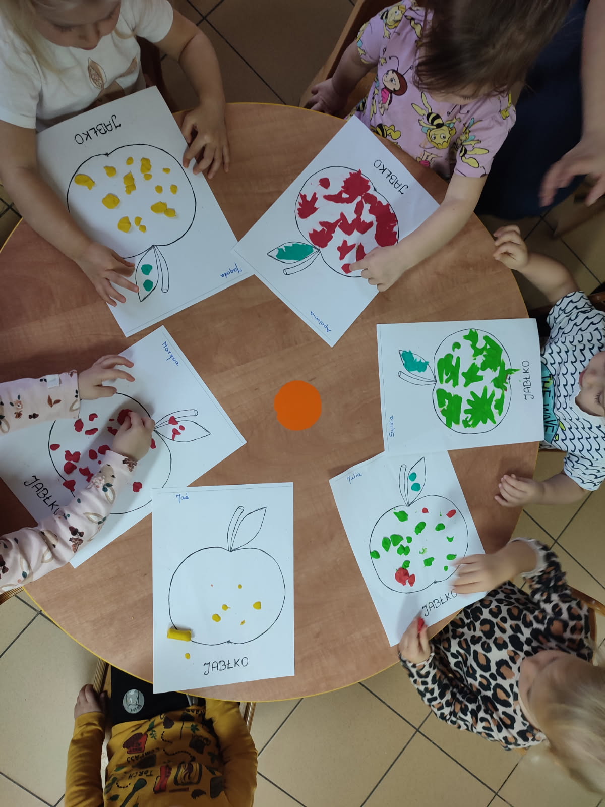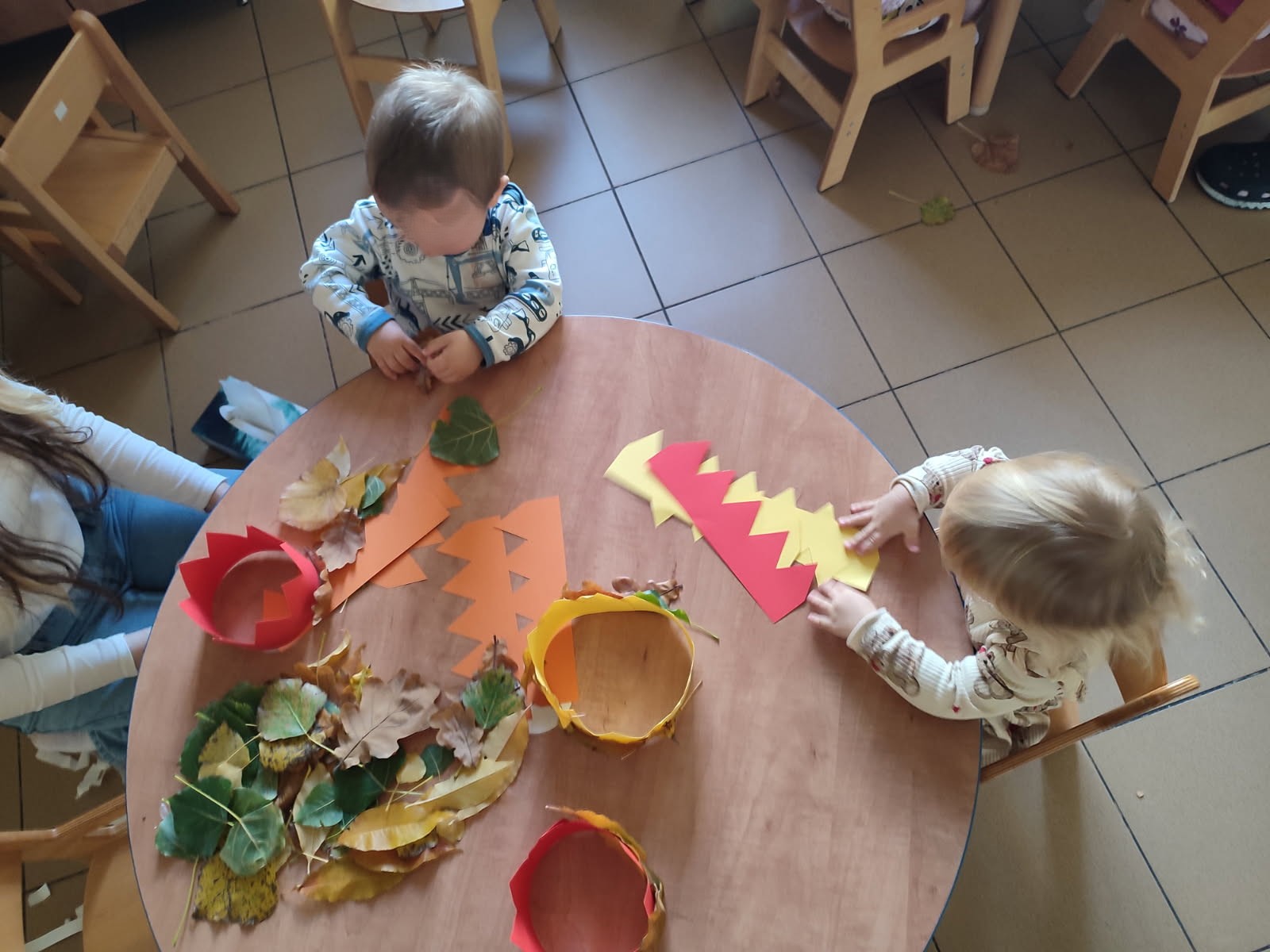Dzieci w grupie pierwszej wyklejają jesienne korony