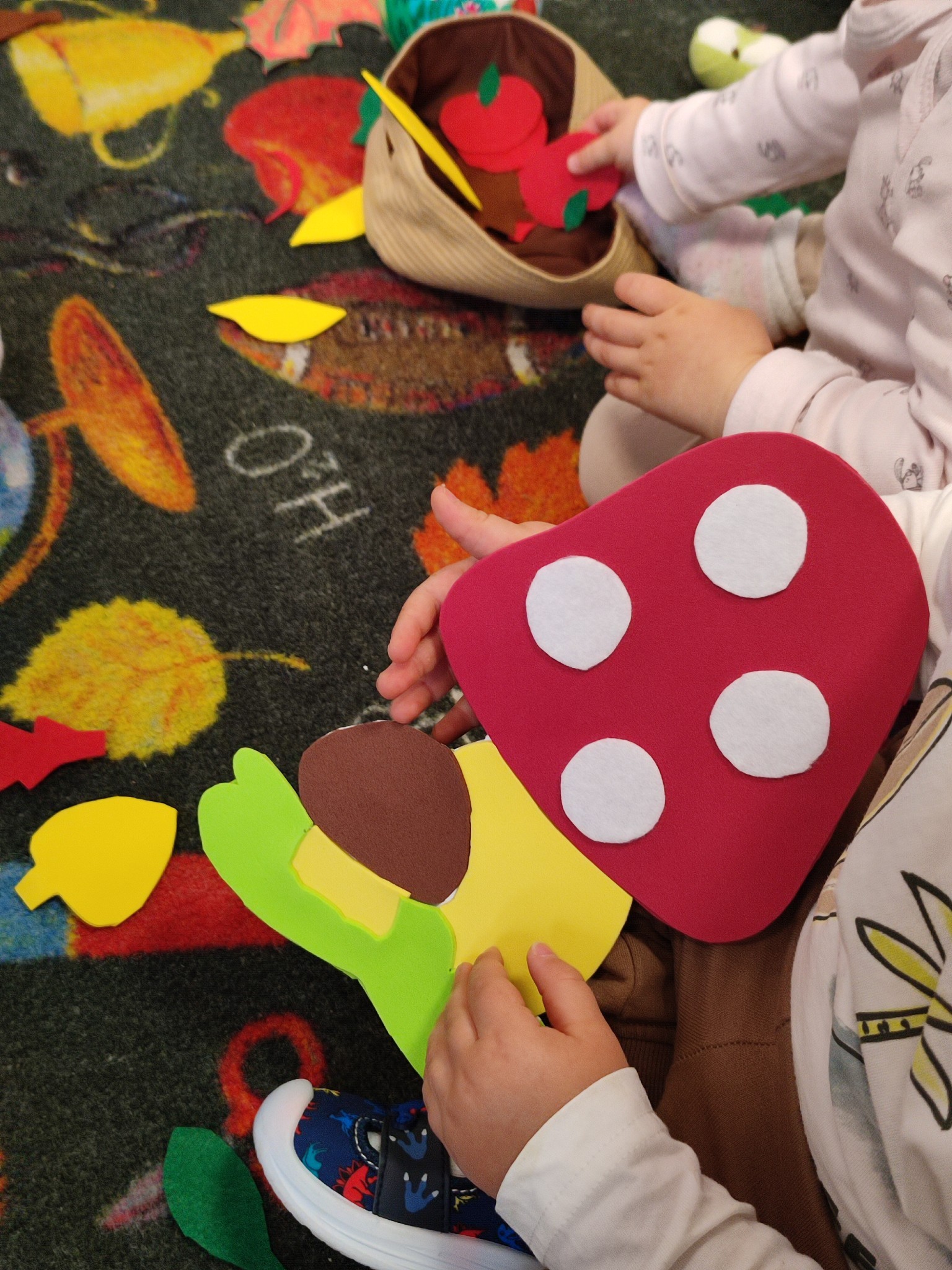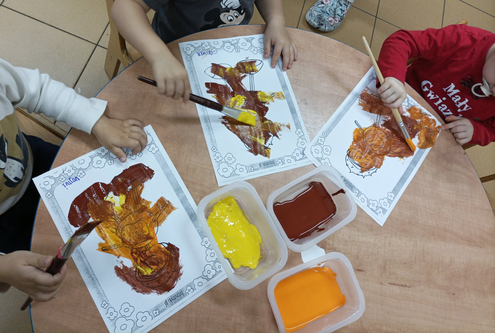 Październik upłynął nam w niezwykle kolorowej i radosnej atmosferze! Dzieci miały okazję poznawać uroki jesieni wszystkimi zmysłami — zarówno podczas wspólnych zabaw, jak i zajęć plastycznych.