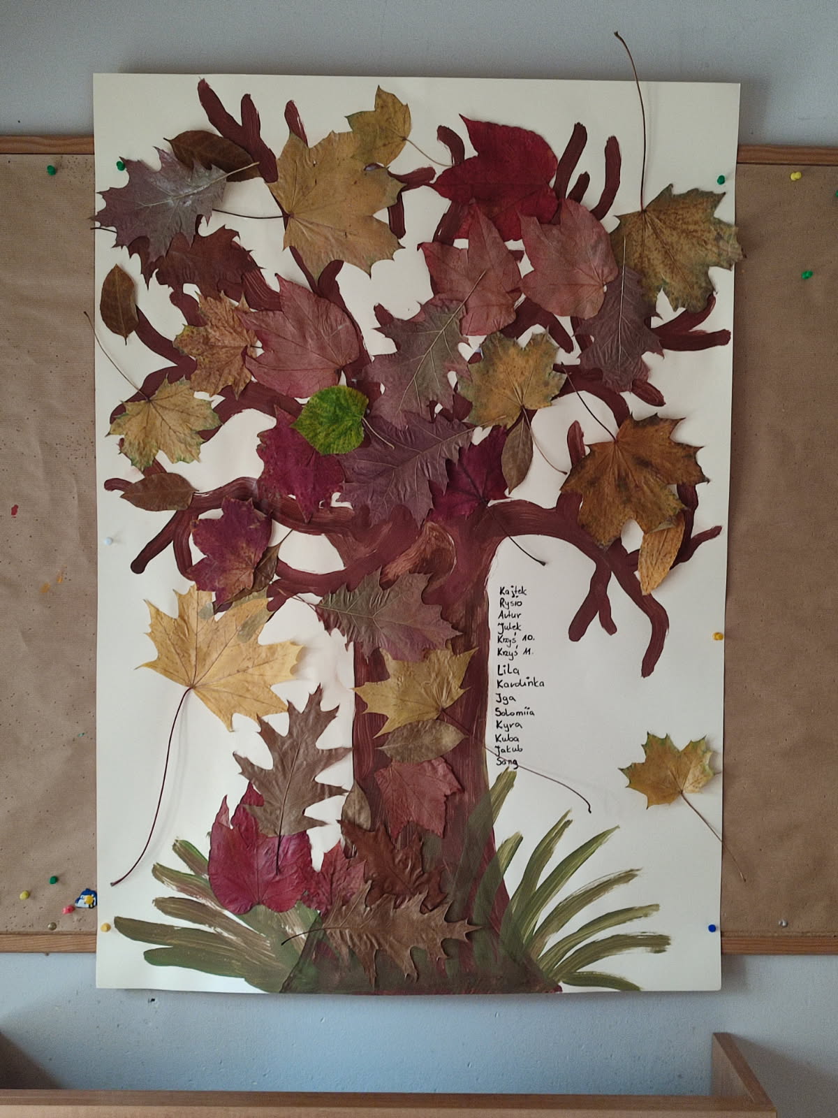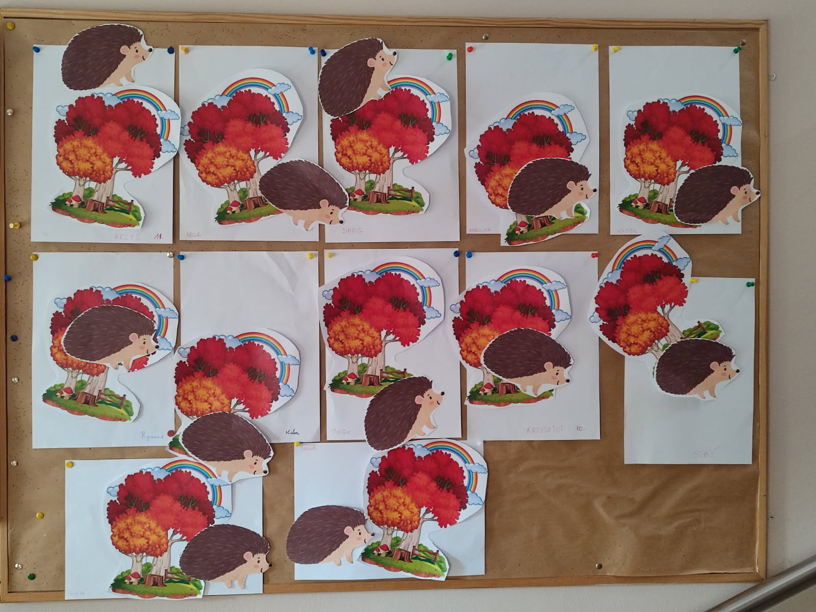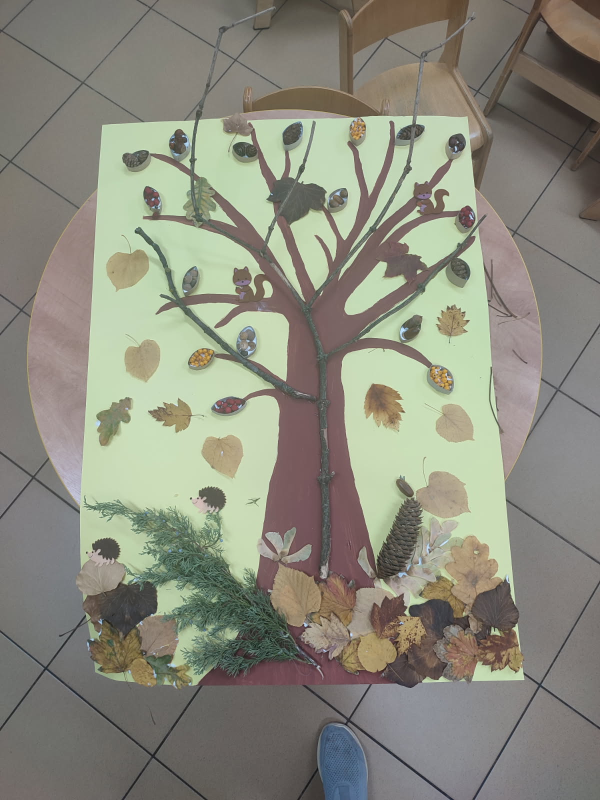 Tworzyliśmy piękne prace inspirowane jesiennymi barwami: malowaliśmy liście, wyklejaliśmy kolorowe drzewa, a nawet robiliśmy kasztanowe ludki! 🌰🎨 Dzięki temu nasze sale wypełniły się ciepłymi odcieniami żółci, pomarańczy i czerwieni.