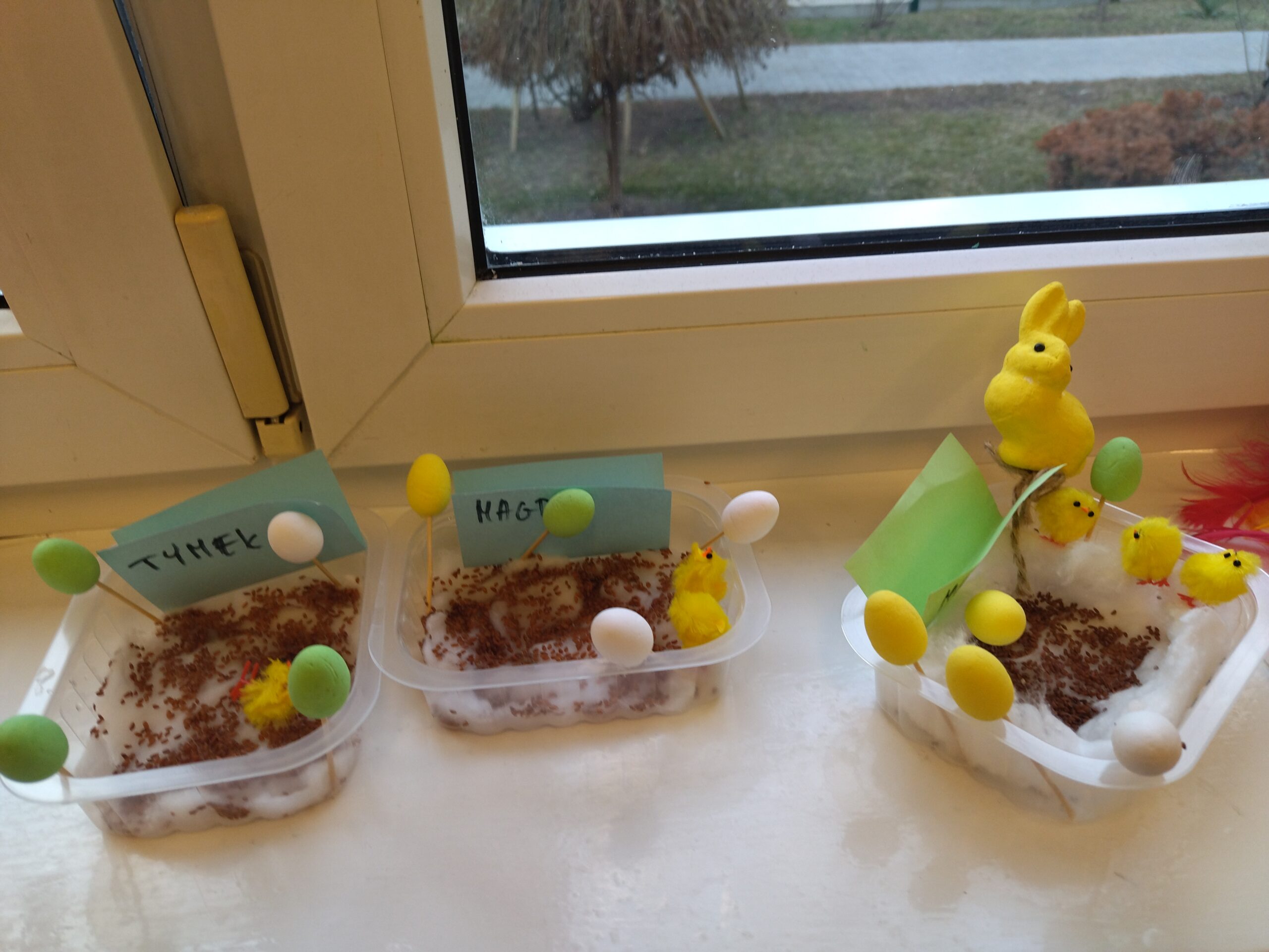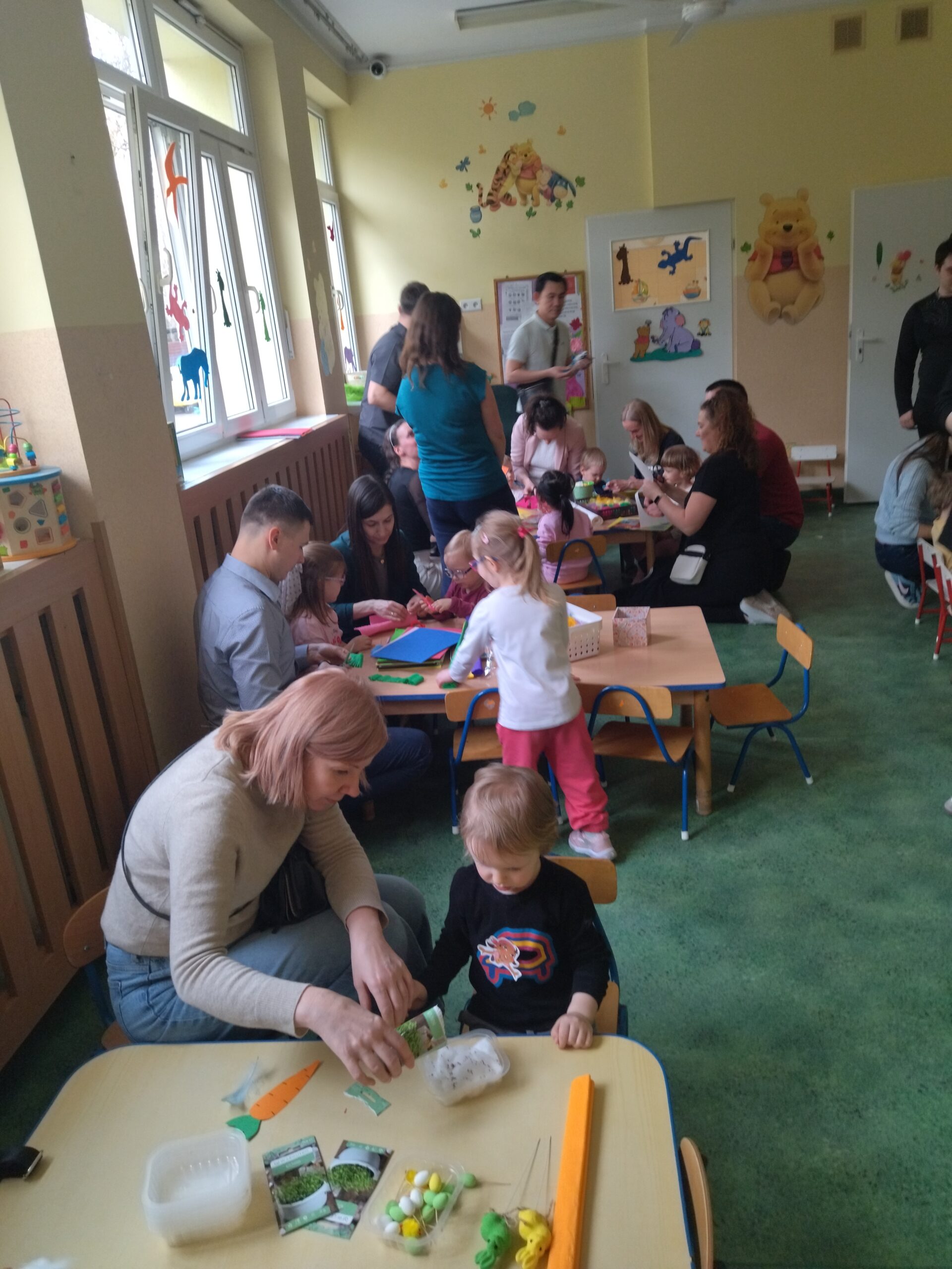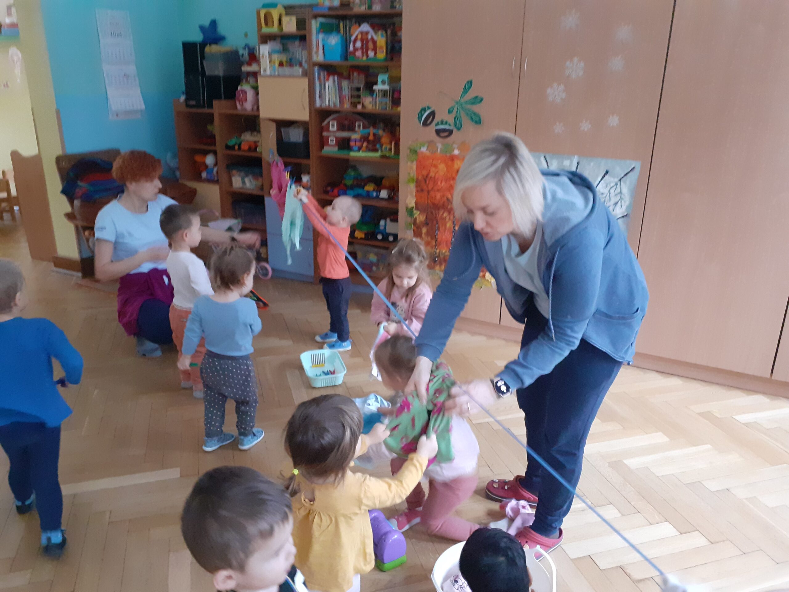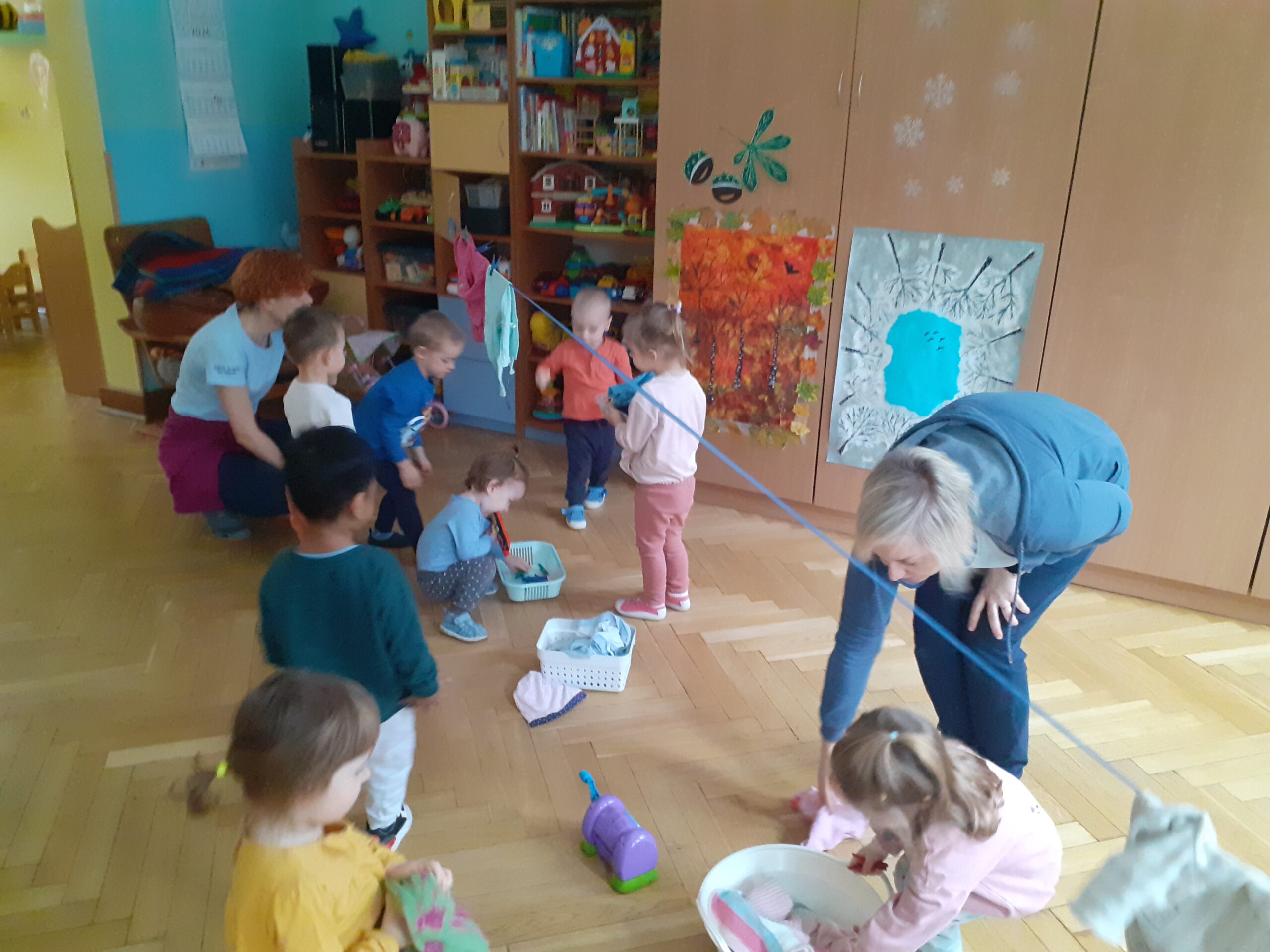 Nareszcie nadeszła długo wyczekiwana wiosna, a wraz z nią w naszym ogrodzie pojawiły się pierwsze kwiaty: hiacynty i żonkile. Zieleń i inne wiosenne kolory zakwitły też w pracach dzieci. Wiosna to też czas porządków, jak widać w kąciku pralniczym dzieci często robiły pranie.W oczekiwaniu na Wielkanoc zaprosiliśmy dzieci i rodziców na Warsztaty Wielkanocne. Było bardzo wesoło i kreatywnie.; posialiśmy rzeżuchę, zrobiliśmy wielkanocne kolaże i wraz z zającem, zbieraliśmy pisanki do koszyczka.
