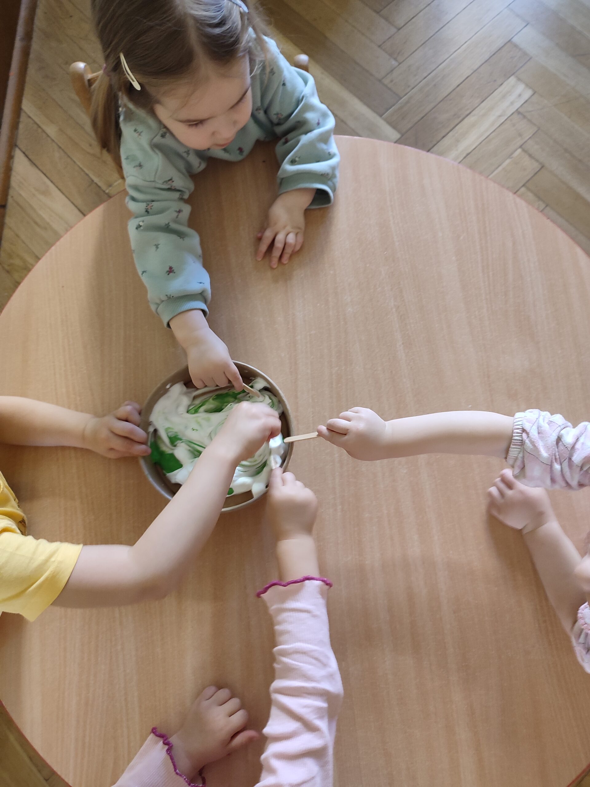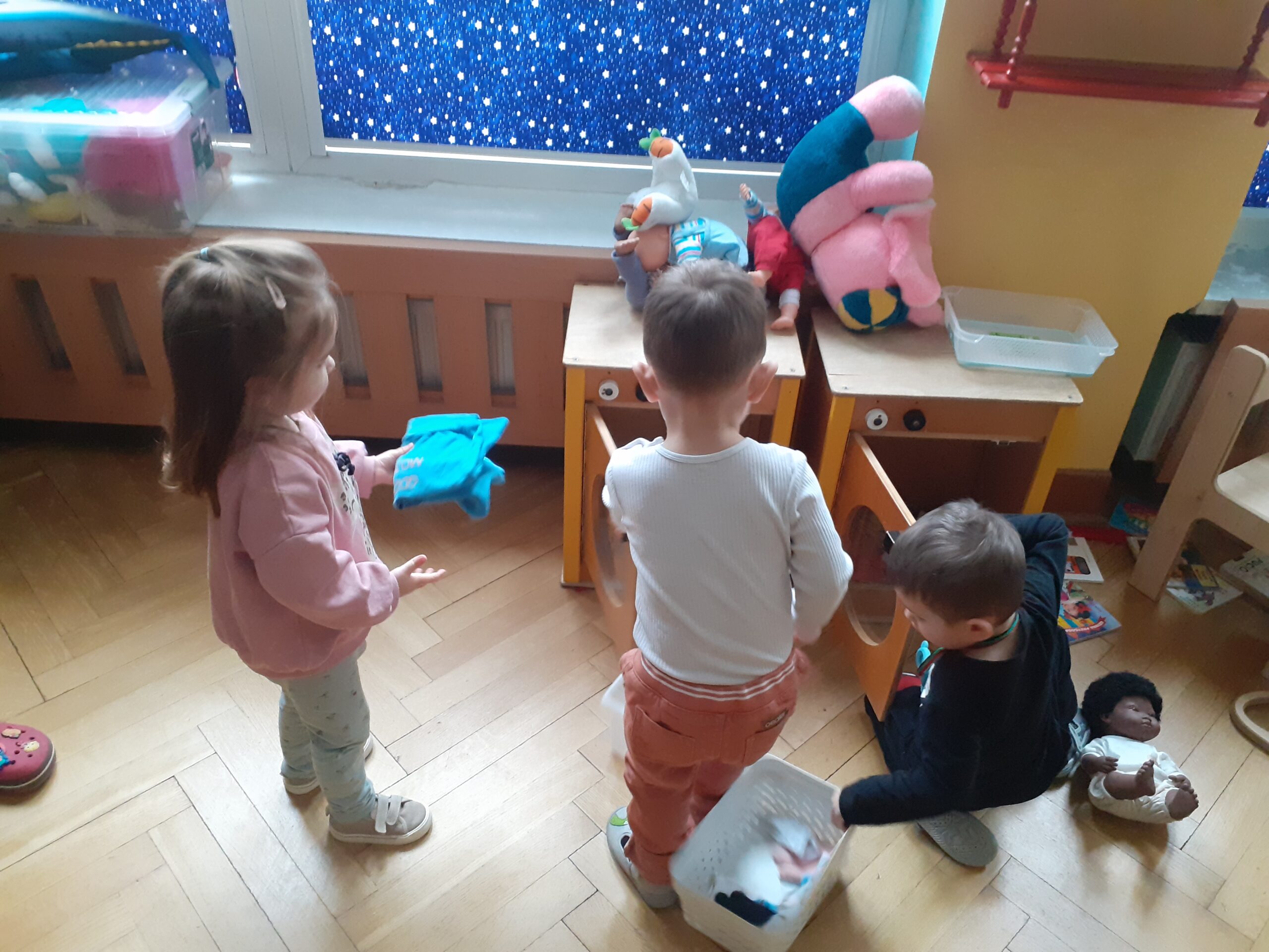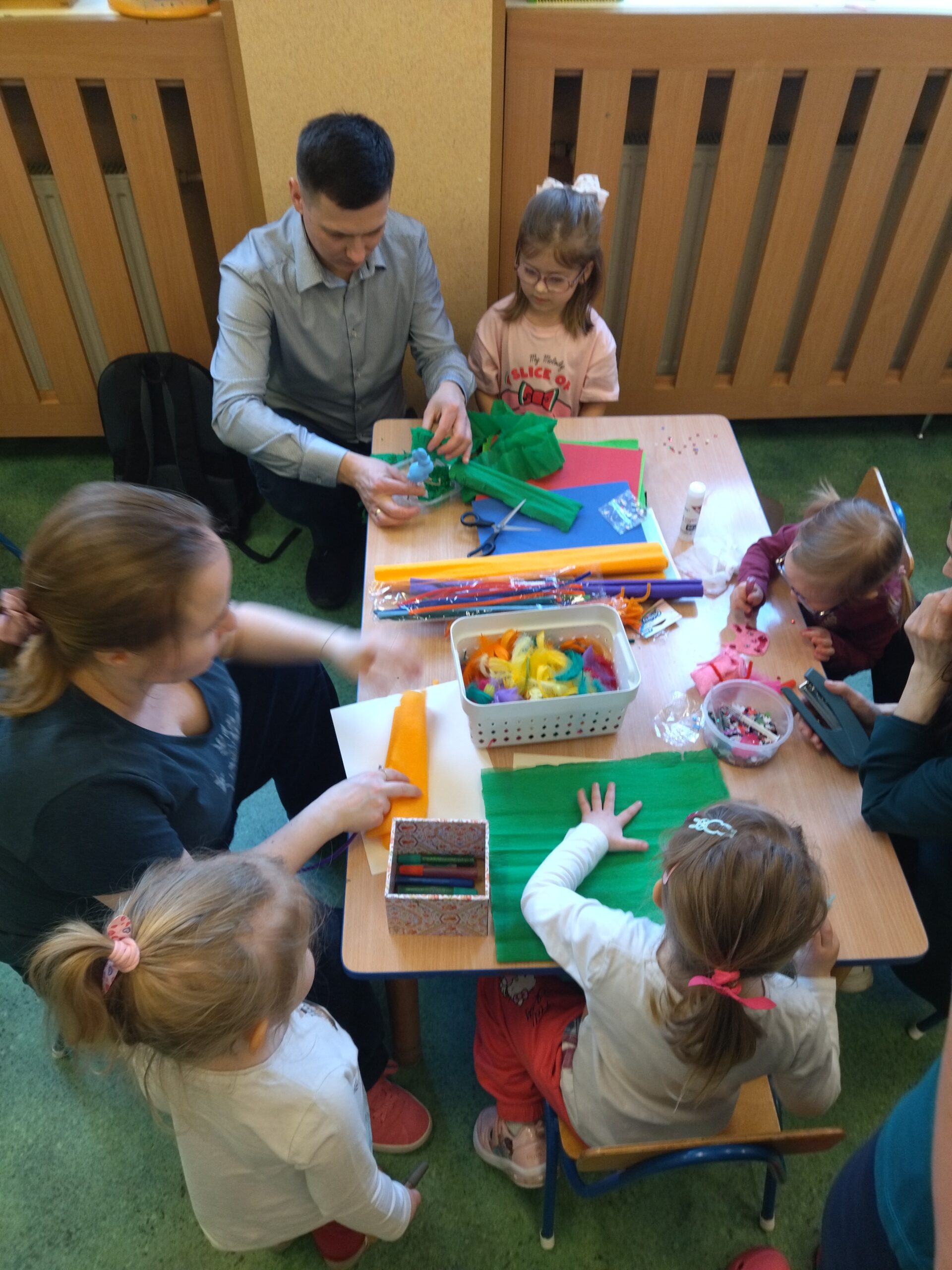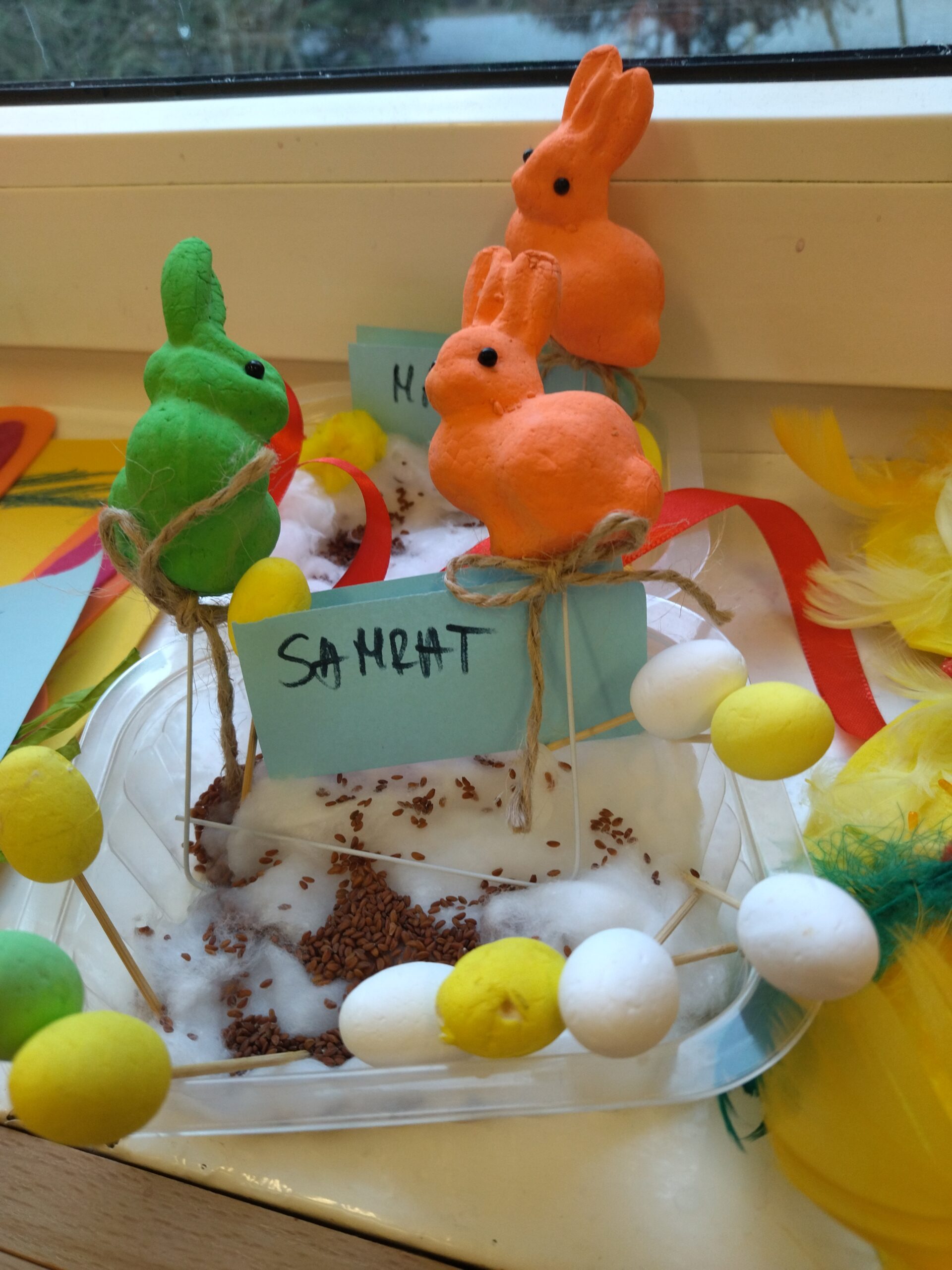 Nareszcie nadeszła długo wyczekiwana wiosna, a wraz z nią w naszym ogrodzie pojawiły się pierwsze kwiaty: hiacynty i żonkile. Zieleń i inne wiosenne kolory zakwitły też w pracach dzieci. Wiosna to też czas porządków, jak widać w kąciku pralniczym dzieci często robiły pranie.W oczekiwaniu na Wielkanoc zaprosiliśmy dzieci i rodziców na Warsztaty Wielkanocne. Było bardzo wesoło i kreatywnie.; posialiśmy rzeżuchę, zrobiliśmy wielkanocne kolaże i wraz z zającem, zbieraliśmy pisanki do koszyczka.