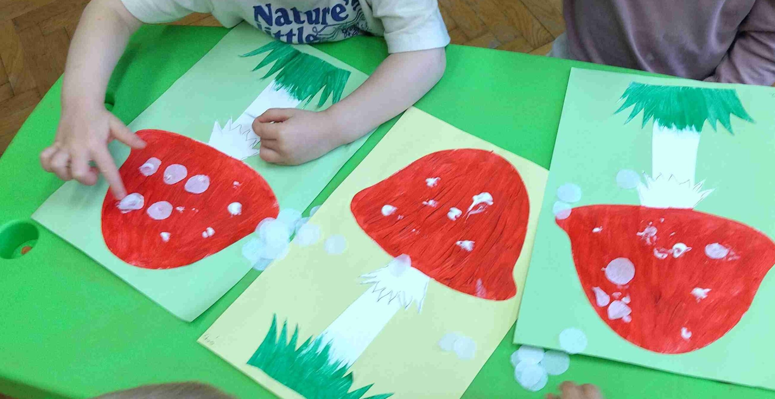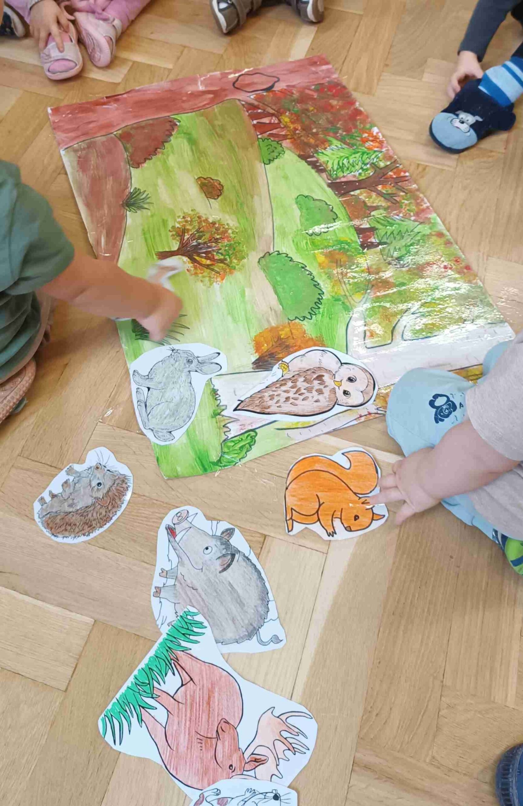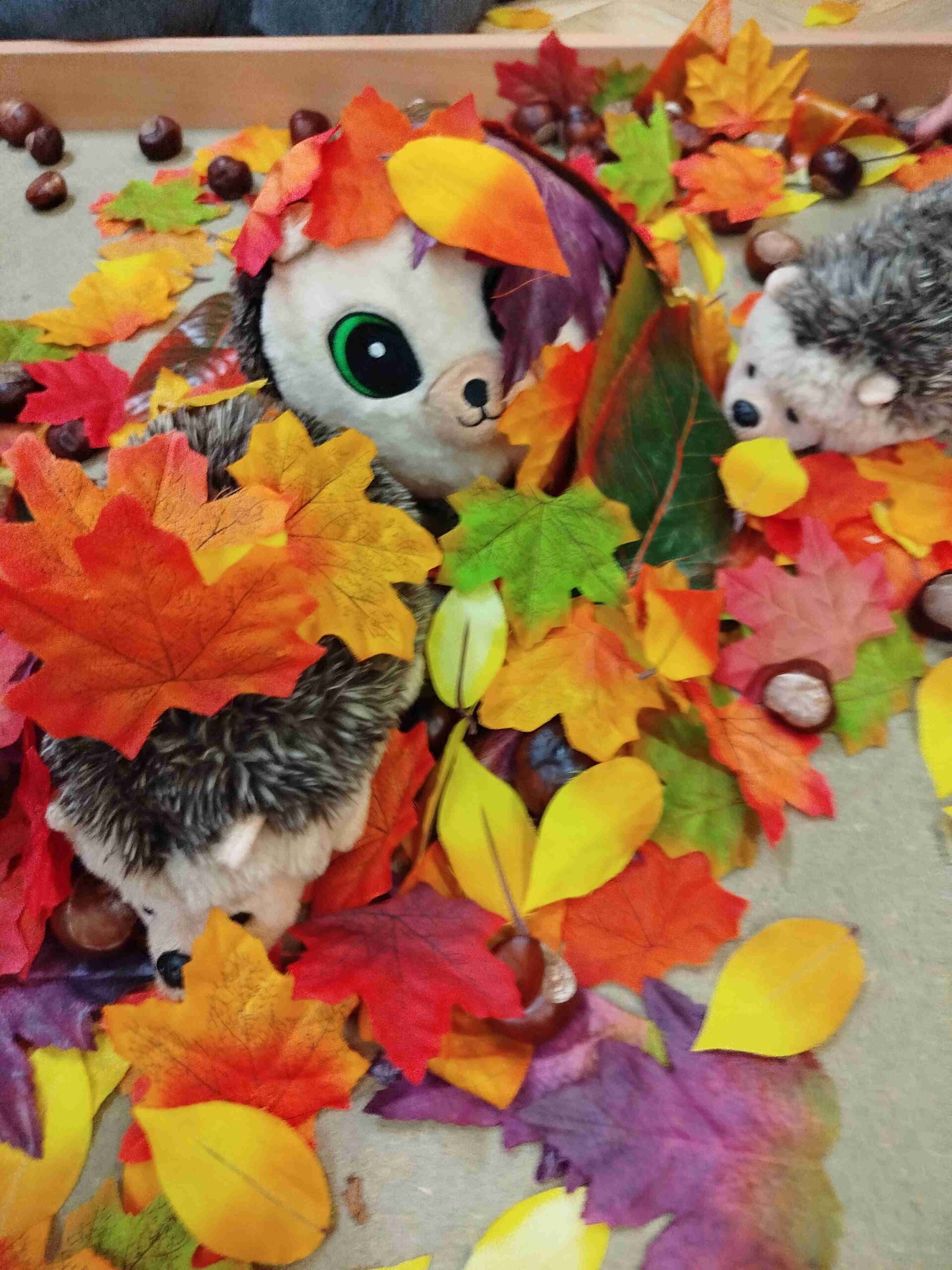 Październik upłynął pod znakiem jesiennych barw i przyrodniczych odkryć. Dzieci obserwowały zmiany zachodzące w przyrodzie – spadające liście, kasztany, żołędzie i kolorowe drzewa. Wspólnie tworzyliśmy jesienne prace plastyczne z wykorzystaniem naturalnych materiałów: liści i kasztanów.