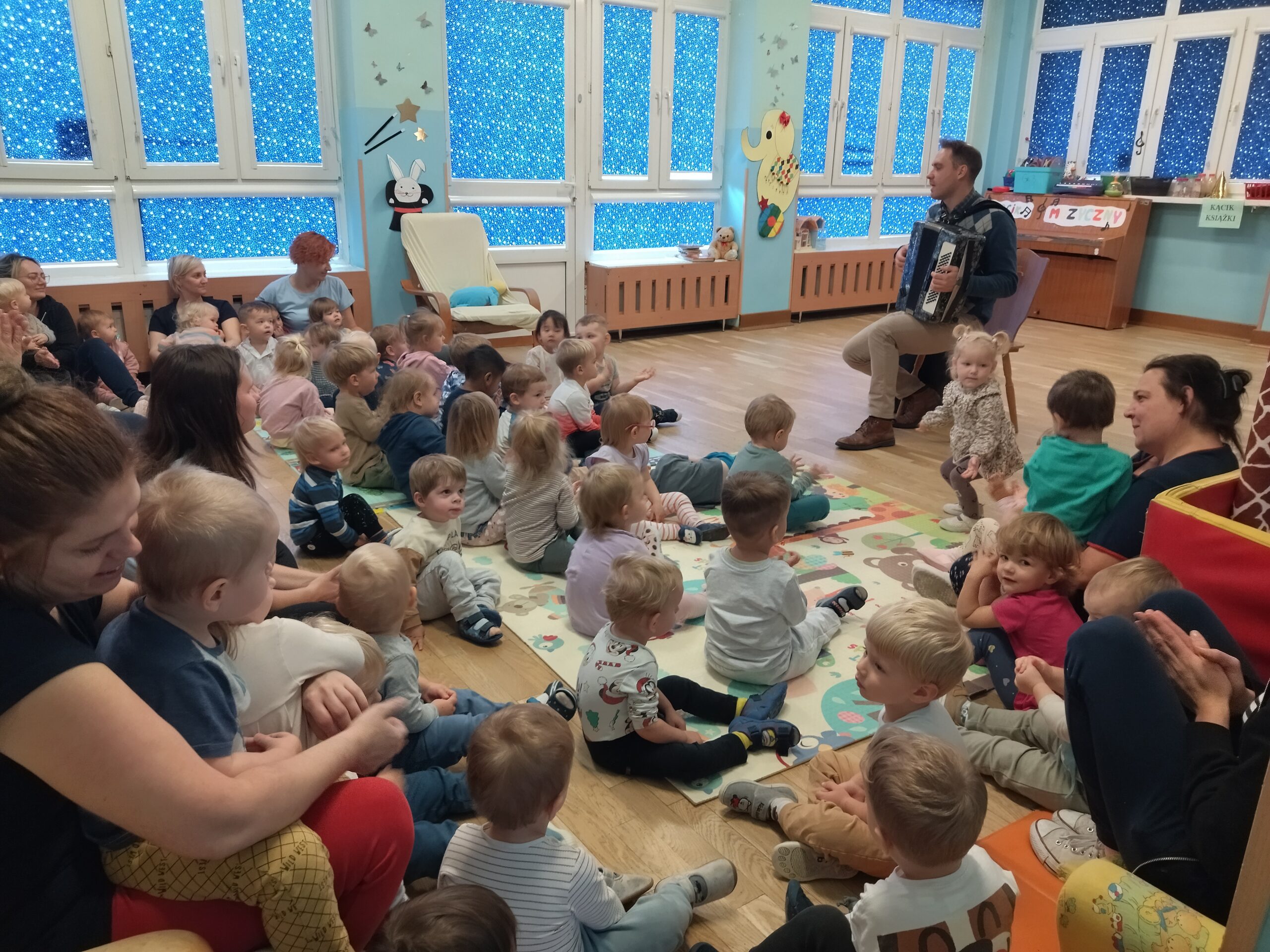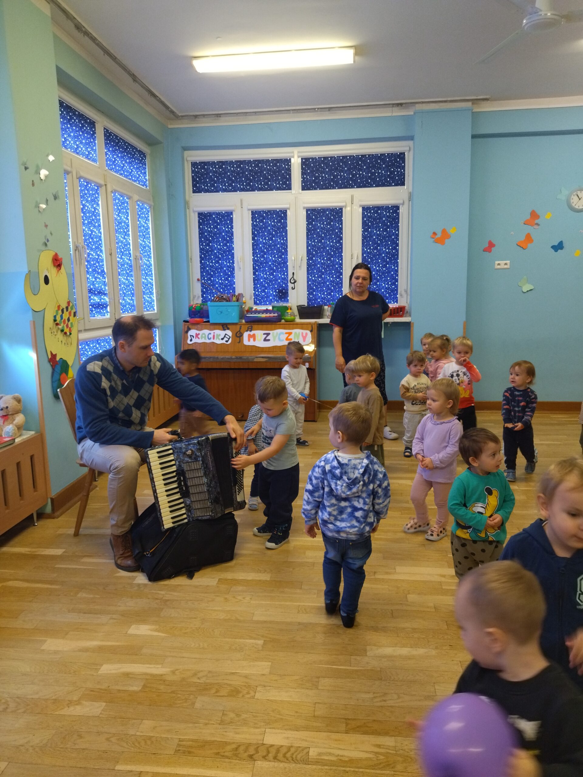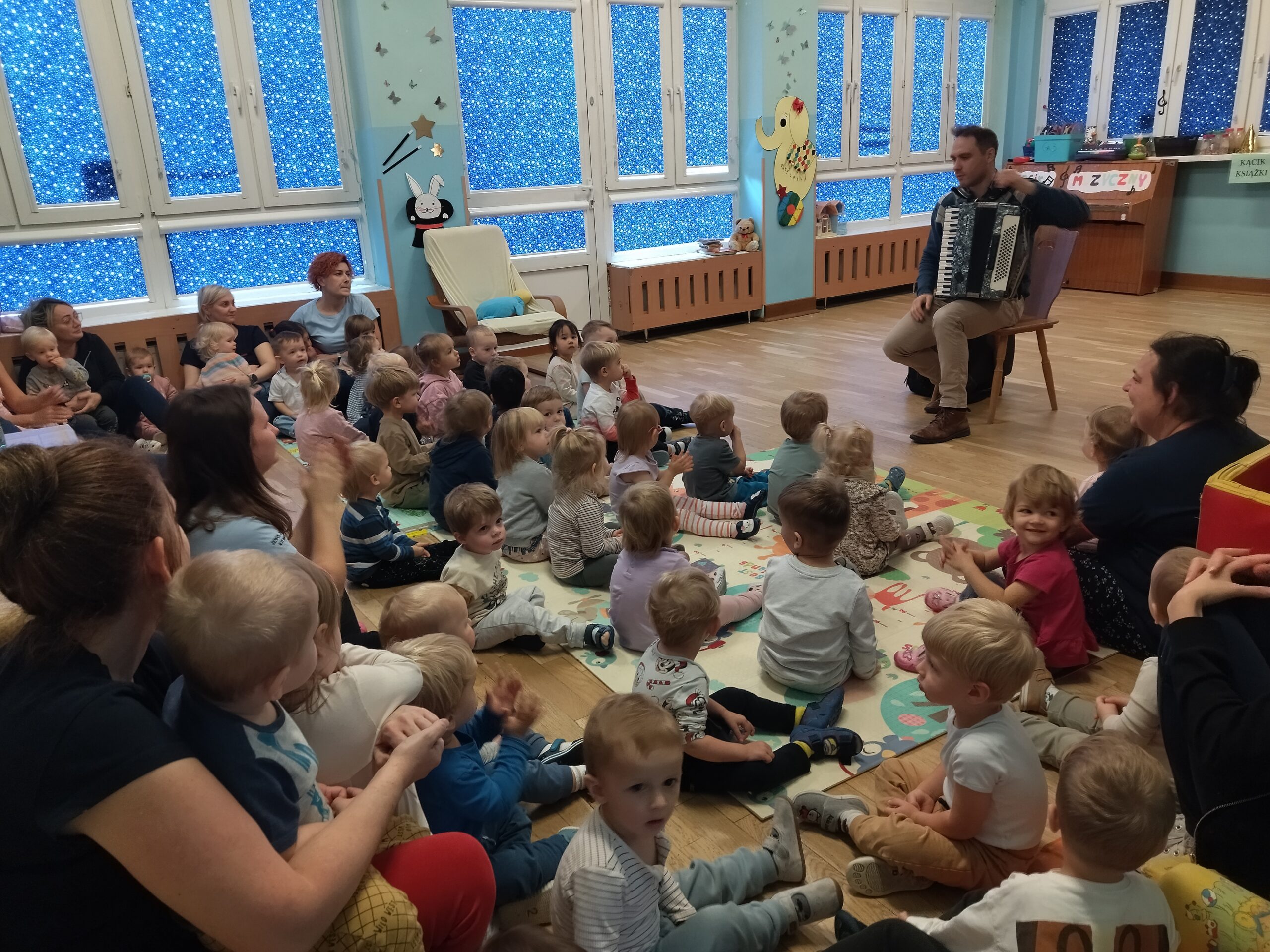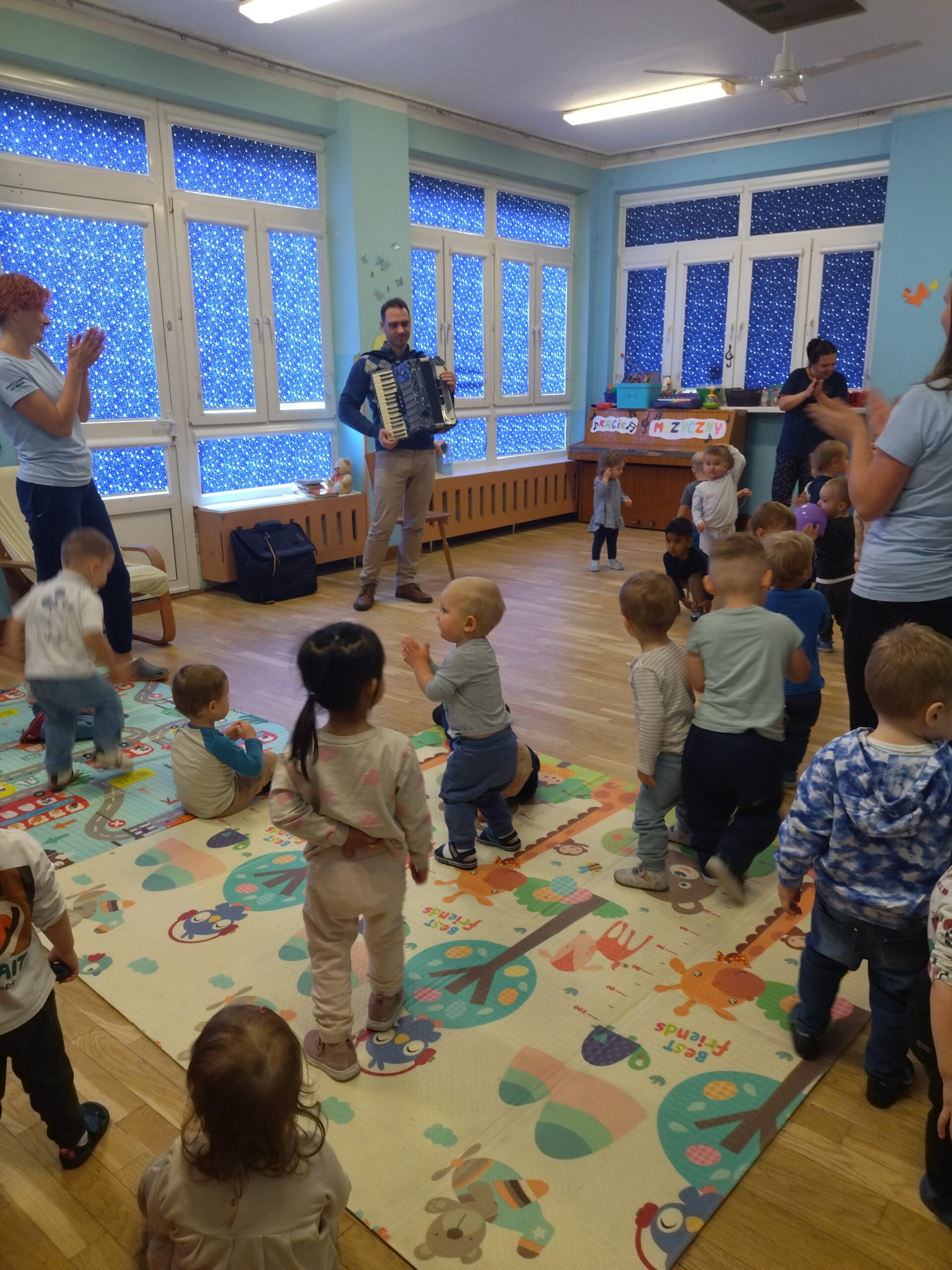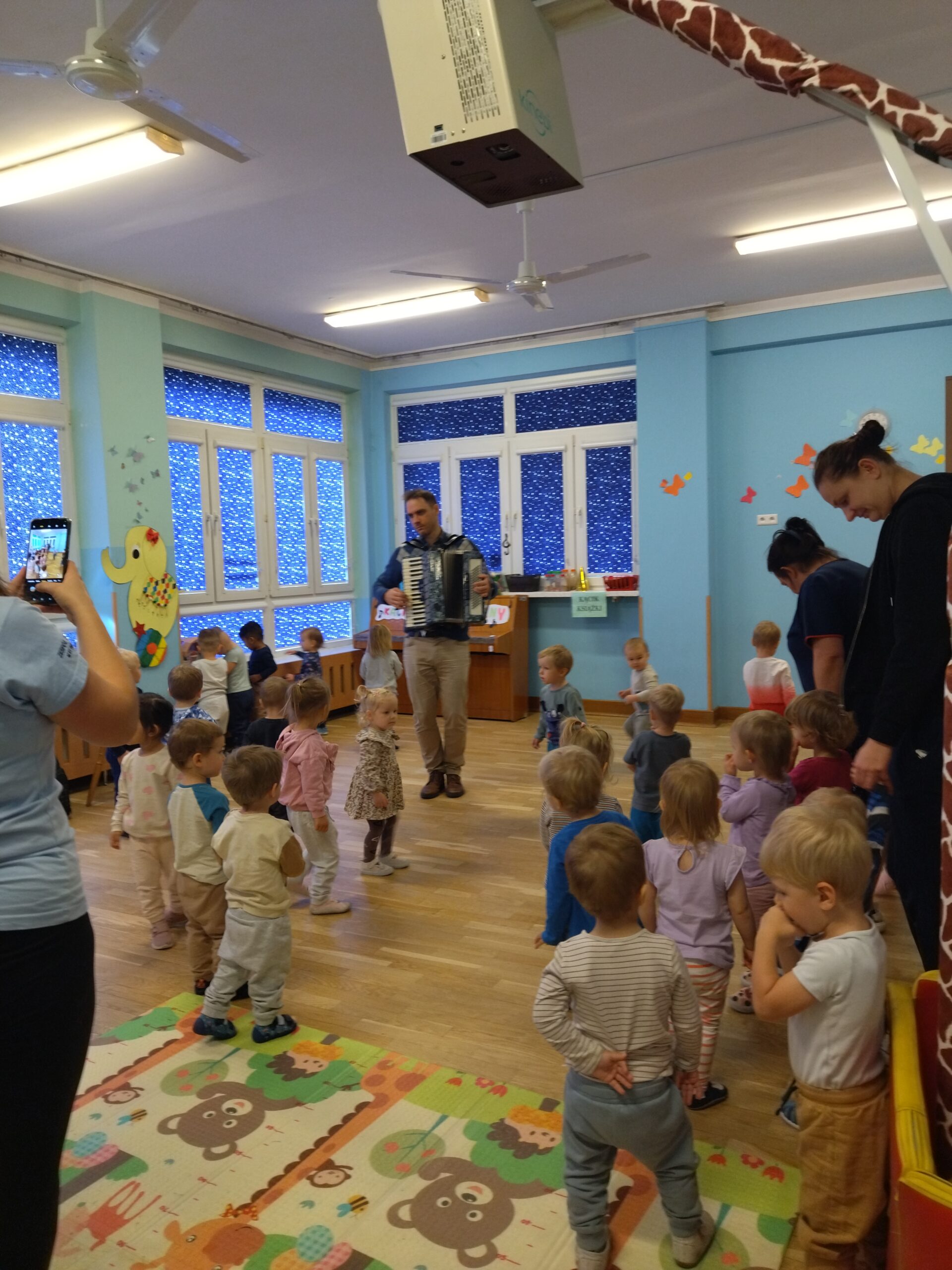 Dzieci z wszystkich grup świetnie się bawiły podczas zajęć muzycznych z wykorzystaniem akordeonu, prowadzonych przez profesjonalnego muzyka.