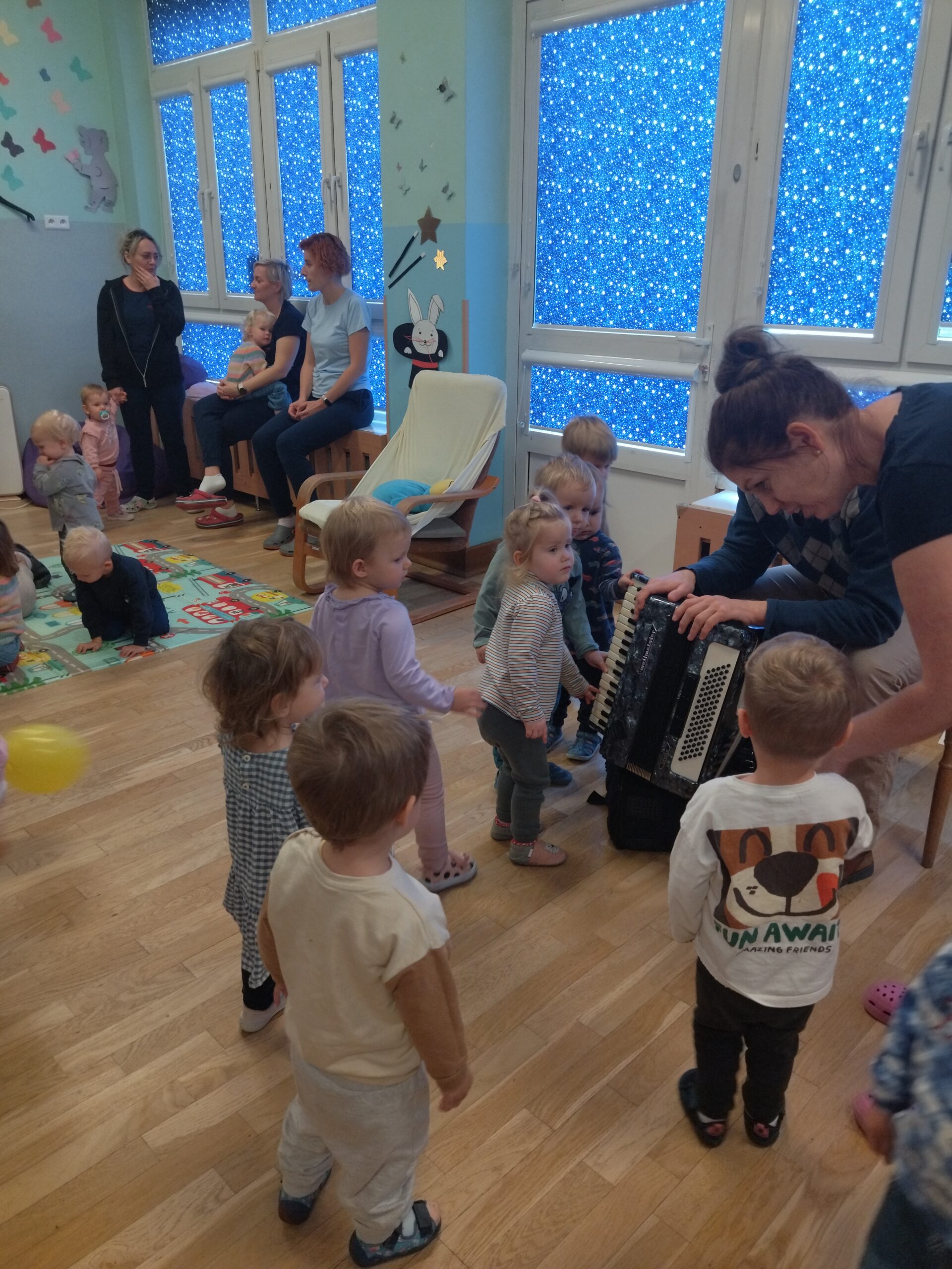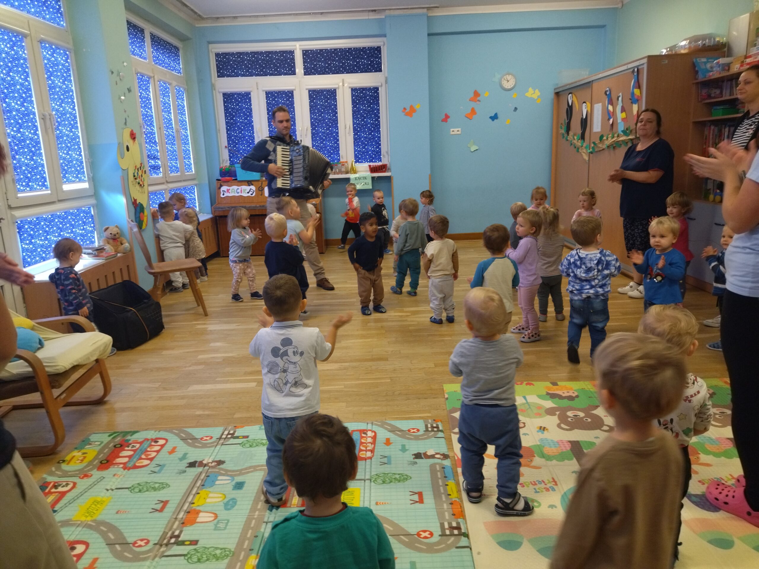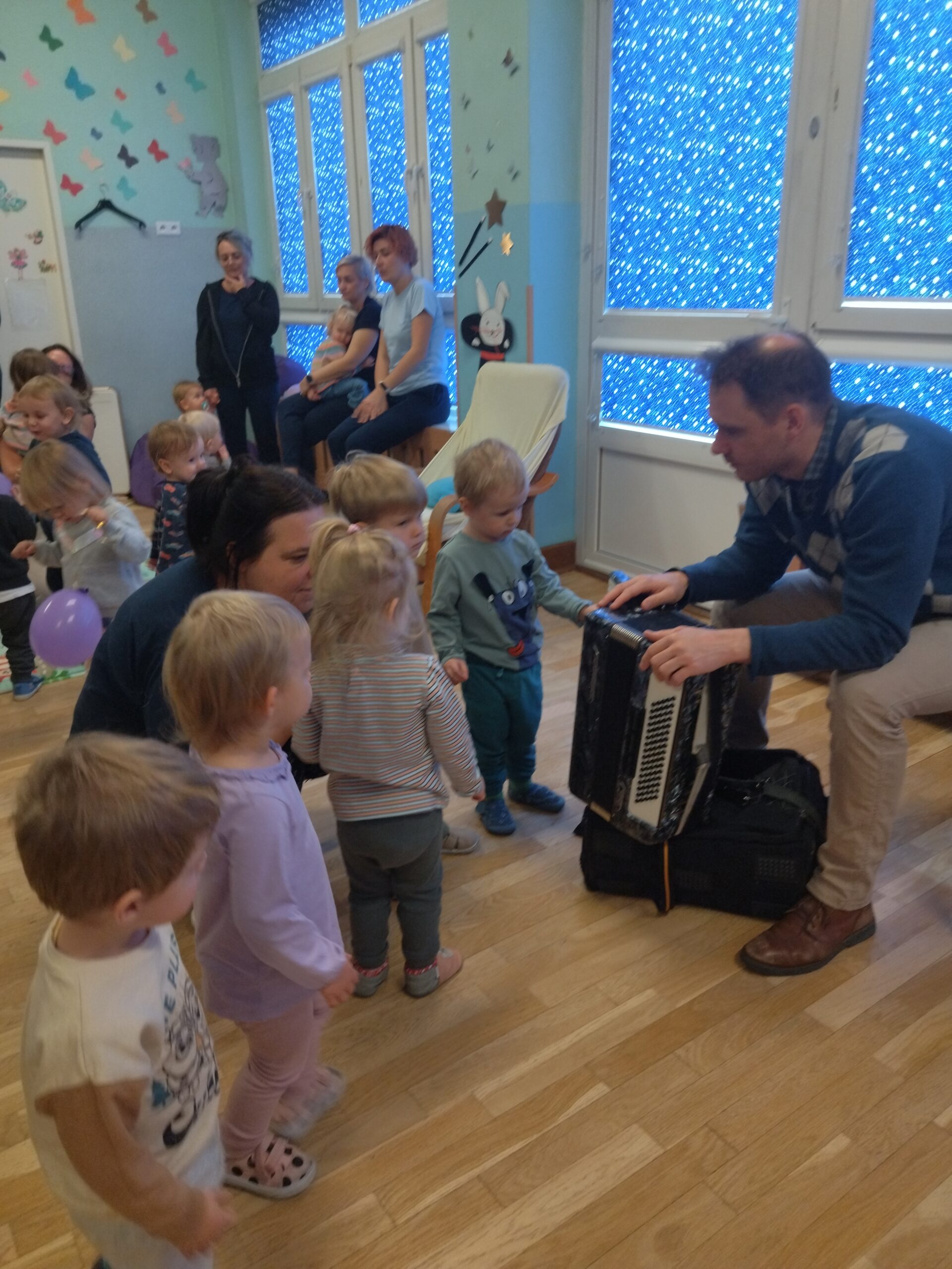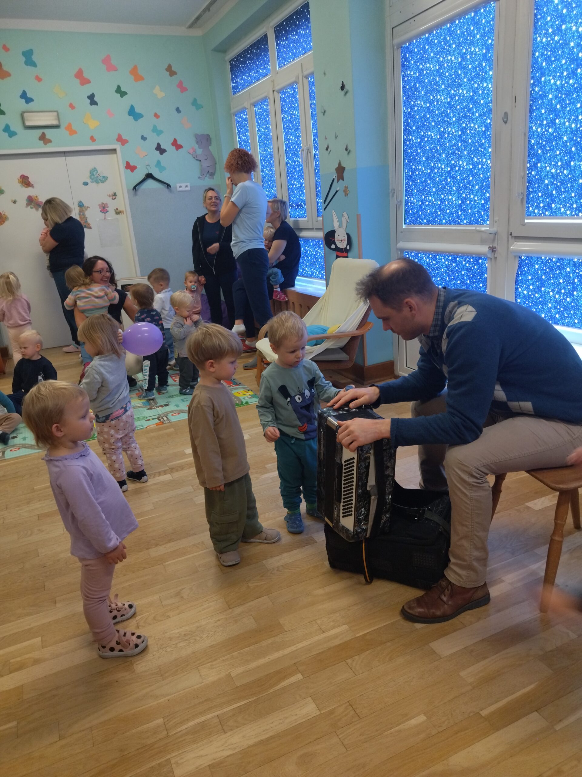 Dzieci z wszystkich grup świetnie się bawiły podczas zajęć muzycznych z wykorzystaniem akordeonu, prowadzonych przez profesjonalnego muzyka.