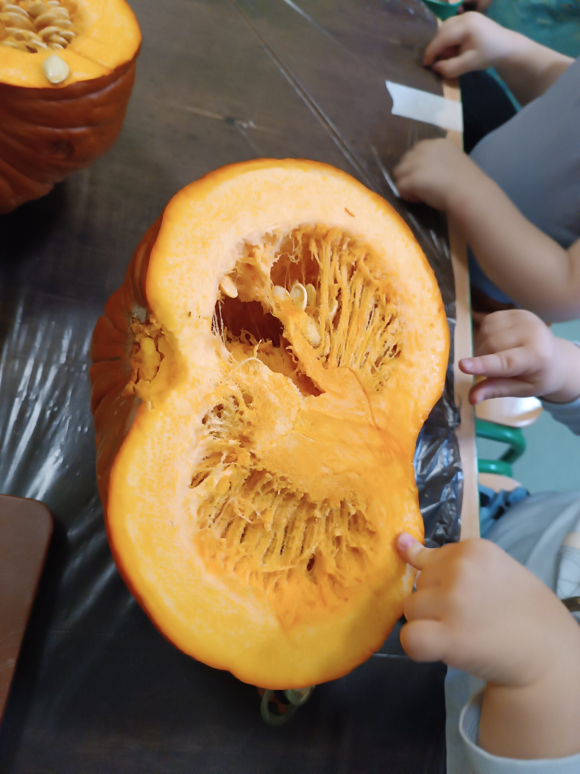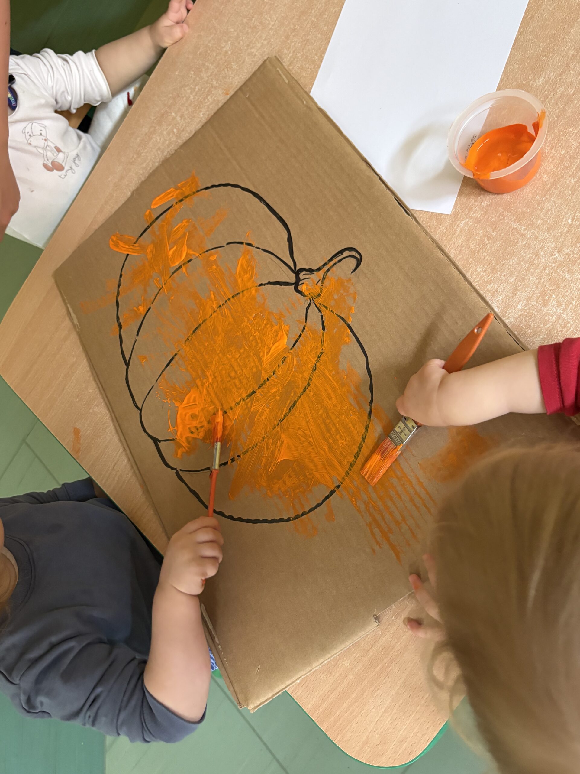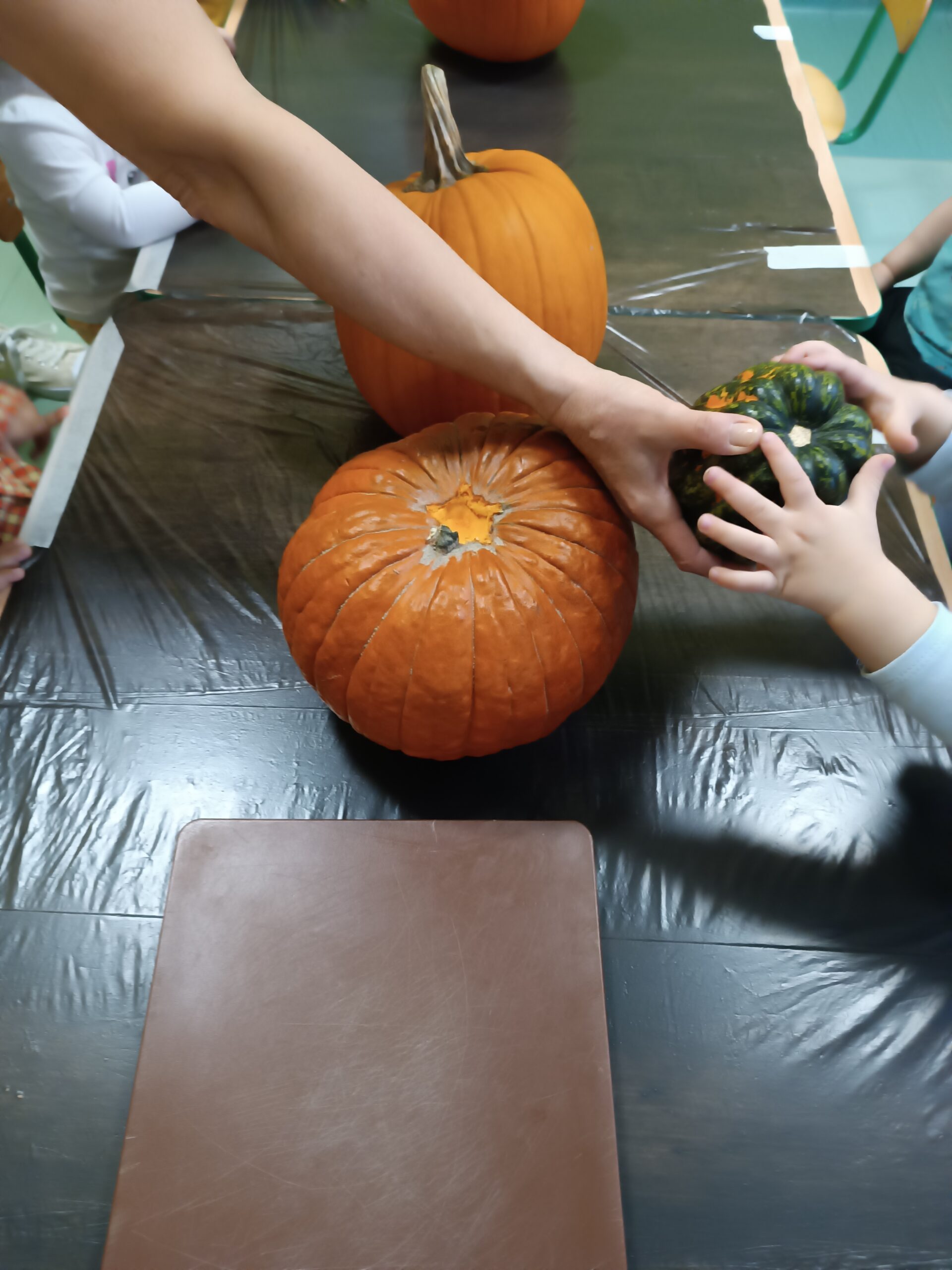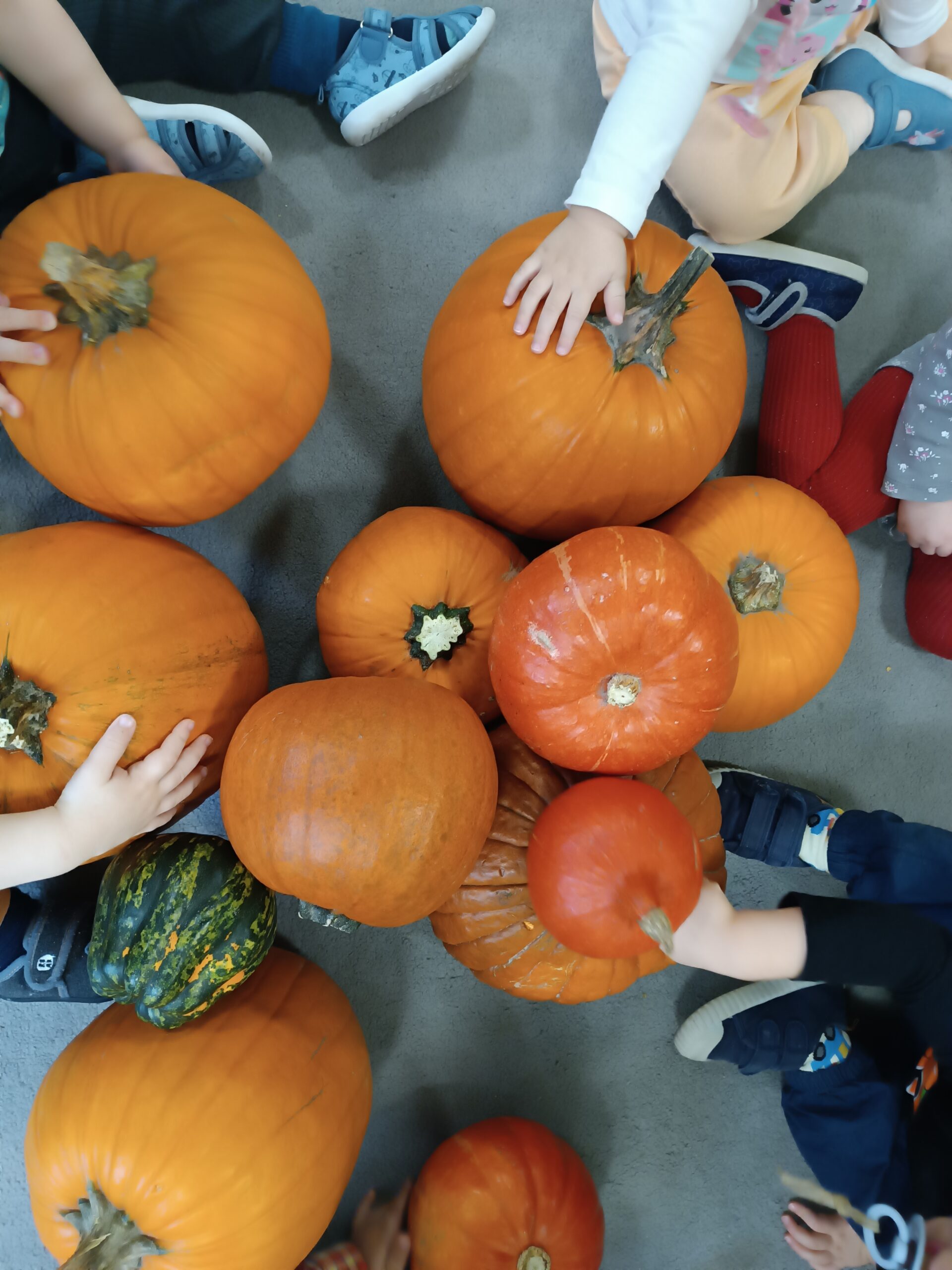 Miesiąc październik jest miesiącem już po zakończonej adaptacji-dzieci już lepiej się czują w naszej żłobkowej rodzinie,a na ich buziach widać uśmiech.Wspólnie odkrywają uroki jesieni,obserwują jakie kolory liści są na drzewach,jak zmienia się nasz żłobkowy wygląd ogródka.Bawią się w liściach. Wspólnie świętowaliśmy Dzień Chleba, mali piekarze z zaangażowaniem poznawali jak powstaje chleb. Próbowali jego smak i dotykali go rączkami. A także w naszym żłobku dzieci świętowały Dzień Dyni! Było pomarańczowo, radośnie i jesiennie- dzieci brały udział w dyniowych zabawach, tańcach i pracach plastycznych.