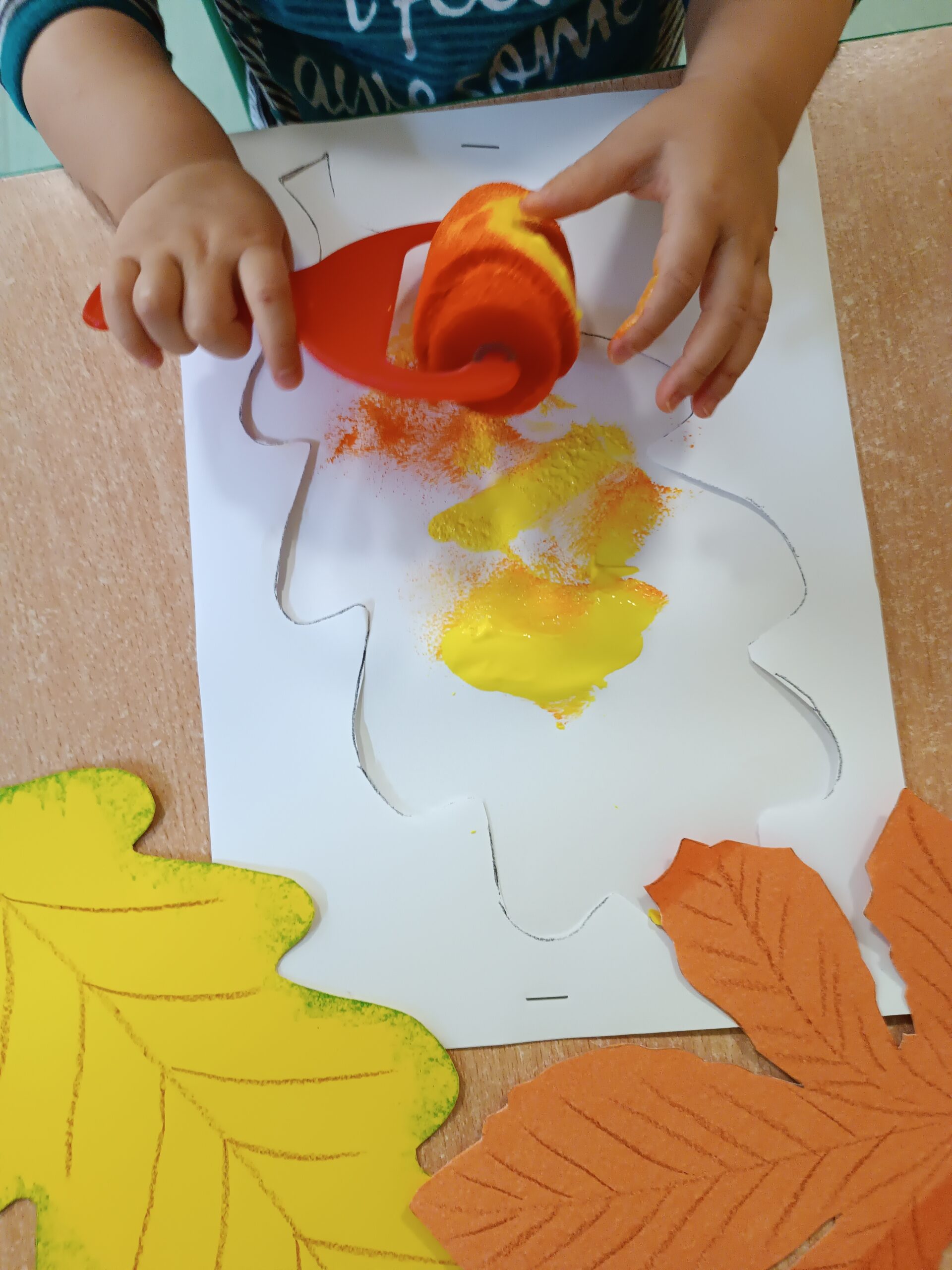 Miesiąc październik jest miesiącem już po zakończonej adaptacji-dzieci już lepiej się czują w naszej żłobkowej rodzinie,a na ich buziach widać uśmiech.Wspólnie odkrywają uroki jesieni,obserwują jakie kolory liści są na drzewach,jak zmienia się nasz żłobkowy wygląd ogródka.Bawią się w liściach. Wspólnie świętowaliśmy Dzień Chleba,mali piekarze z zaangażowaniem poznawali jak powstaje chleb.Próbowali jego smak i dotykali go rączkami.