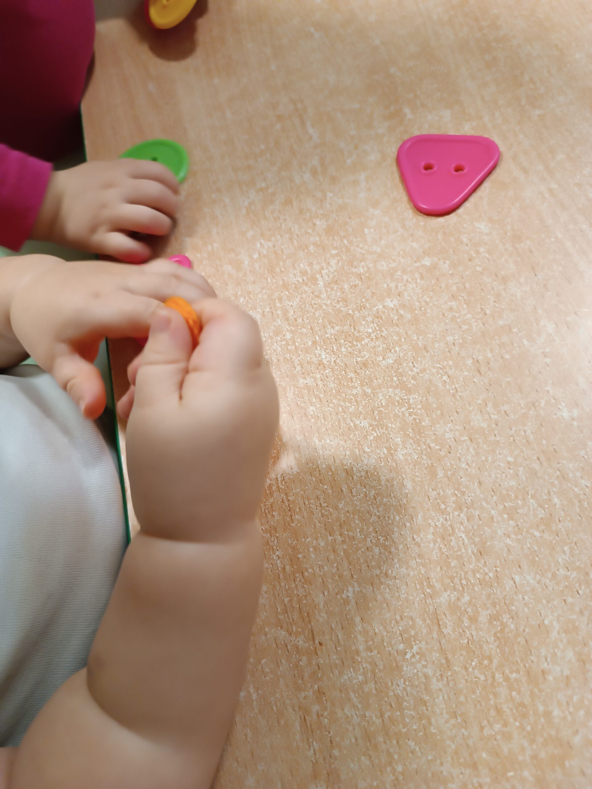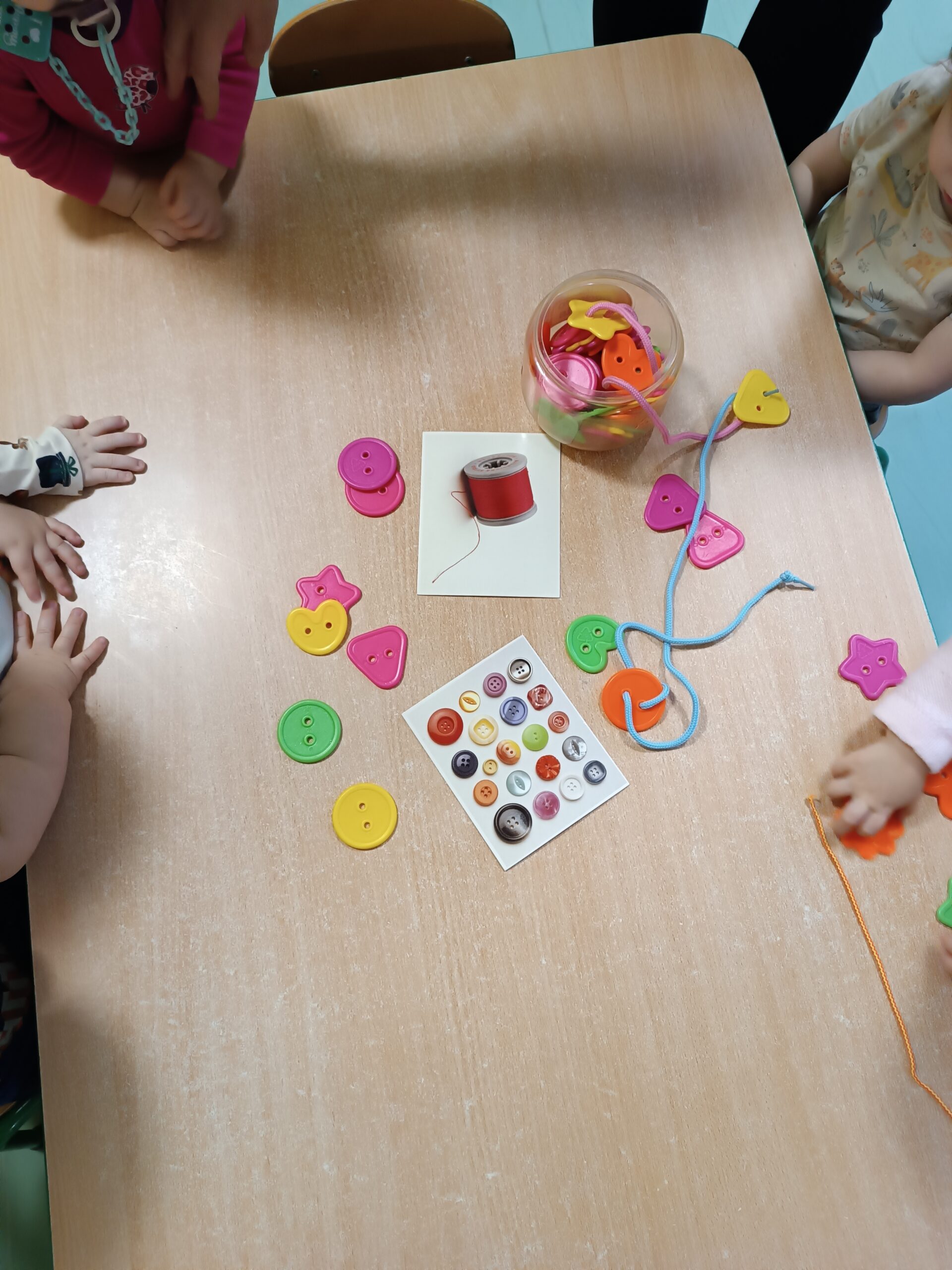 Mały guzik, wielka zabawa- Dzień guzika w żłobku. Kolorowe guziki stały się inspiracją do zabaw sensorycznych i twórczych aktywności. Dzieci rozwijały motorykę małą, wyobraźnie i świetnie się bawiły.