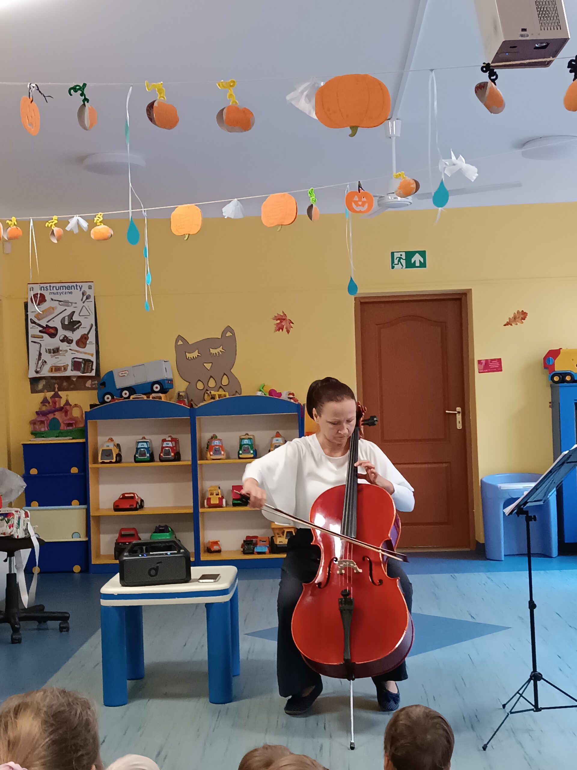 W listopadzie w naszym żłobku odbył się wyjątkowy koncert muzyczny. Odwiedziła nas agencja muzyczna, która zaprezentowała dzieciom nowy instrument- wiolonczelę. Dzieci mogły nie tylko posłuchać piękno muzyki, ale także zobaczyć, jak wygląda i jak się na nim gra. Spotkanie było pełne radości, nowych doświadczeń i muzyki, która pozytywnie wpływa na funkcjonowanie dzieci.