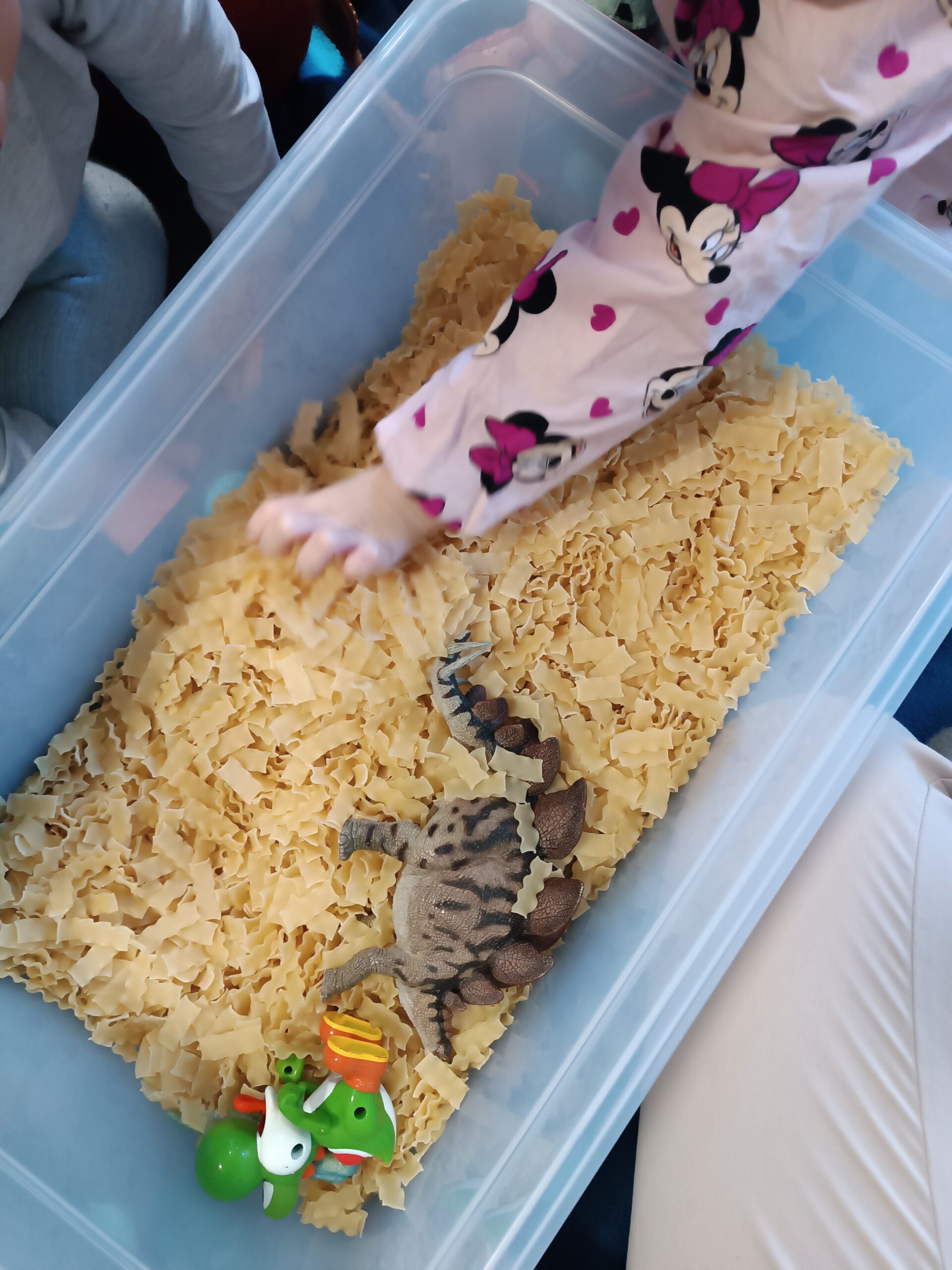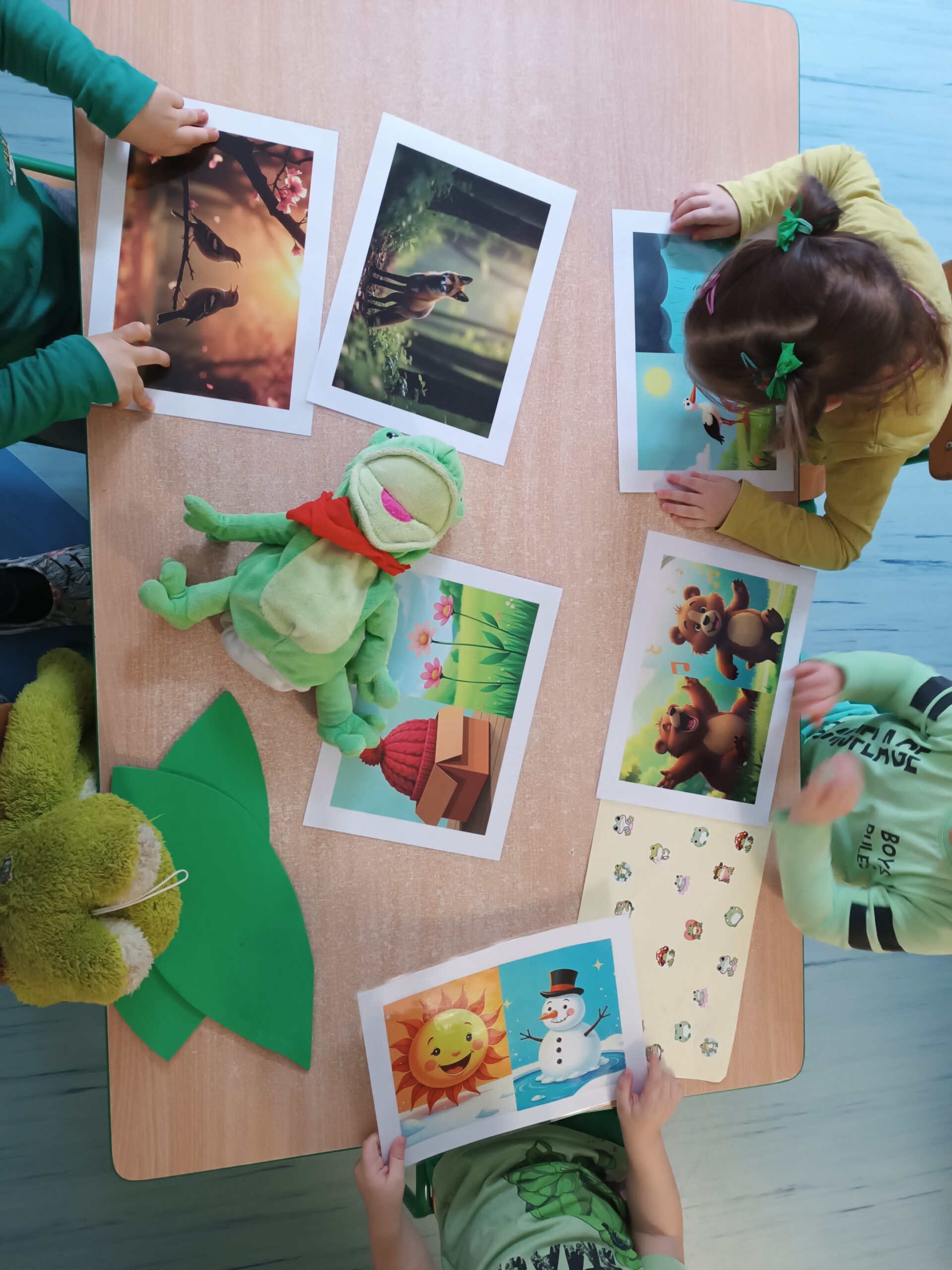 Miesiąc marzec przybliża nas co raz bardziej do nowej pory roku wiosny. Dzieci podczas spacerów obserwują pierwsze jej oznaki – pojawiające się pączki na drzewach w przyrodzie, oglądają wiosenne ilustracje i wykonują prace plastyczne inspirowane budzącą się naturą. To piękny czas odkrywania świata i rozwijania dziecięcej ciekawości. W naszym żłobku obchodziliśmy Dzień Dinozaura. Dzieci oglądały ilustracje dinozaurów oraz brały udział w zajęciach sensorycznych związanych z tą tematyką. Takie aktywności rozwijają ciekawość, zmysły oraz małą motorykę. A także miały miejsce warsztaty świąteczne, podczas których dzieci tworzyły proste ozdoby i poznawały świąteczną atmosferę. Dzień Żaby w żłobku to wesołe zajęcia pełne zabawy, ruchu i zielonych prac plastycznych inspirowanych żabkami.