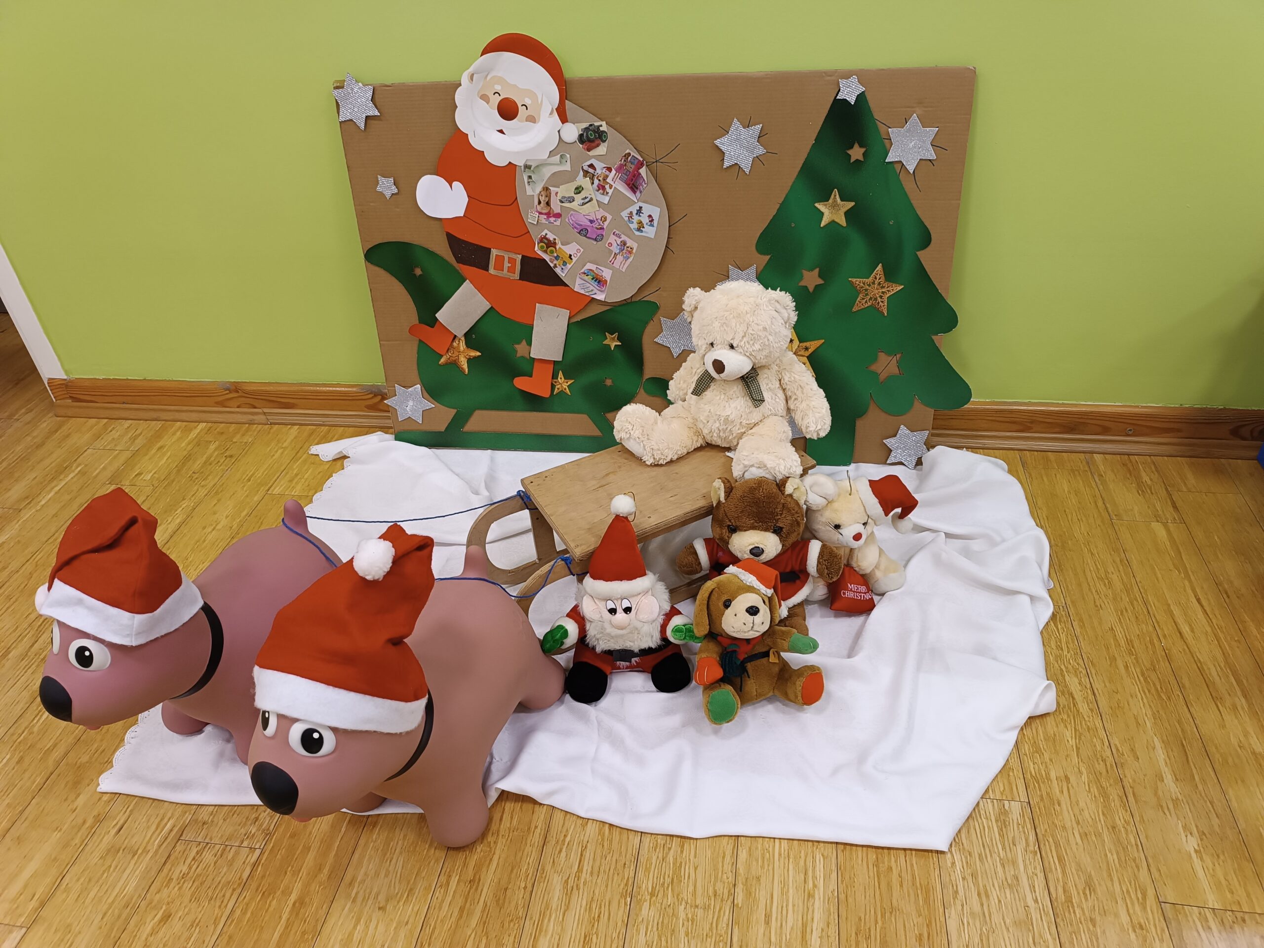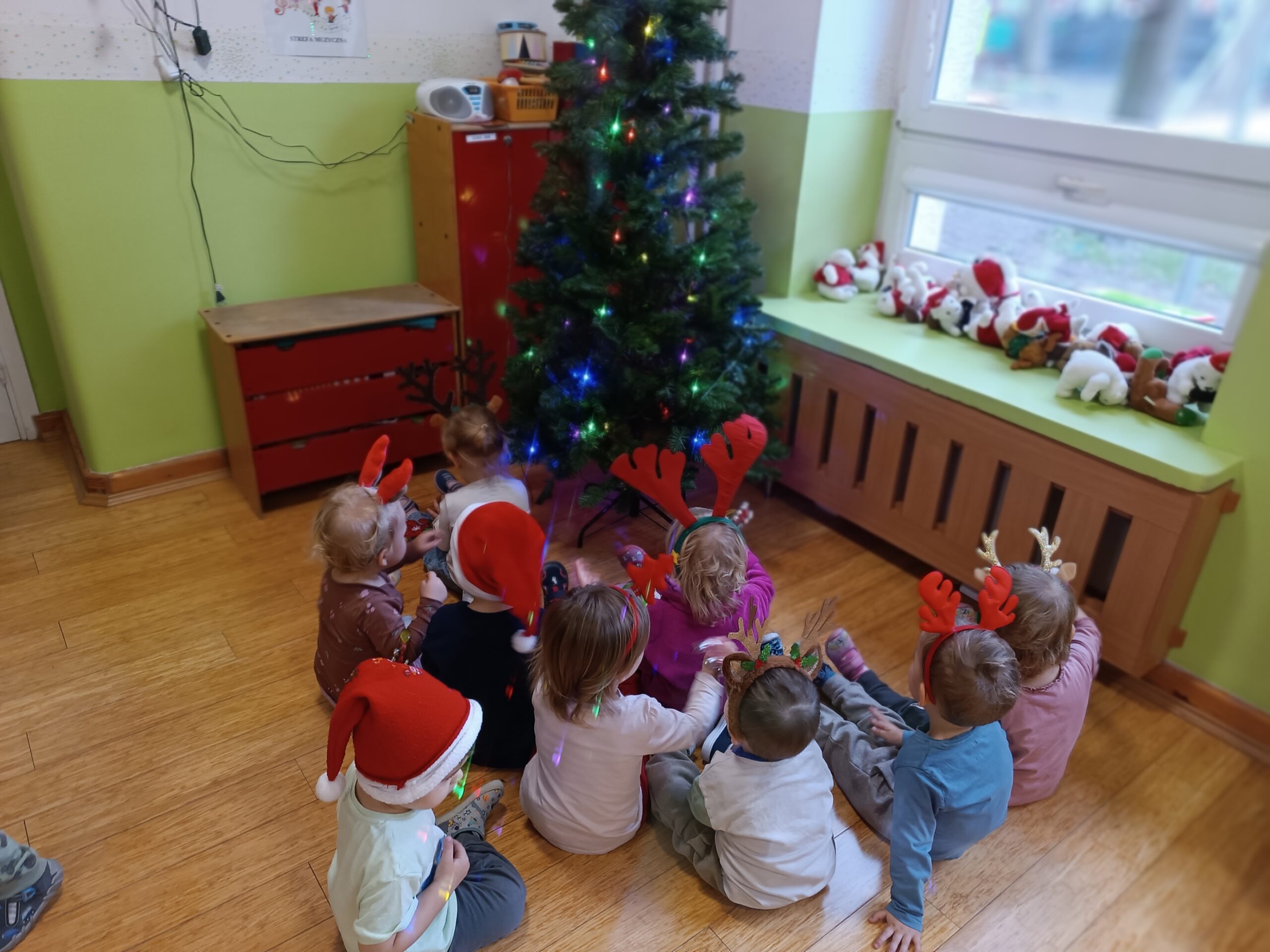 Grudzień upływa nam w świątecznej atmosferze. Dzieci z dużym zaangażowaniem uczestniczyły w przygotowaniach do nadchodzących świąt. Wspólnie ozdabialiśmy choinkę oraz tworzyliśmy świąteczne dekoracje. Grudzień to także czas wizyty Mikołaja-dzieci z zaciekawieniem obserwowały naszego gościa. Towarzyszyło temu wiele radości i uśmiechu.