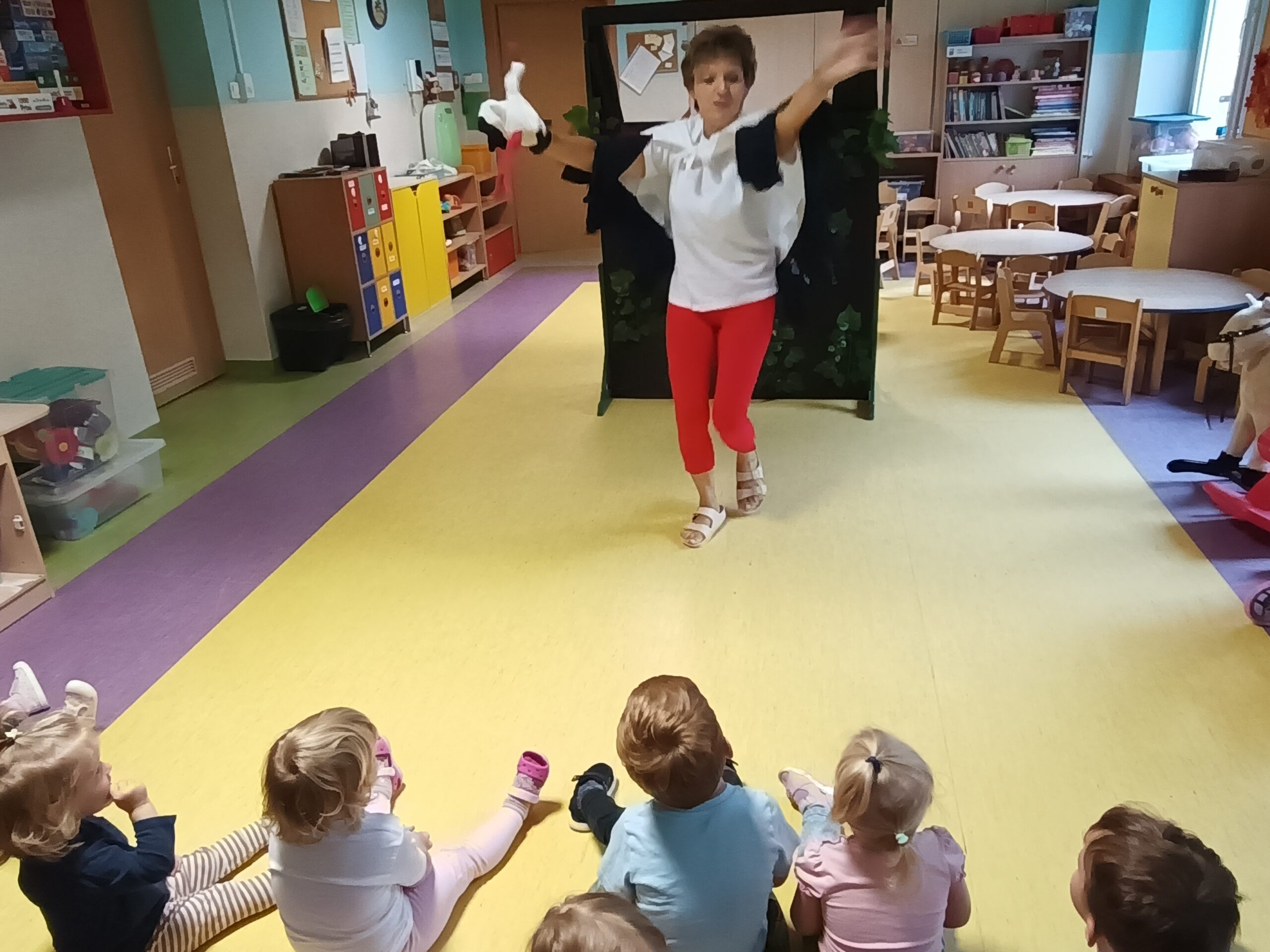- Panie opiekunki przygotowały dla dzieci przedstawienie o bocianie.