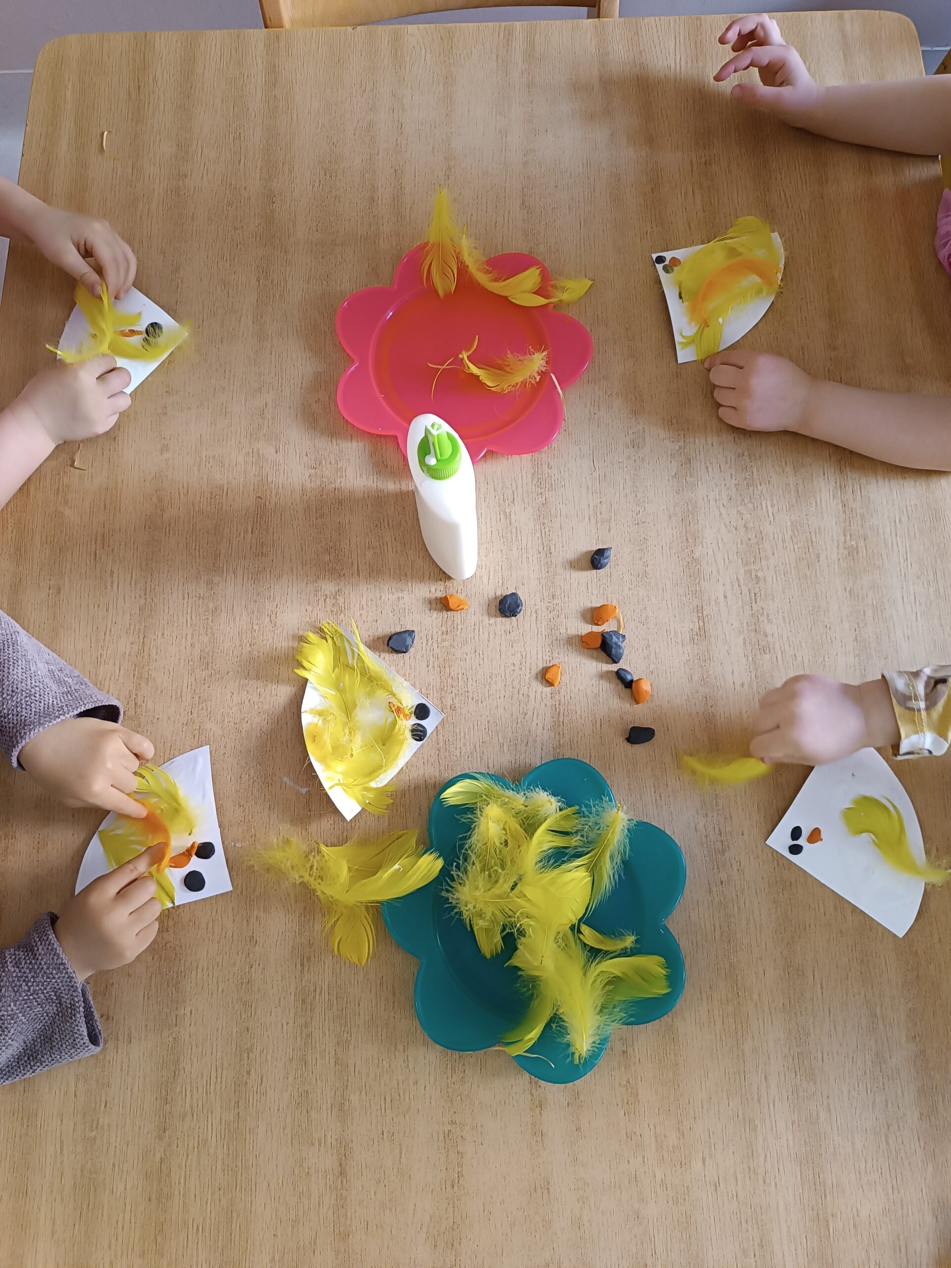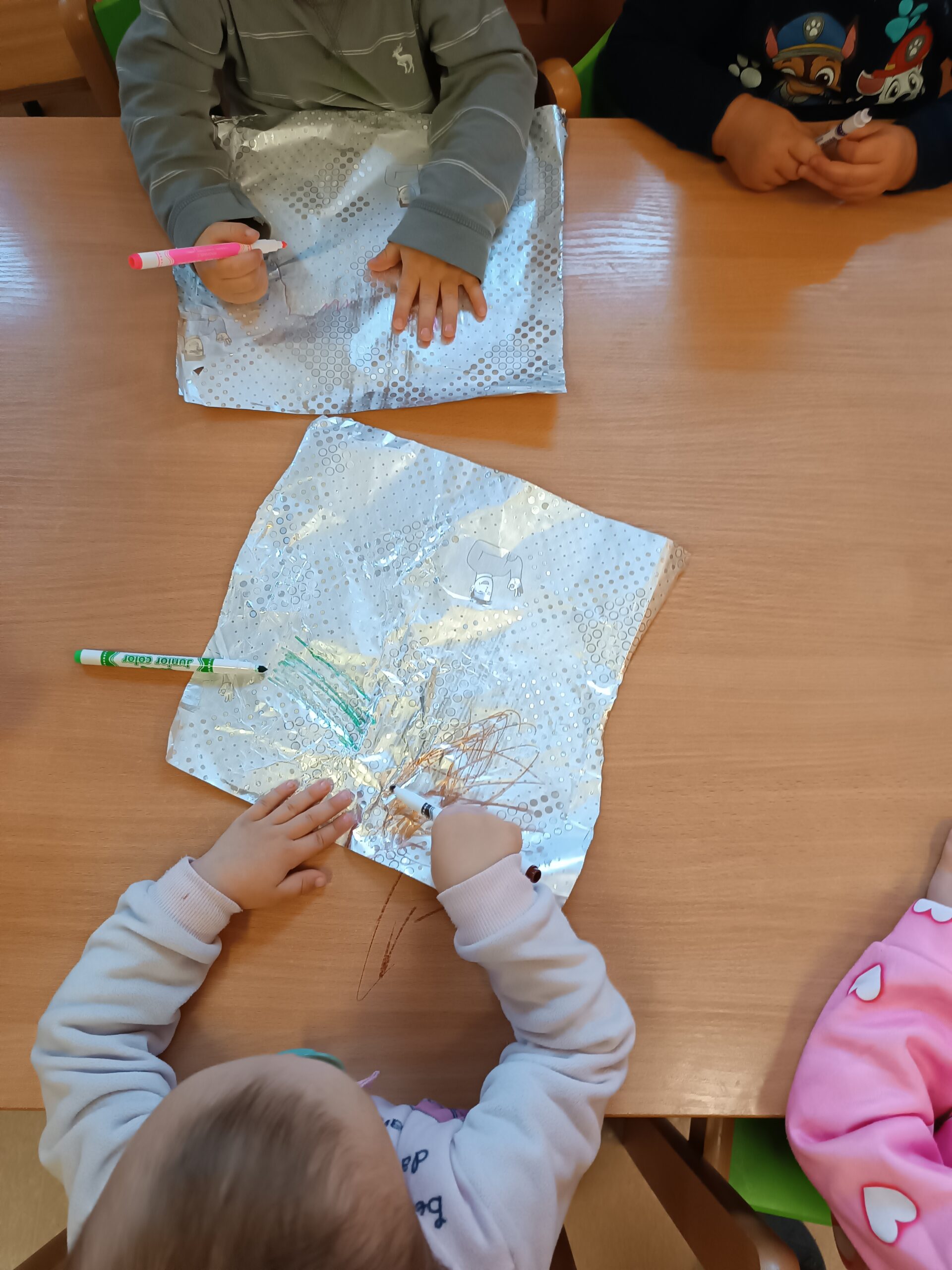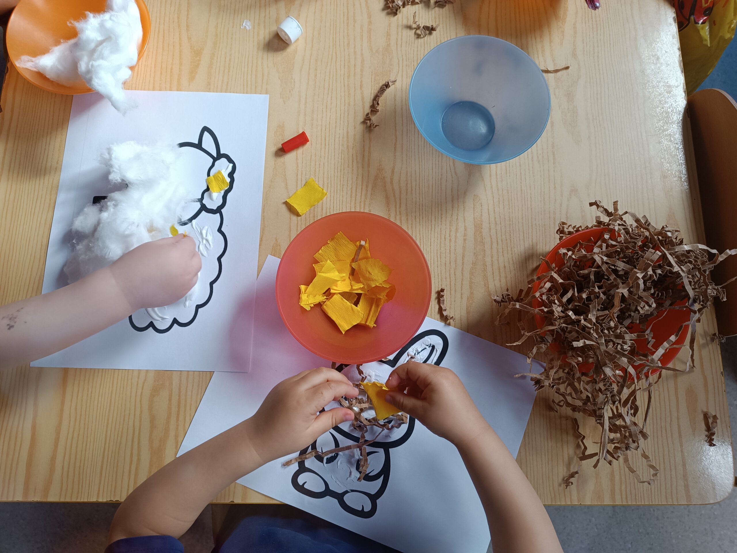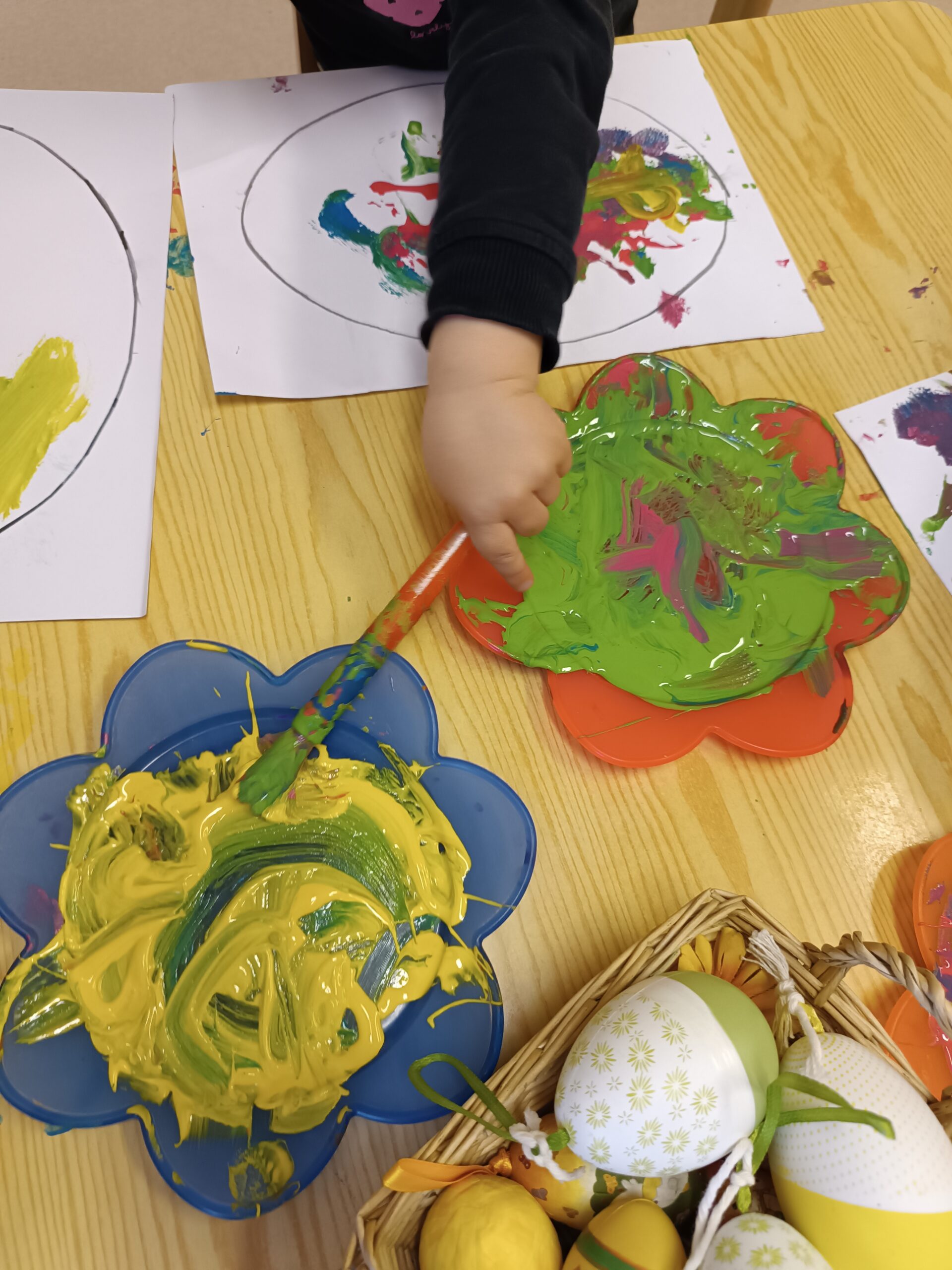 Dużą uwagę poświęcono zabawom sensorycznym, które stymulowały zmysły dzieci poprzez kontakt z różnymi fakturami, kolorami oraz materiałami.