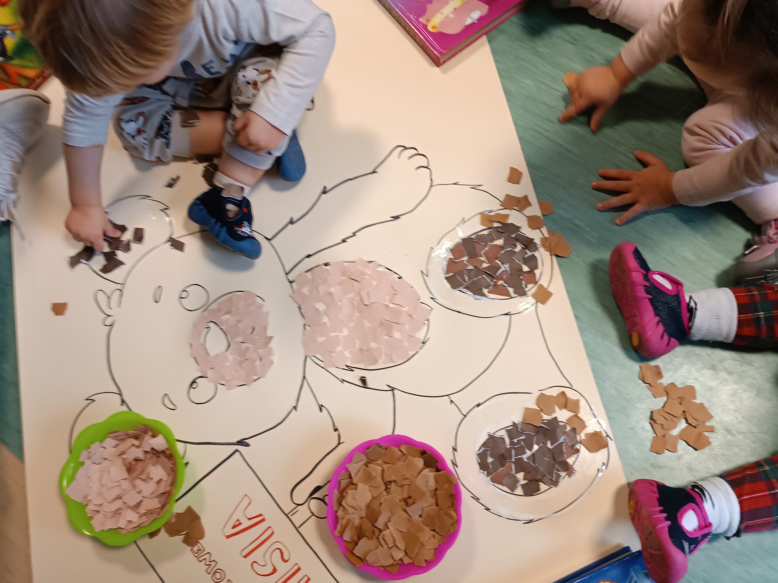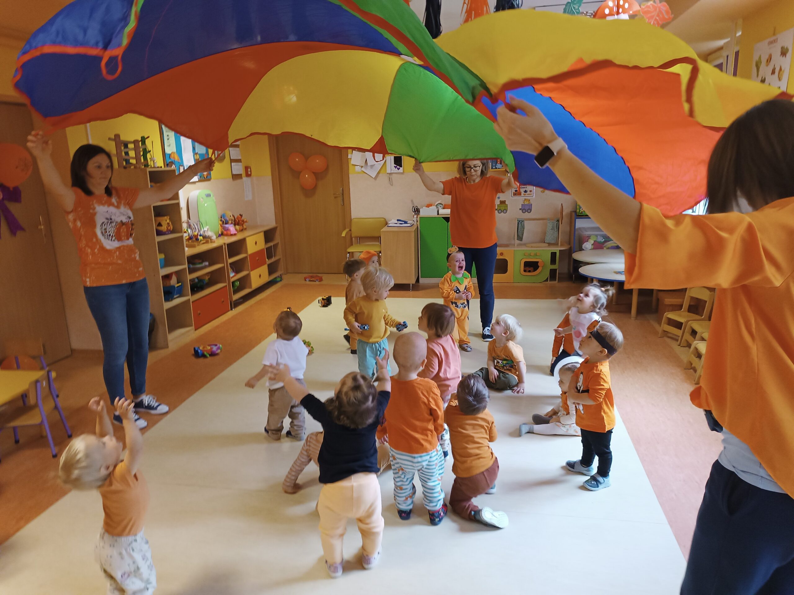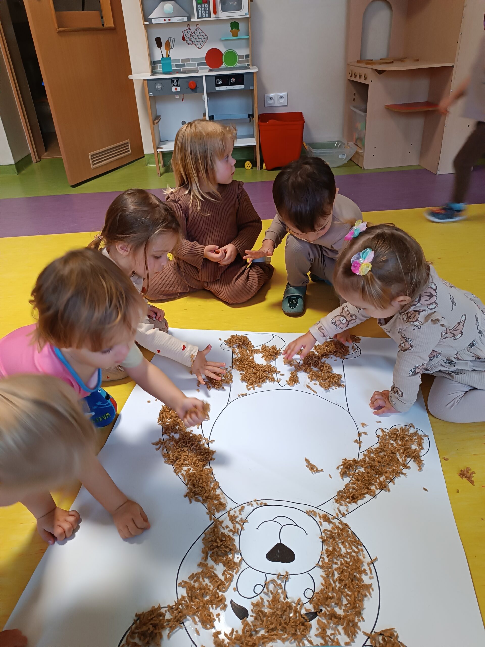 Miesiąc rozpoczęliśmy radosnym Balem Dyniowym, podczas którego dzieci świetnie się bawiły w jesiennej atmosferze, tańczyły i brały udział w tematycznych zabawach. Następnie świętowaliśmy Dzień Pluszowego Misia. Odwiedził nas wyjątkowy gość, duży pluszowy miś, który wywołał u maluchów mnóstwo uśmiechów. Dzieci wykonały także piękne wyklejanki związane z misiowym tematem. Pod koniec miesiąca odbyło się wystąpienie artystyczno-gimnastyczne, podczas którego maluchy próbowały naśladować oraz rozwijać swoje umiejętności ruchowe i muzyczne.