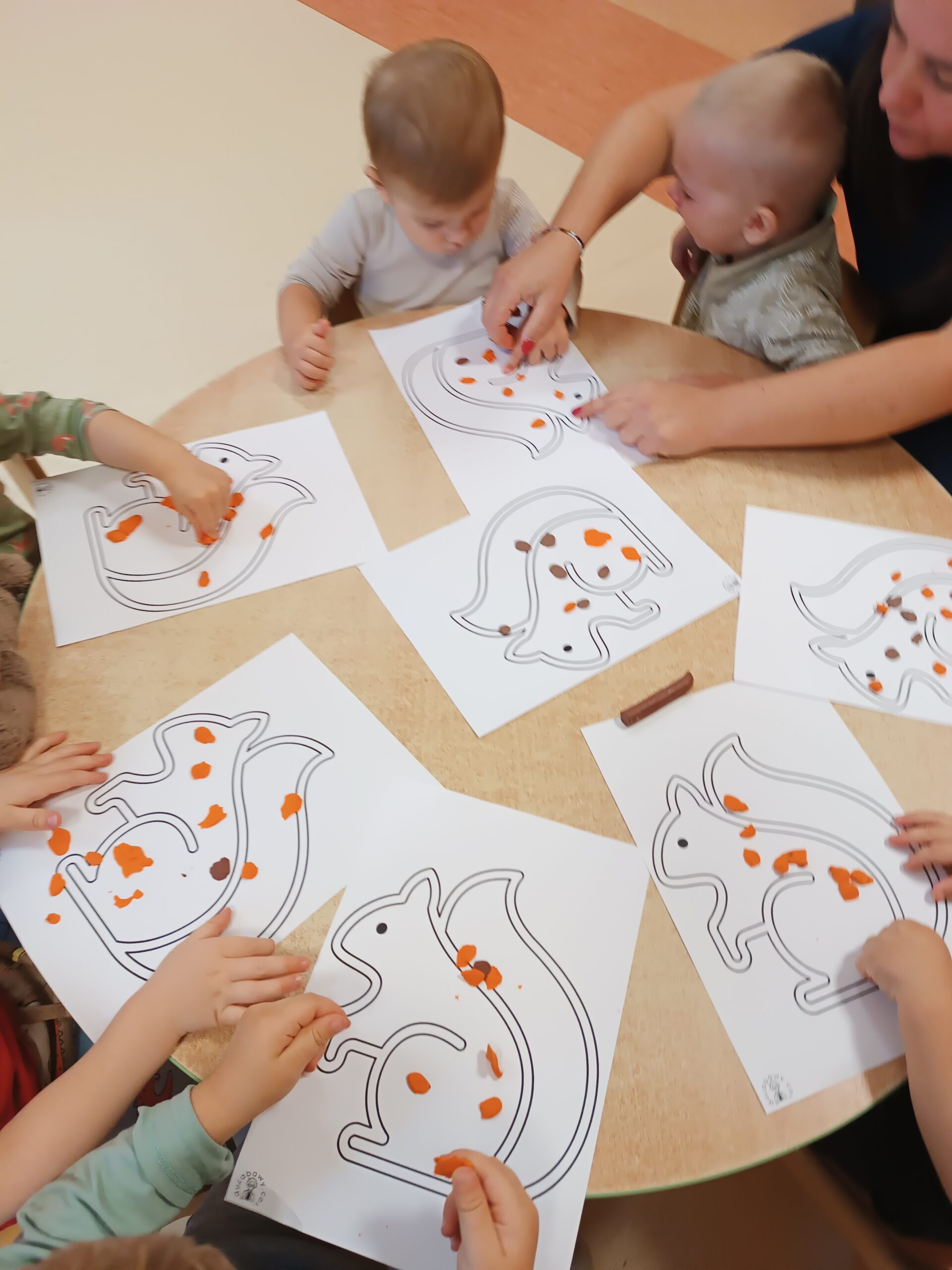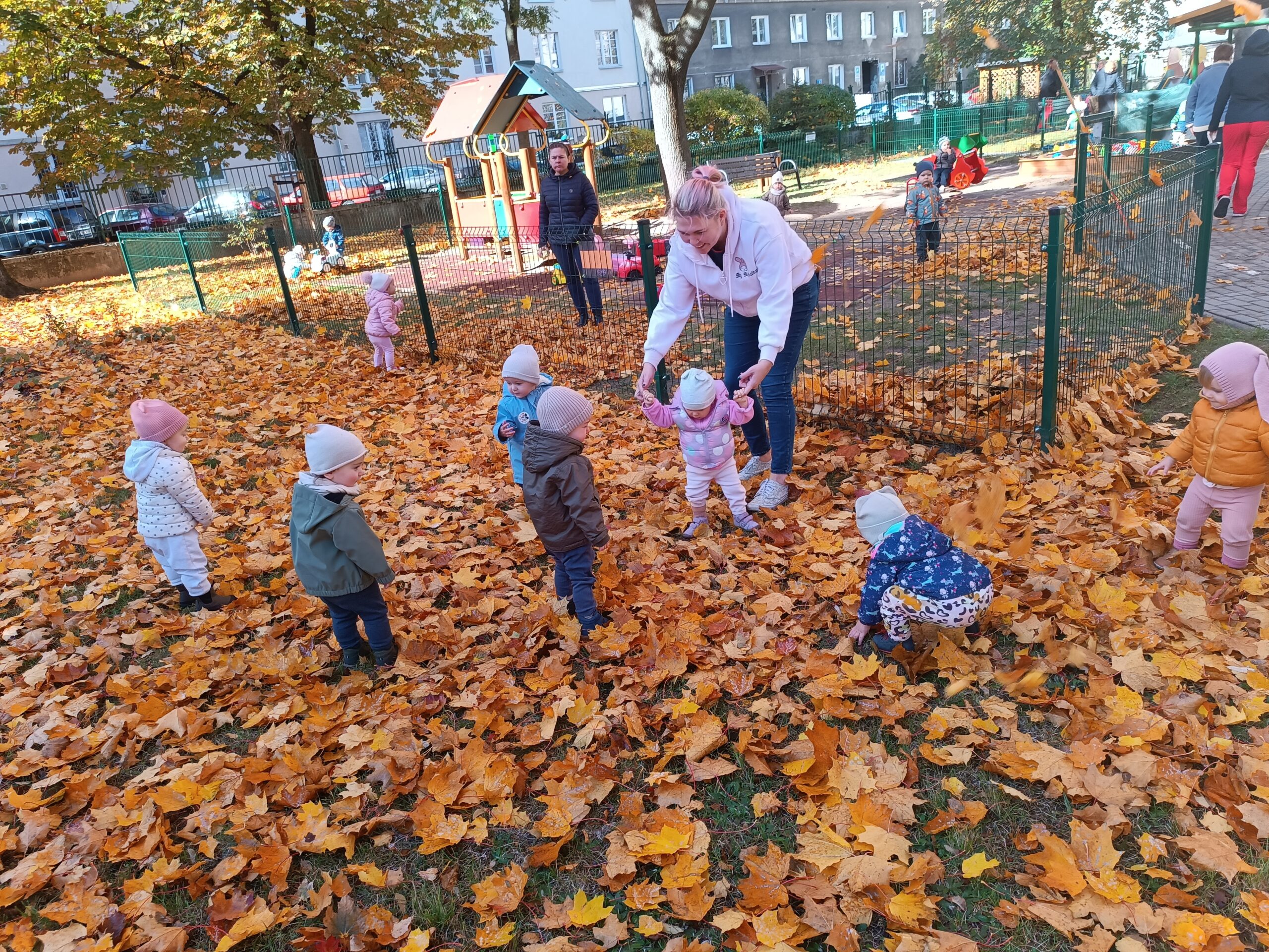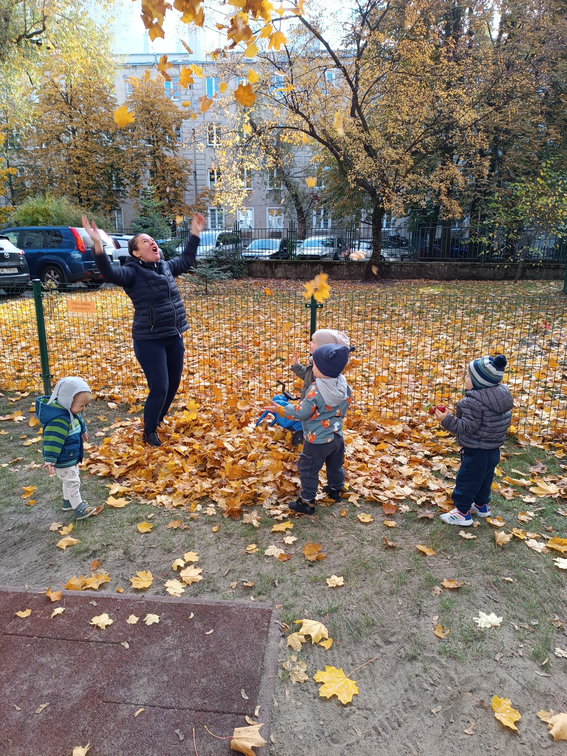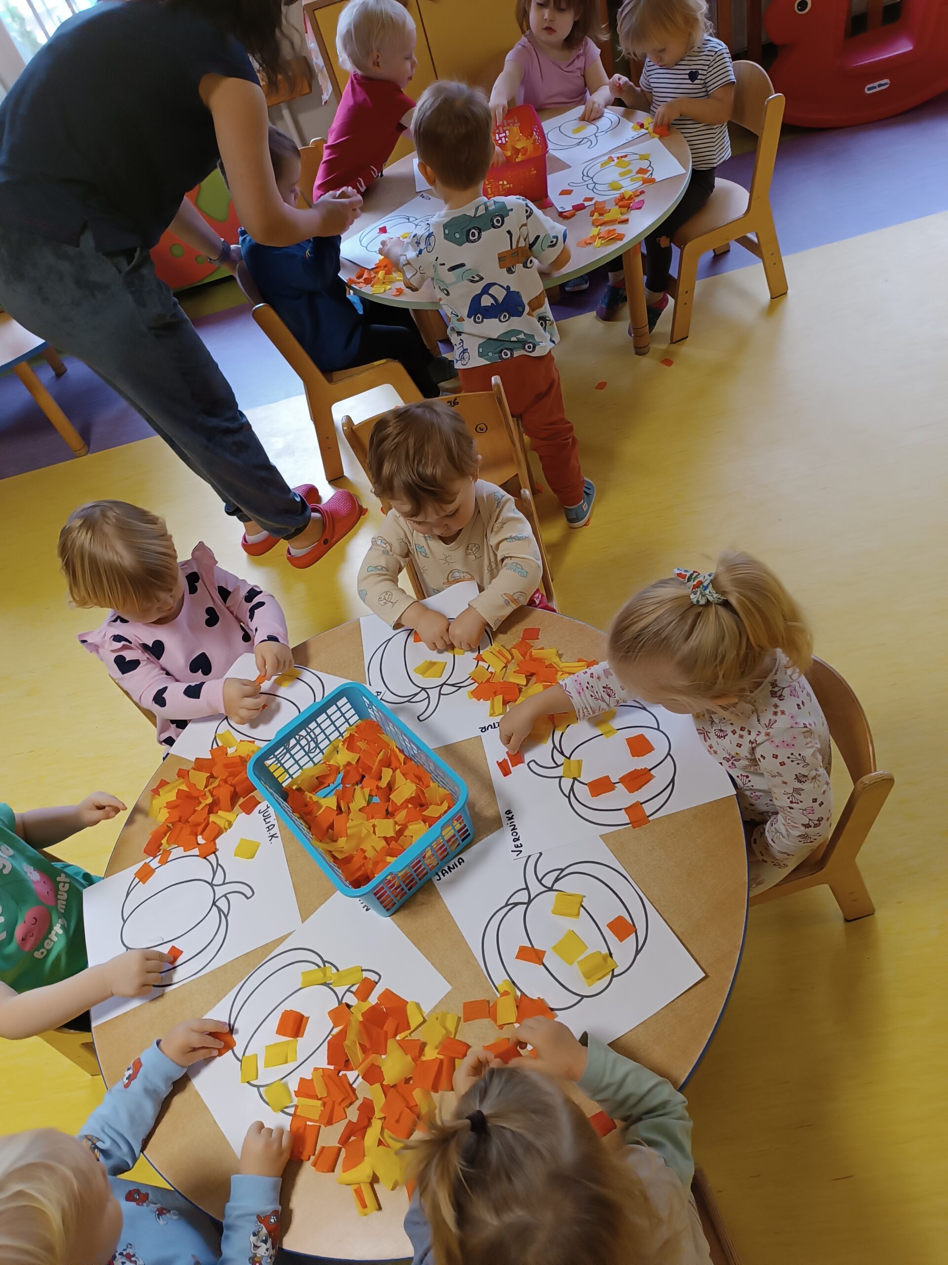 W październiku dzieci z zainteresowaniem obserwowały zmieniającą się pogodę. Podczas zabaw na świeżym powietrzu zbieraliśmy kolorowe liście, które potem zostały wykorzystane do zajęć plastycznych. Podczas zajęć plastycznych i sensorycznych dzieci odciskały swoje rączki, wyklejały wiewiórki, dynie, parasole, robiły kolorowe stempelki z warzyw. Maluchy ćwiczyły sprawność rączek, poznawały nowe faktury i rozwijały wyobraźnię.
