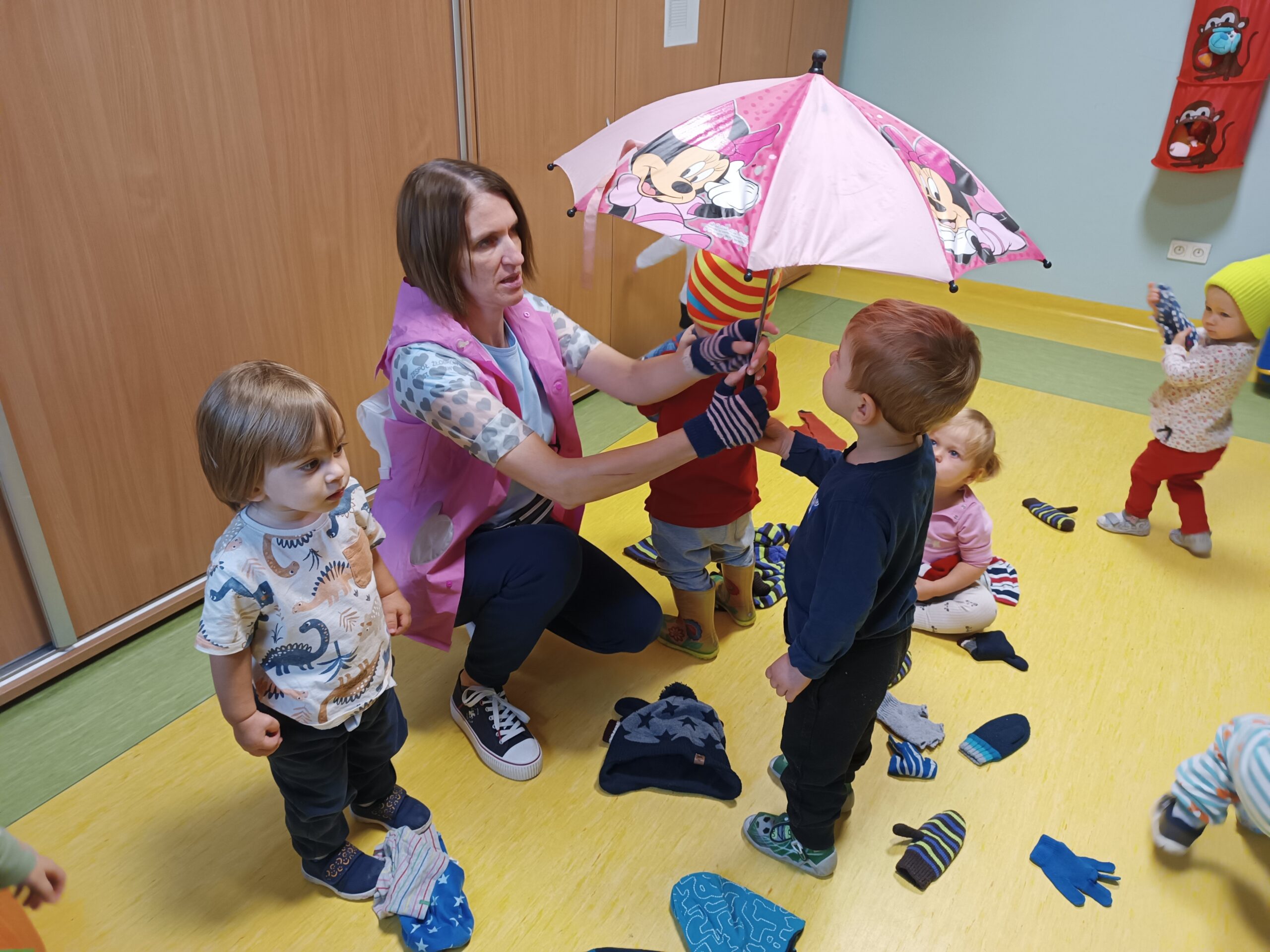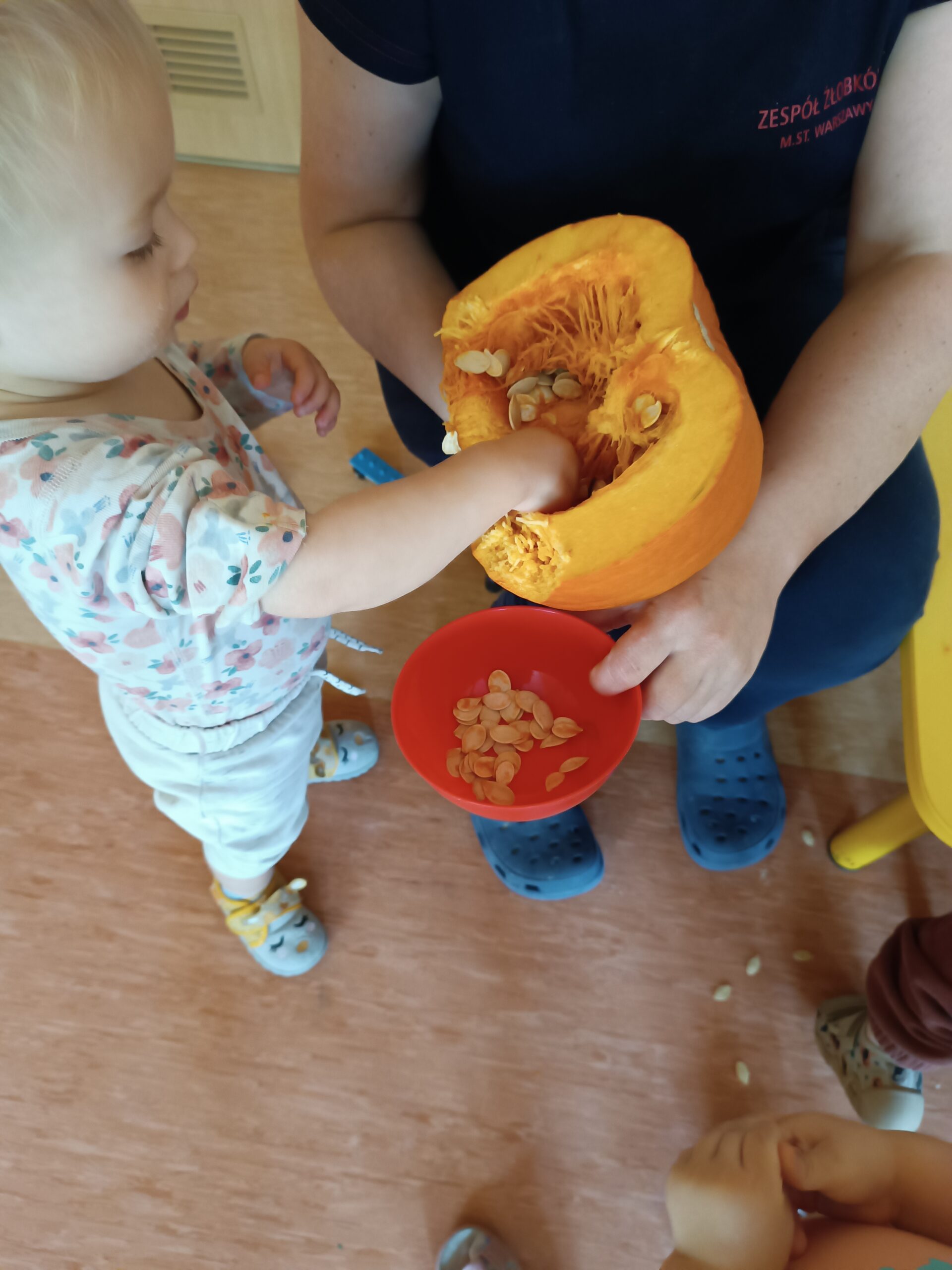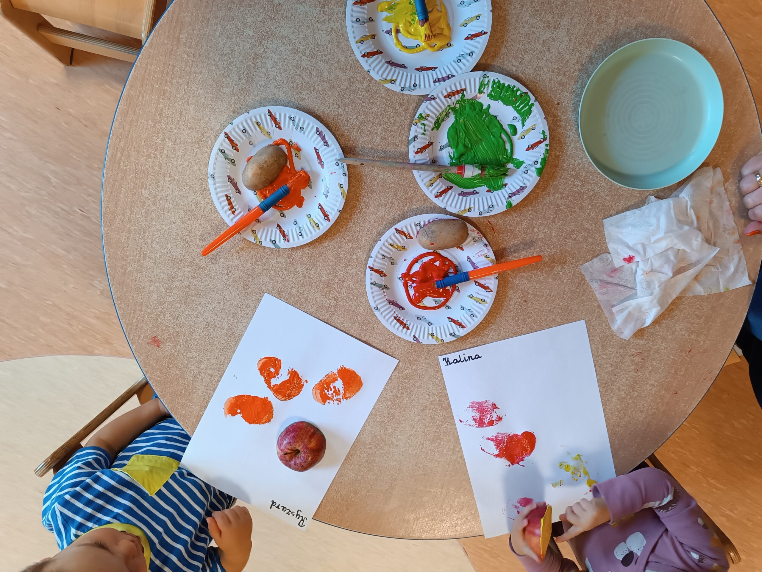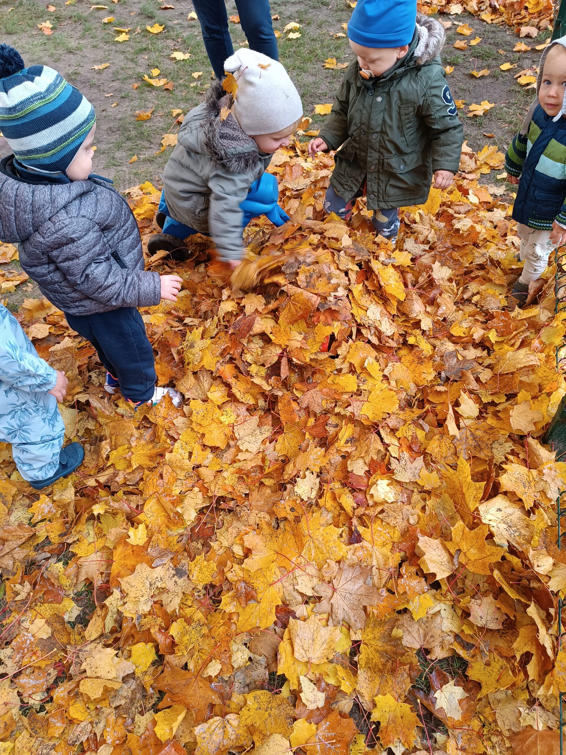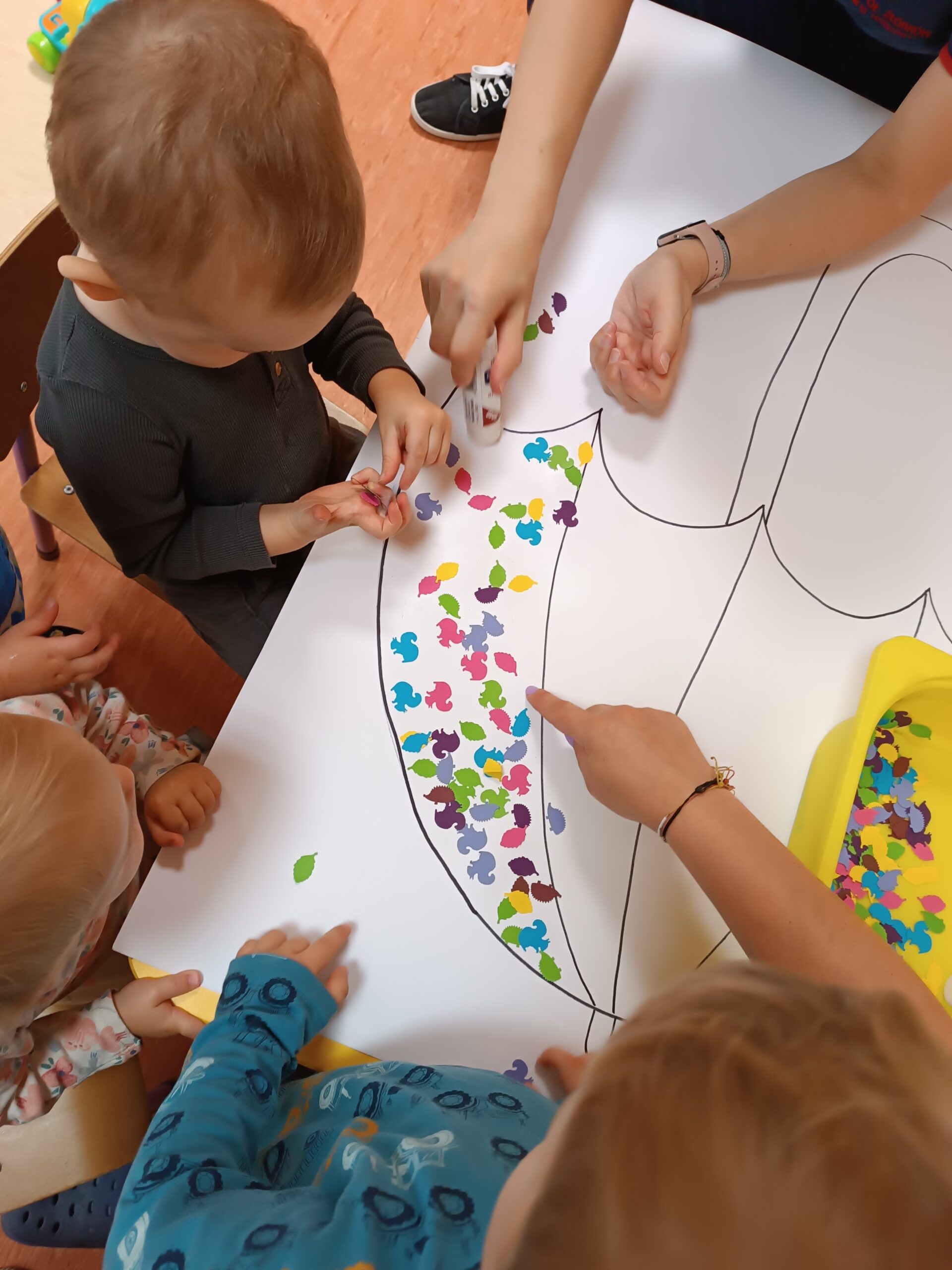 W październiku dzieci z zainteresowaniem obserwowały zmieniającą się pogodę. Podczas zabaw na świeżym powietrzu zbieraliśmy kolorowe liście, które potem zostały wykorzystane do zajęć plastycznych. Podczas zajęć plastycznych i sensorycznych dzieci odciskały swoje rączki, wyklejały wiewiórki, dynie, parasole, robiły kolorowe stempelki z warzyw. Maluchy ćwiczyły sprawność rączek, poznawały nowe faktury i rozwijały wyobraźnię.