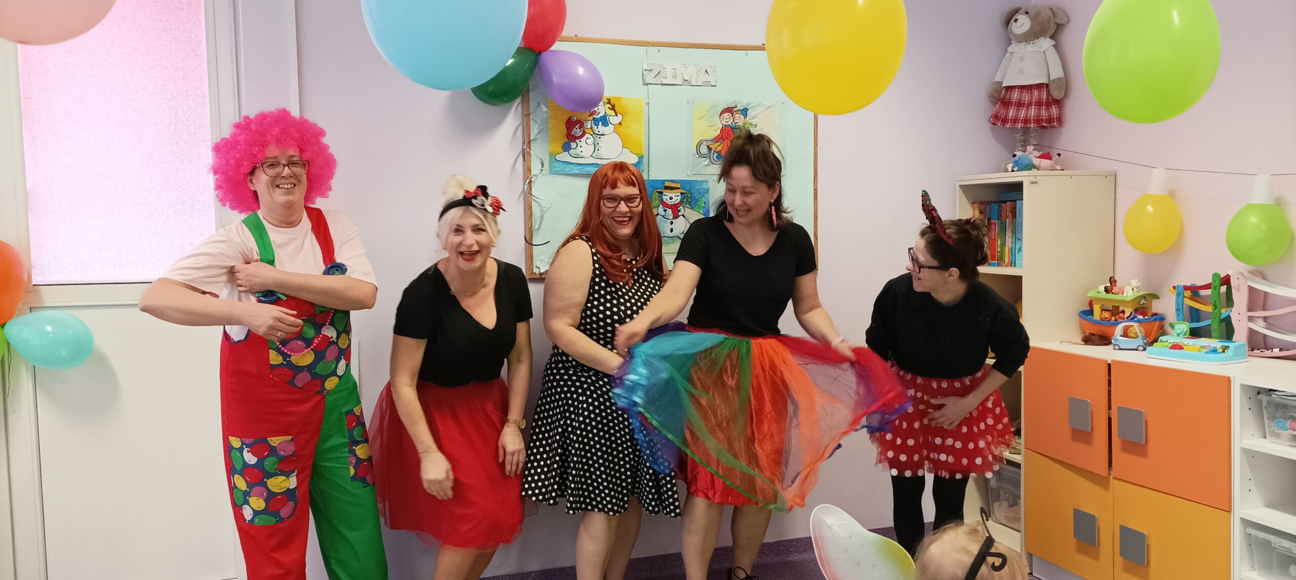 A co w żłobku? Ciepło, wesoło, kolorowo. Obchodzimy Dzień Kota, Dzień Pizzy, Dzień Dinozaura, Walentynki i bawimy się na balach karnawałowych. Najfajniejsze są stroje na przebranie a także wspólna zabawa z Rodzicami.