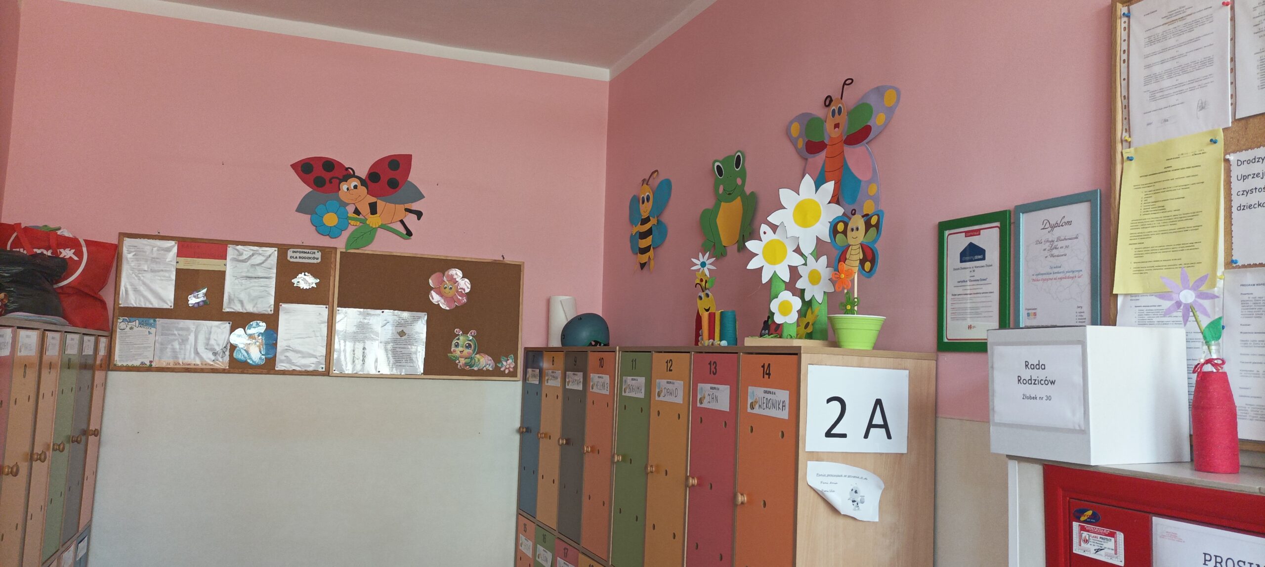 By uczcić np. Dzień Pandy za pomocą farby, gąbeczek i wacików malujemy misia pandę, uczymy się czym ją karmić, już wiemy co to bambus. Robimy pranie! Ubranka lalek trzeba odświeżyć i wywiesić na lince do wyschnięcia. Przy tej okazji poznajemy fakturę materiałów a Panie opowiadają nam jak ważna jest woda dla życia. Szukamy wiosny, znajdujemy ją w pączkach drzew, kwitnących krokusach, wychodzących z ziemi listkach tulipanów i hiacyntów a także we fruwających owadach i śpiewie ptaków. Muzyka Vivaldiego, którą słuchamy relaksując się na matach, śpiewanie piosenek o boćku także opisują nam wiosnę.