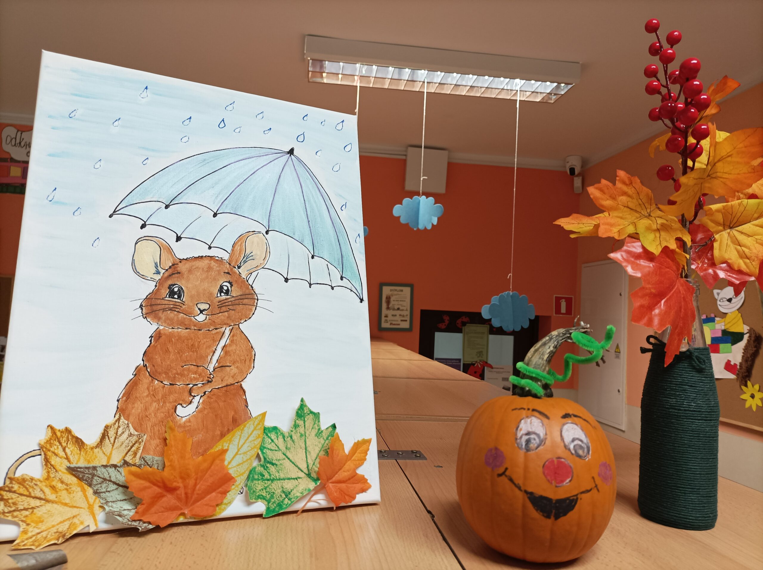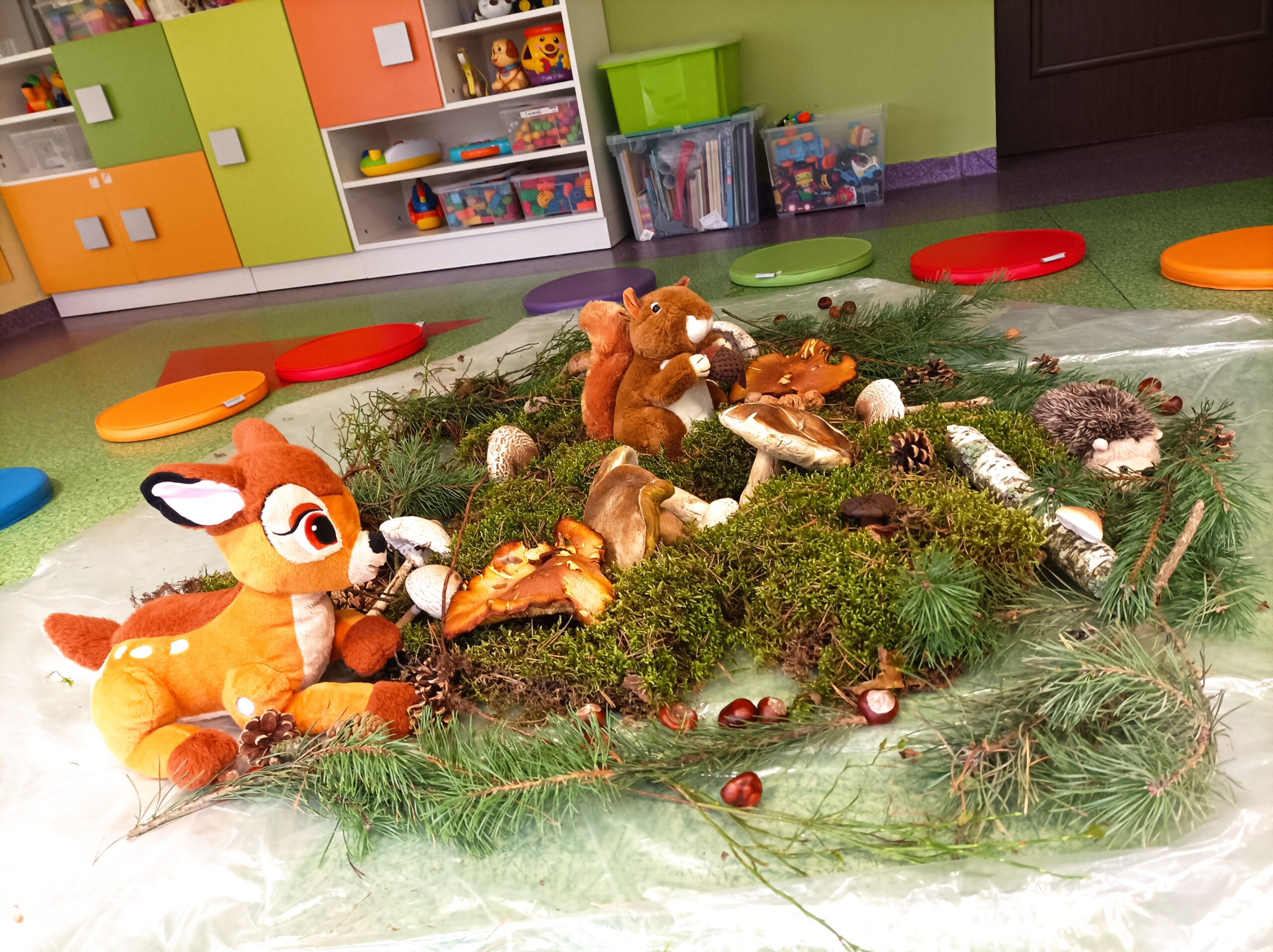Co wydarzy się w październiku? Zaczęła się jesień. To czas poznawania jej uroków, zbierania jej darów. W naszym przyżłobkowym ogrodzie nie brakuje błyszczących brązowych kasztanów, żołędzi z figlarnymi czapeczkami, pięknych kolorowych liści klonu, wierzby, dębu, buku. Panie opiekunki aby pokazać dzieciom świat jesieni charakterystyczny dla lasów, przynoszą do żłobka leśne grzyby, mech, owoce rosnące w leśnym gąszczu. Opowiadają o zwierzętach, które żywią się smakołykami jesieni.