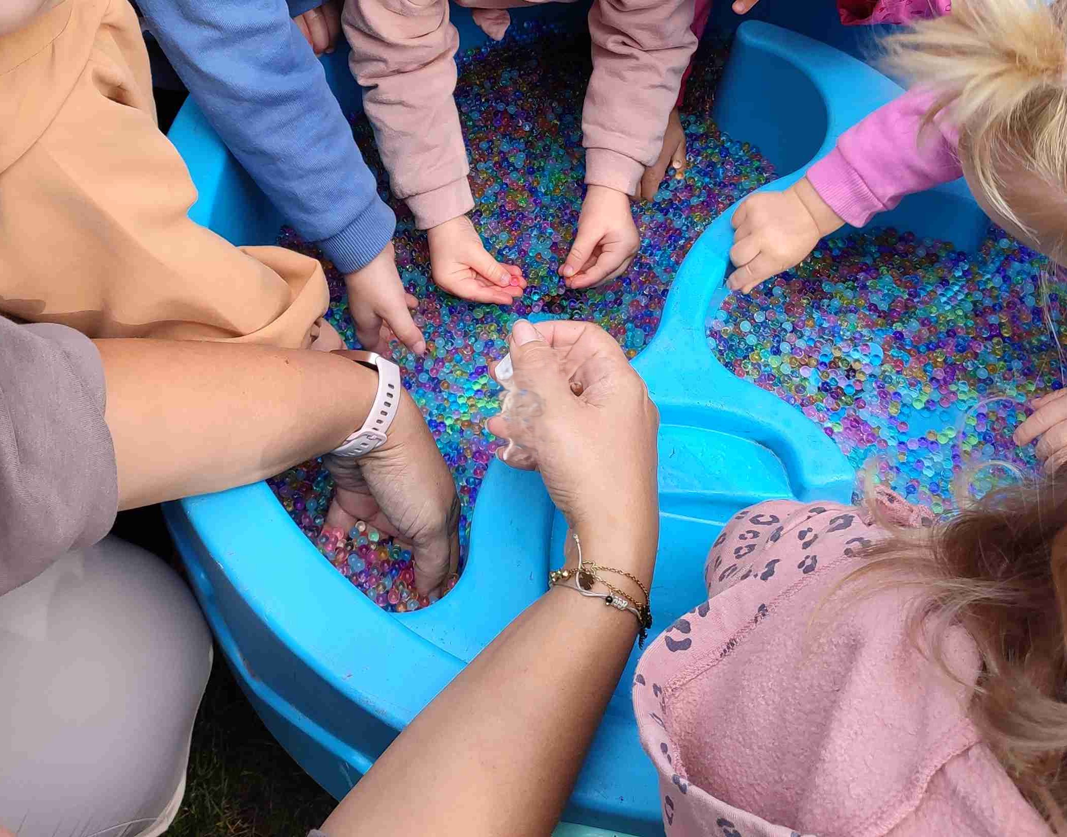 We wrześniu dzieci rozpoczęły kolejny rok żłobkowej przygody. Tegoroczna adaptacja w małych grupkach przebiegła szybko i prawie bezstresowo. Dzieci spędzały dni na różnorodnych zabawach zarówno w sali jak i na ogrodzie. Poznawały jesienne warzywa i owoce, segregowały szyszki, poszukiwały zakopanych w piasku skarbów. Wiele radości sprawił nowy nabytek żłobka – Magiczny dywan.